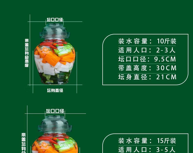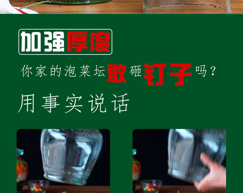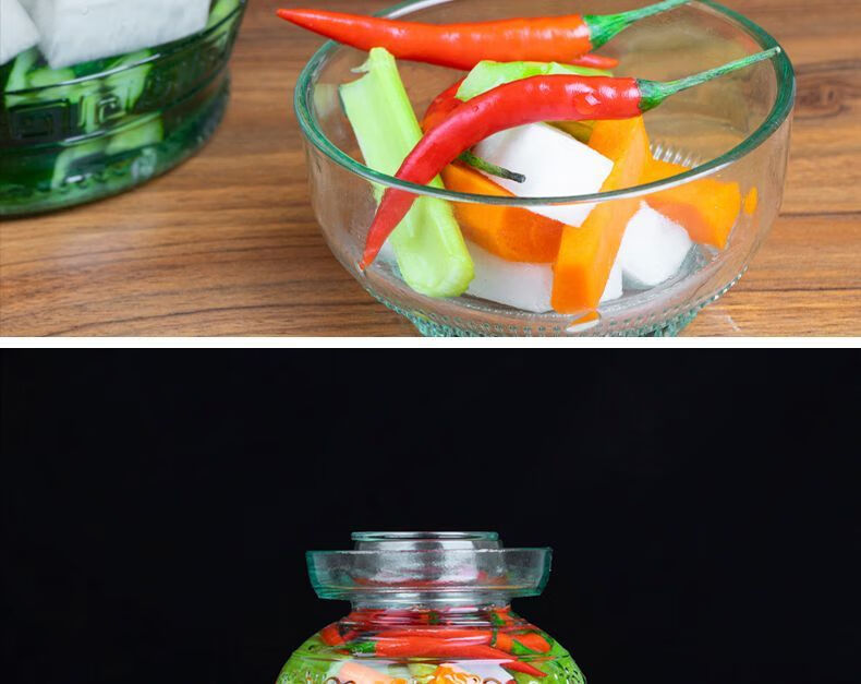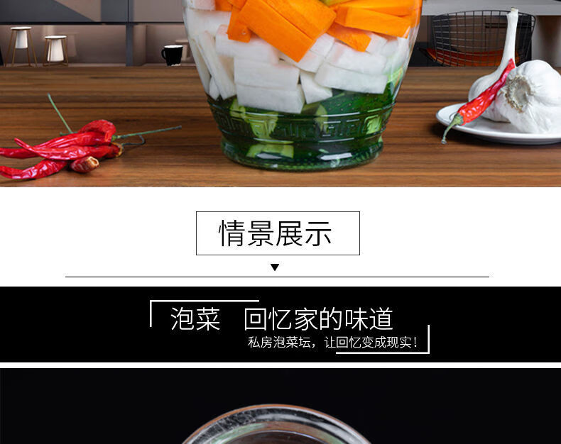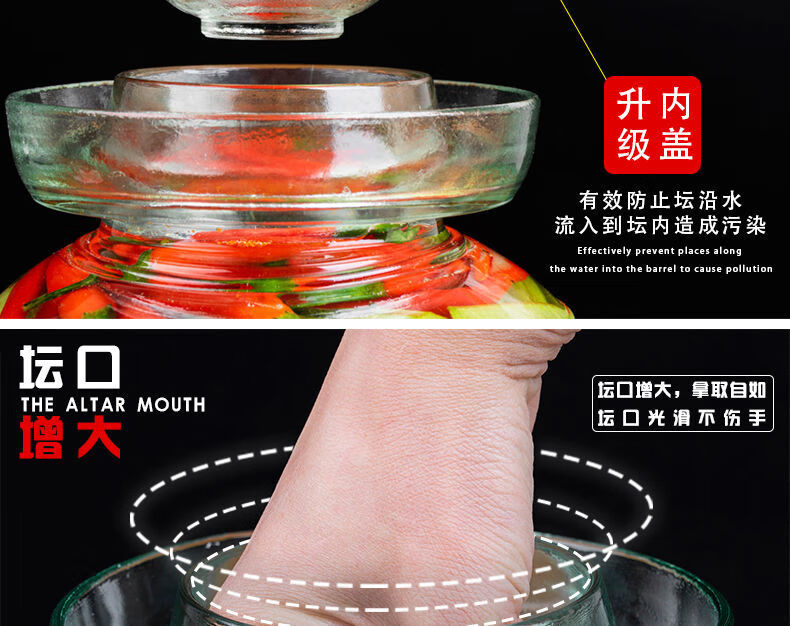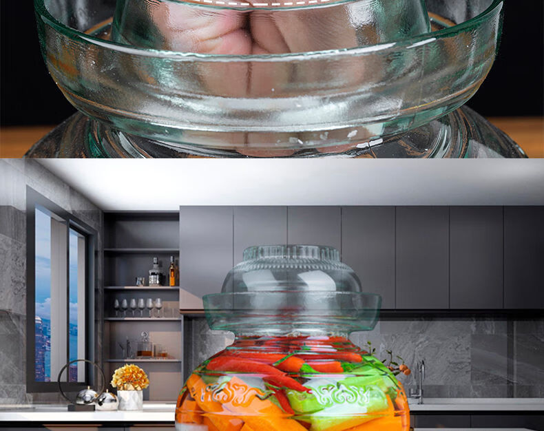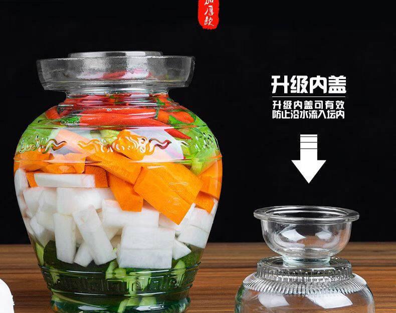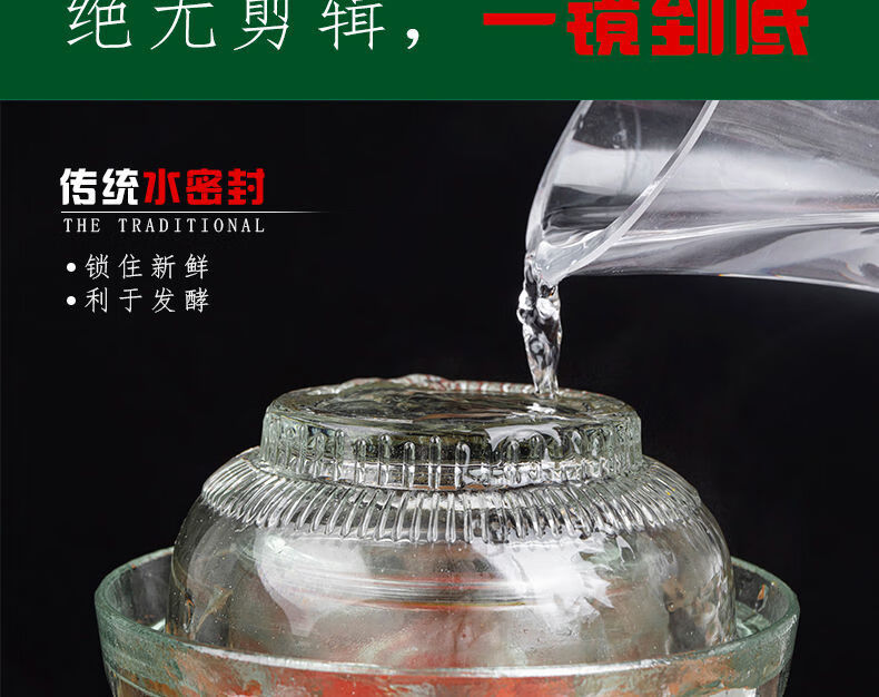 Meikejie Sichuan glass pickle jar thickened with inner lid pickle sealed jar household pickle jar with lid pickle jar water capacity 10 catties extra thick + waterproof inner lid lead-free extra thick high white material glass pickle jar