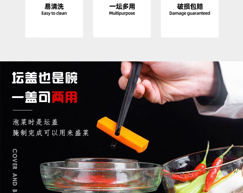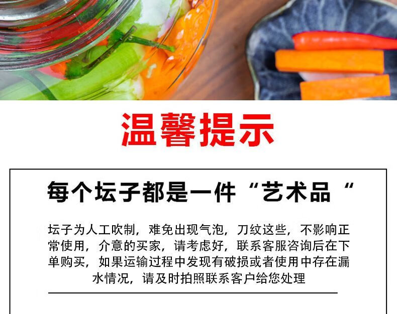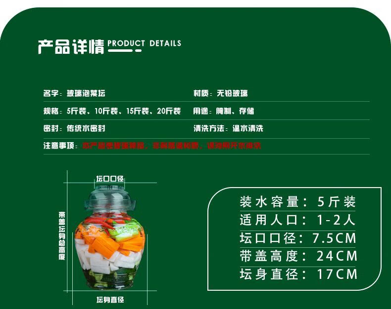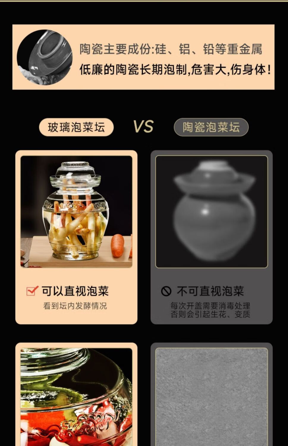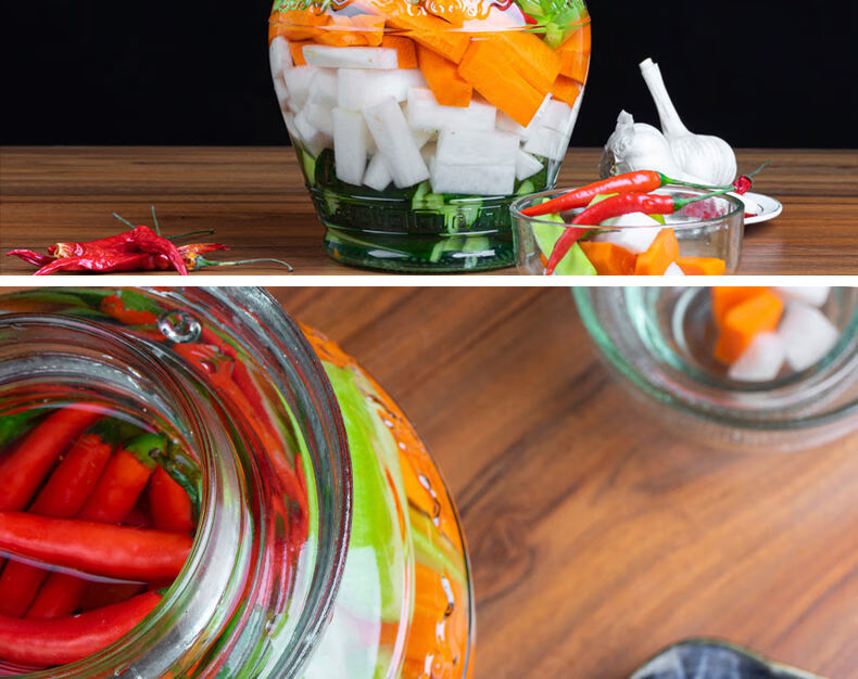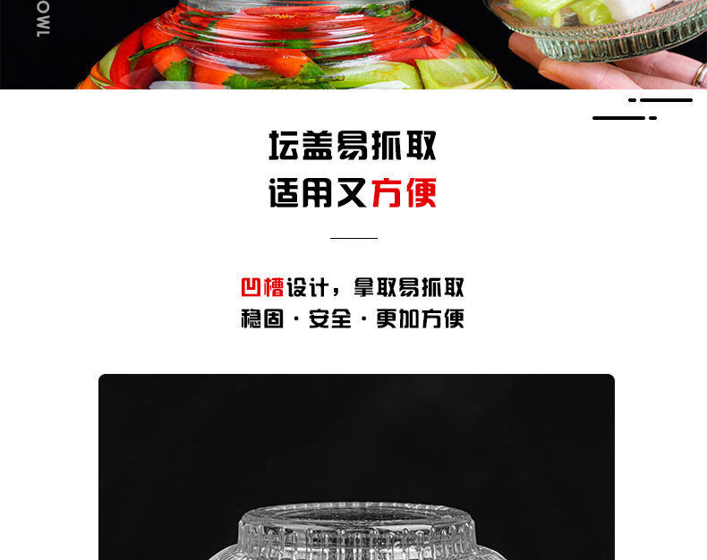 Meikejie Sichuan glass pickle jar thickened with inner lid pickle sealed jar household pickle jar with lid pickle jar water capacity 10 catties extra thick + waterproof inner lid lead-free extra thick high white material glass pickle jar