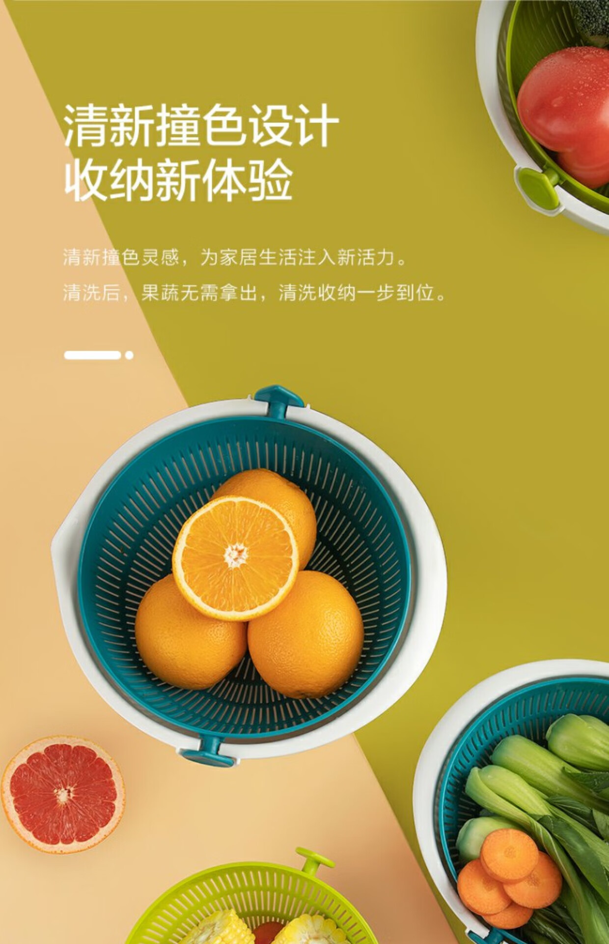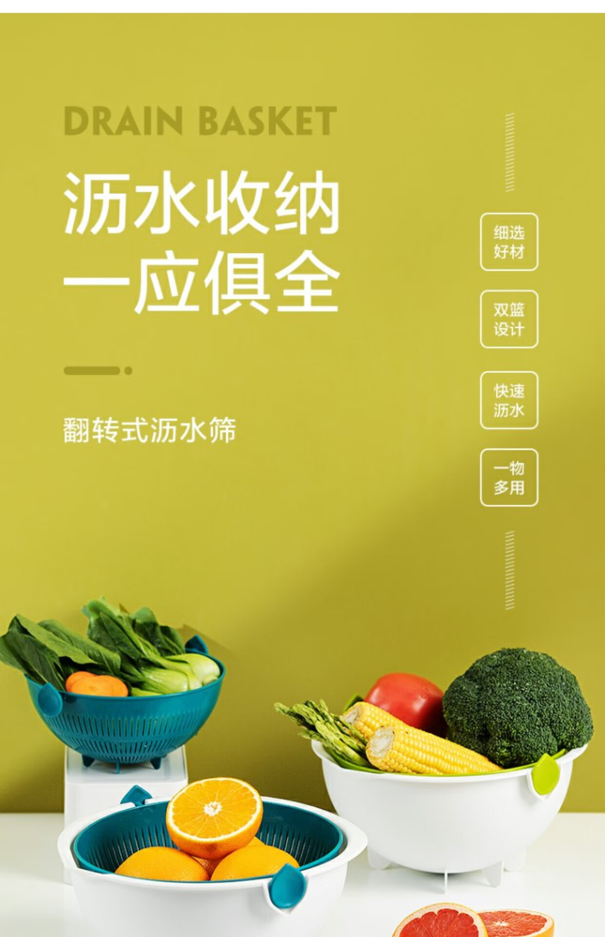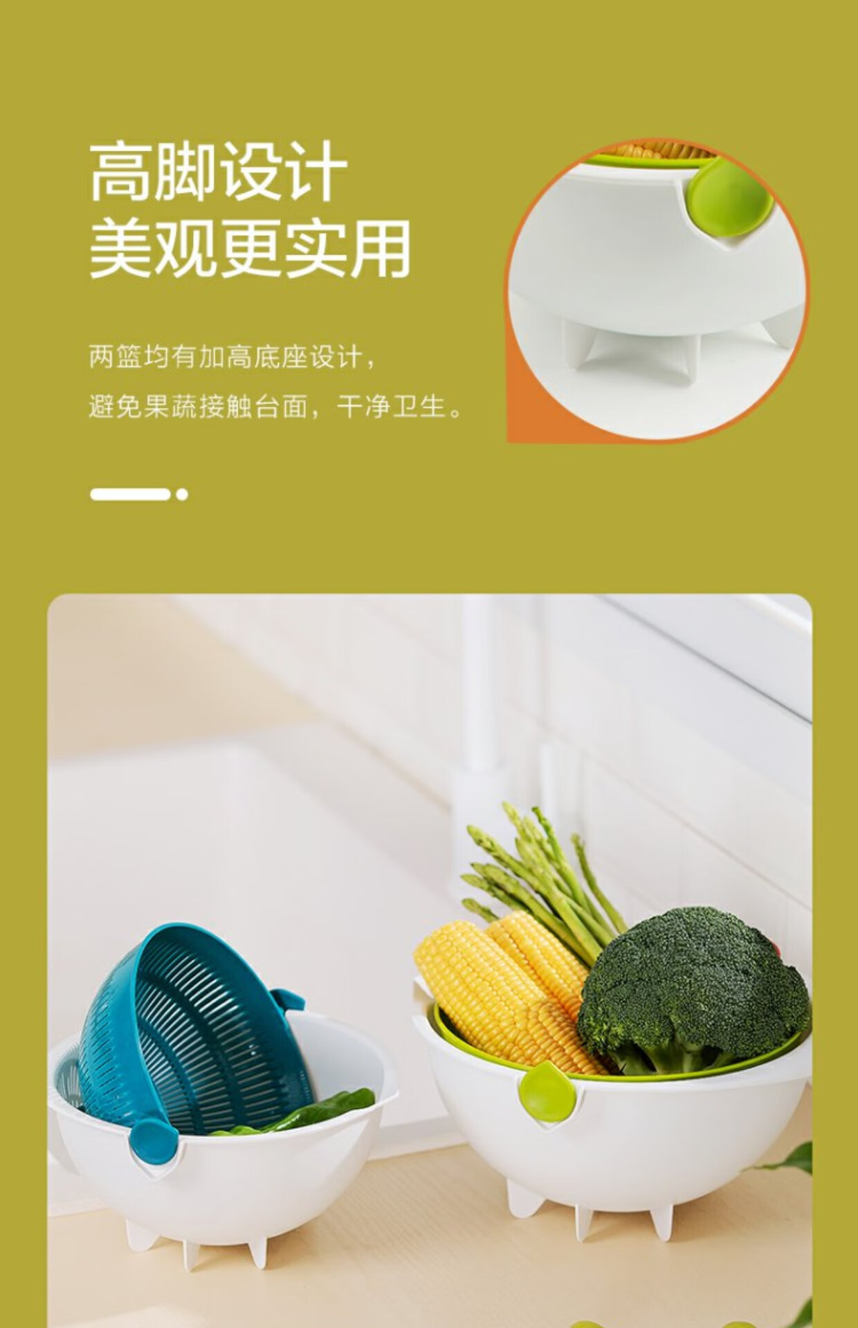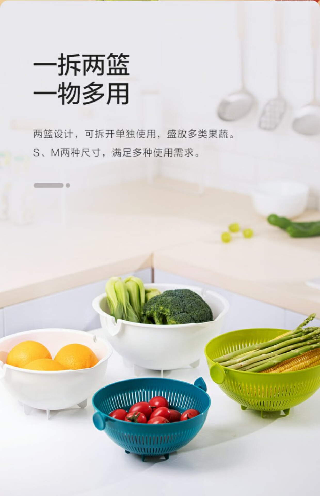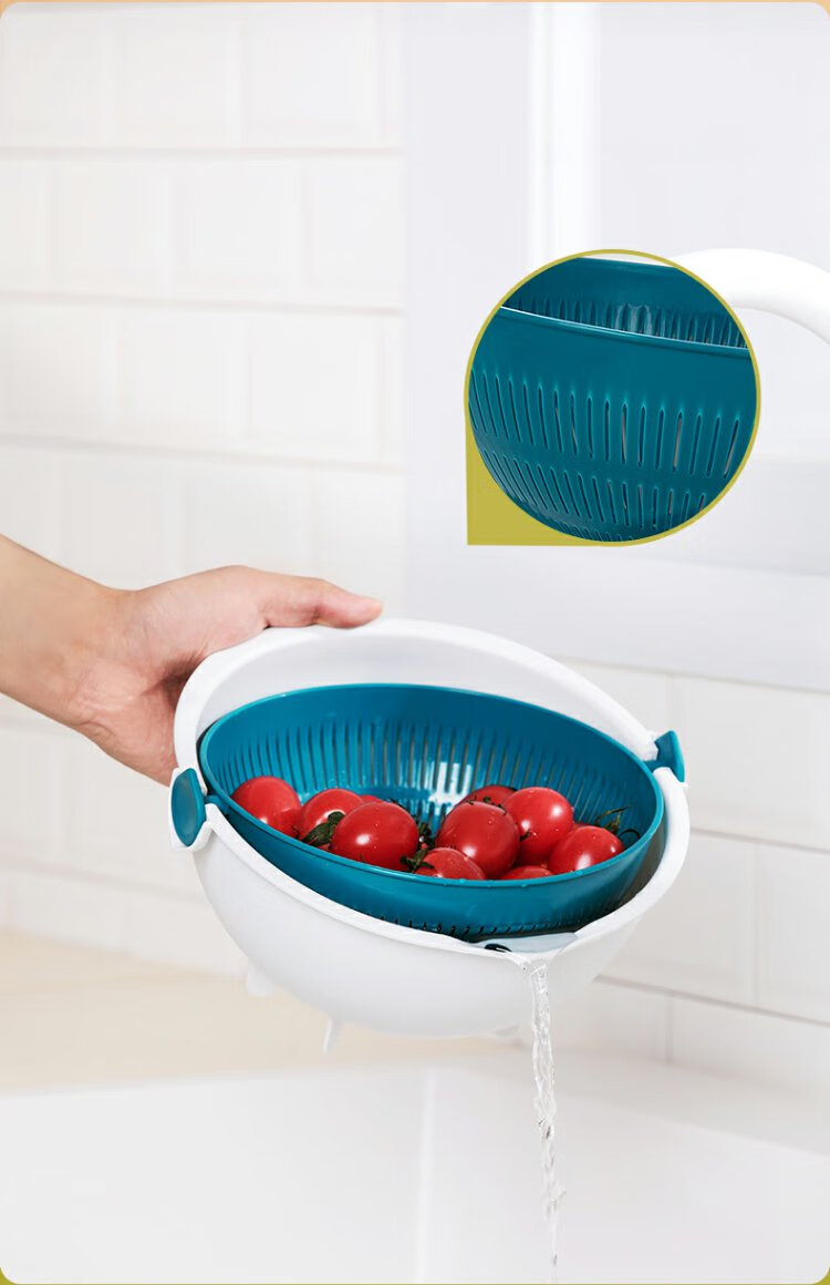 Camellia double layer sink drain basket kitchen household plastic fruit washing living room water filter sieve rice washing vegetable basket small size 2 pack blue + green