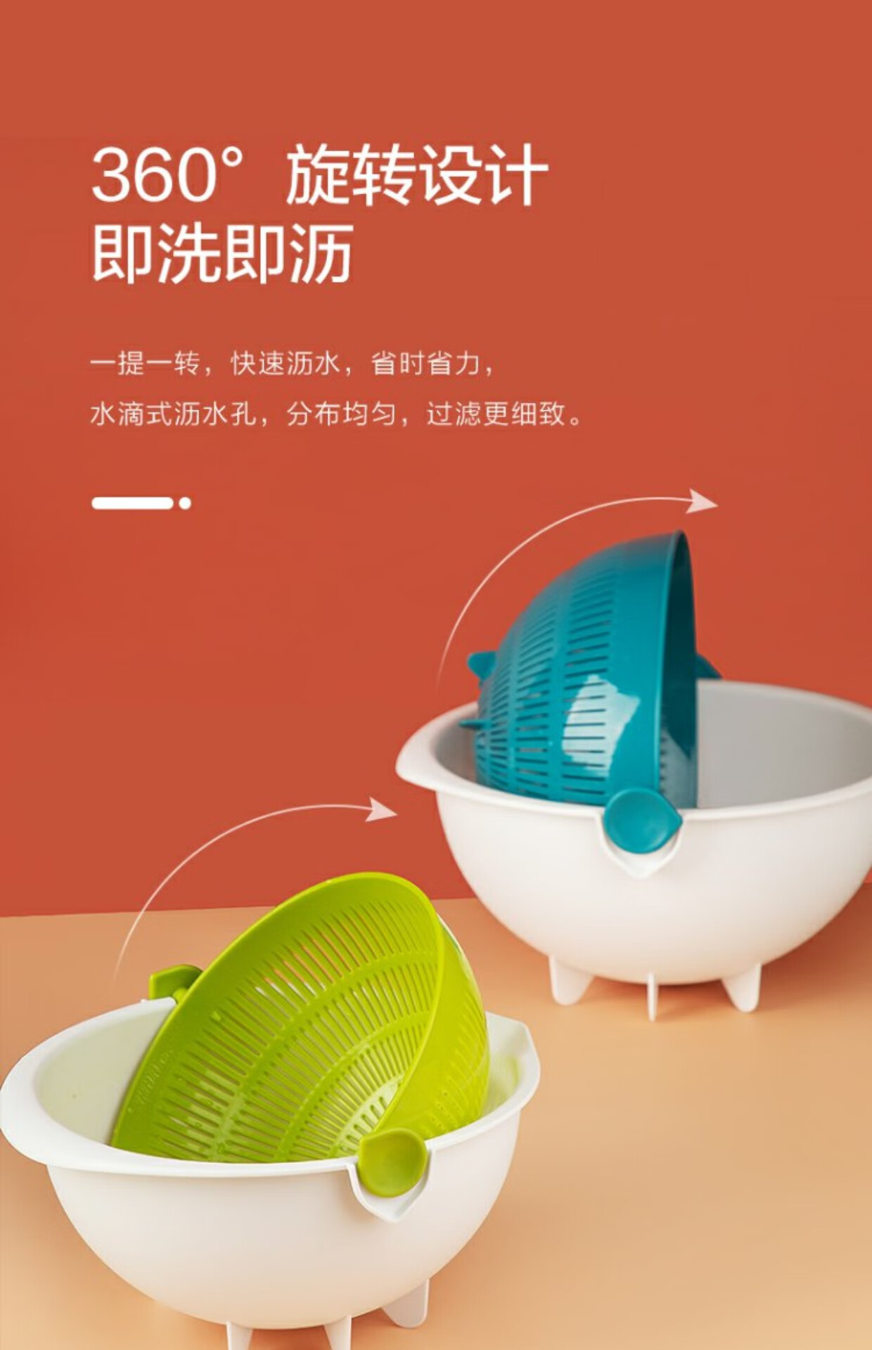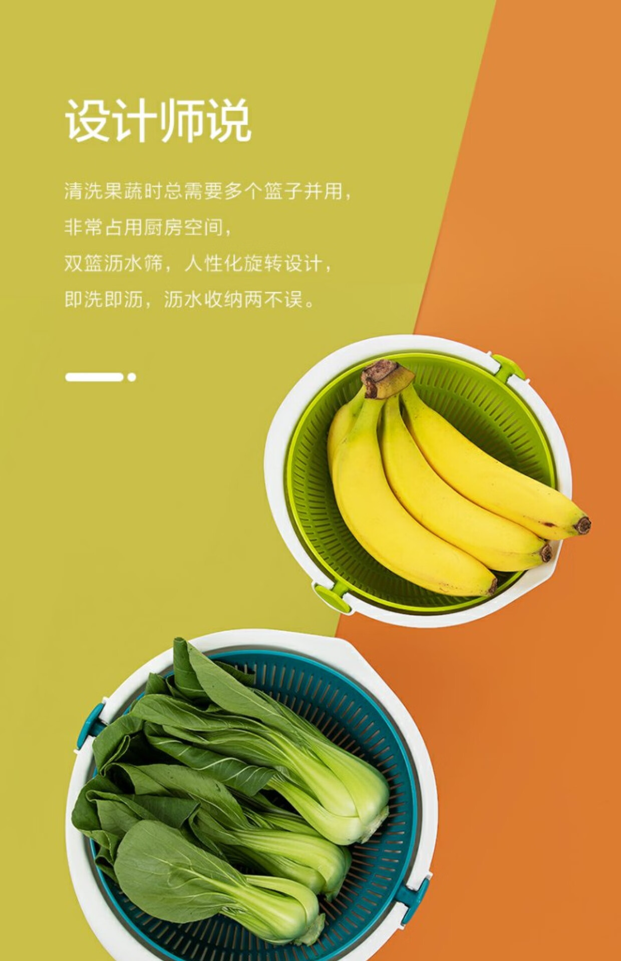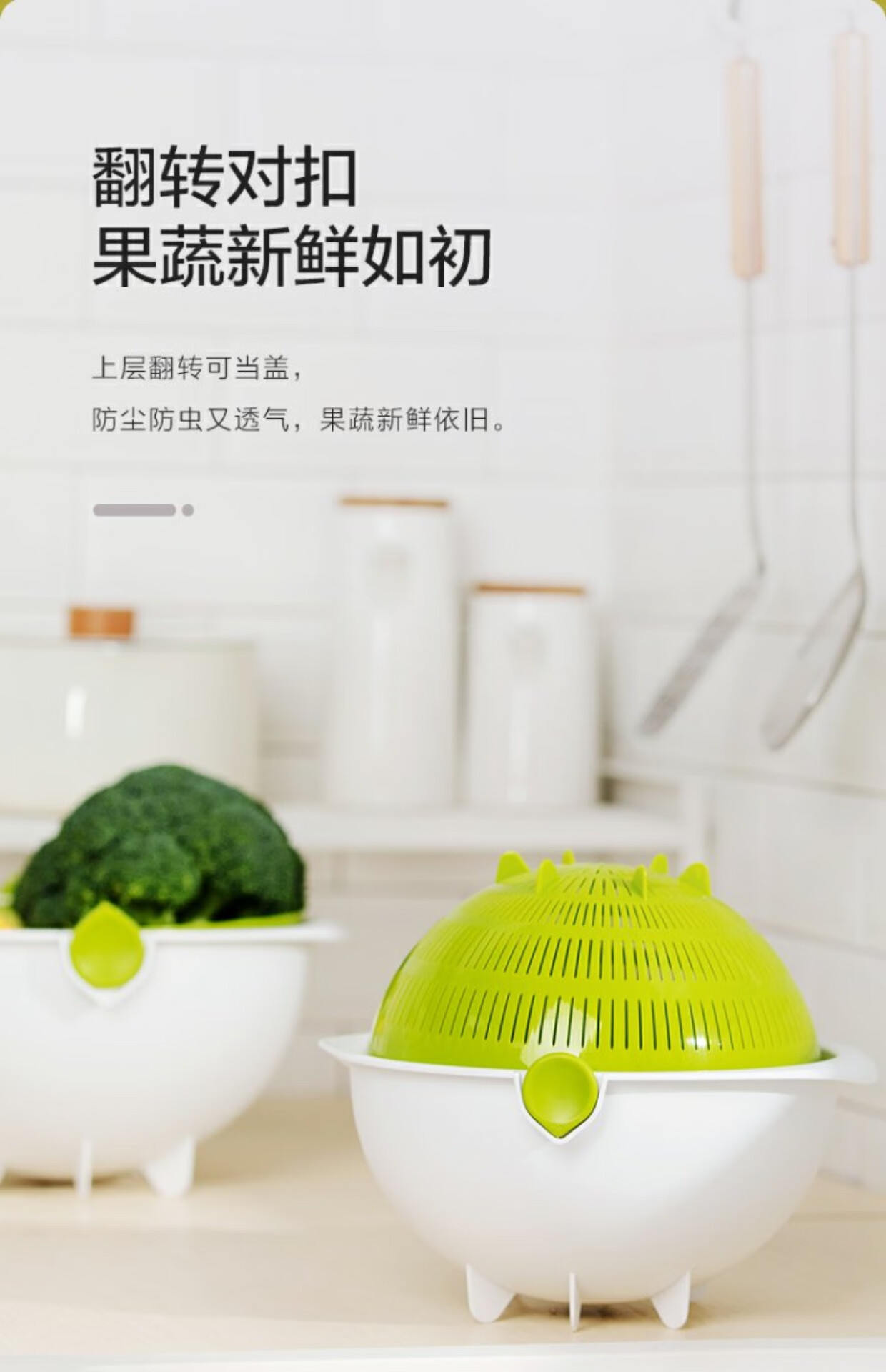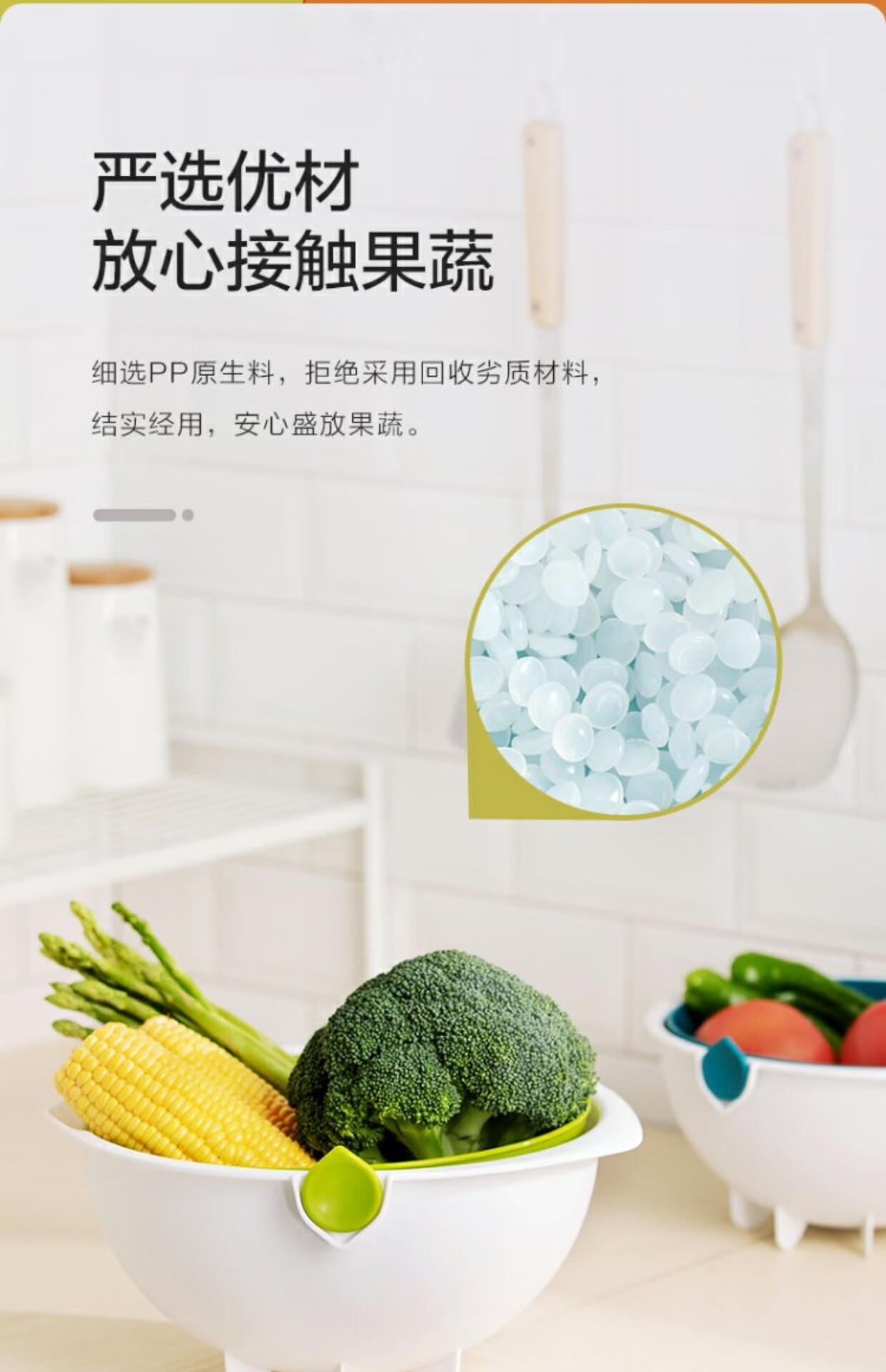 Camellia double layer sink drain basket kitchen household plastic fruit washing living room water filter sieve rice washing vegetable basket small size 2 pack blue + green
