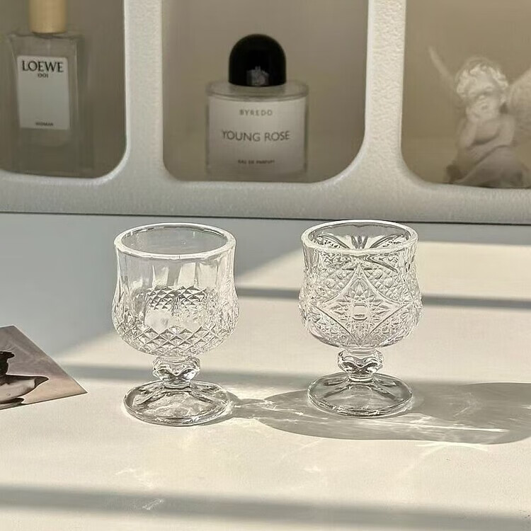 Reputation 6-pack engraved glass mini fruit wine cup exquisite high-foot wine glass high-value small wine glass one-cup engraved small wine glass 50ml 6-pack