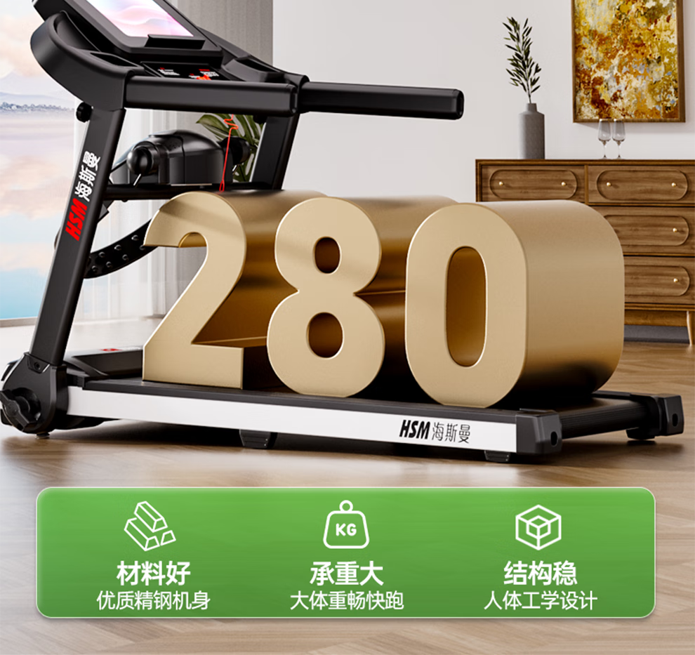 Heisman treadmill, small all-in-one foldable walking machine for home use, special fitness equipment for weight loss, intelligent noise reduction and mute, 10-inch color screen - single function/high peak horsepower motor