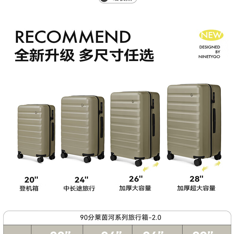 90 points suitcase Rhine PRO upgraded large capacity suitcase 2025 new PC trolley case titanium gray 28 inches