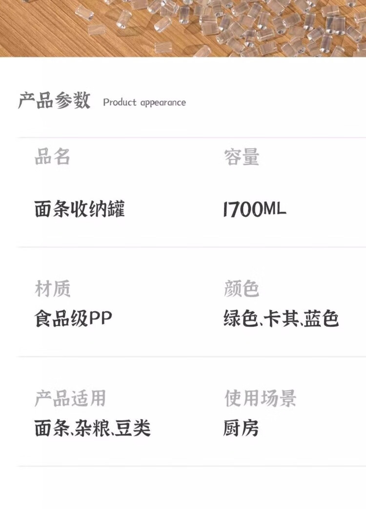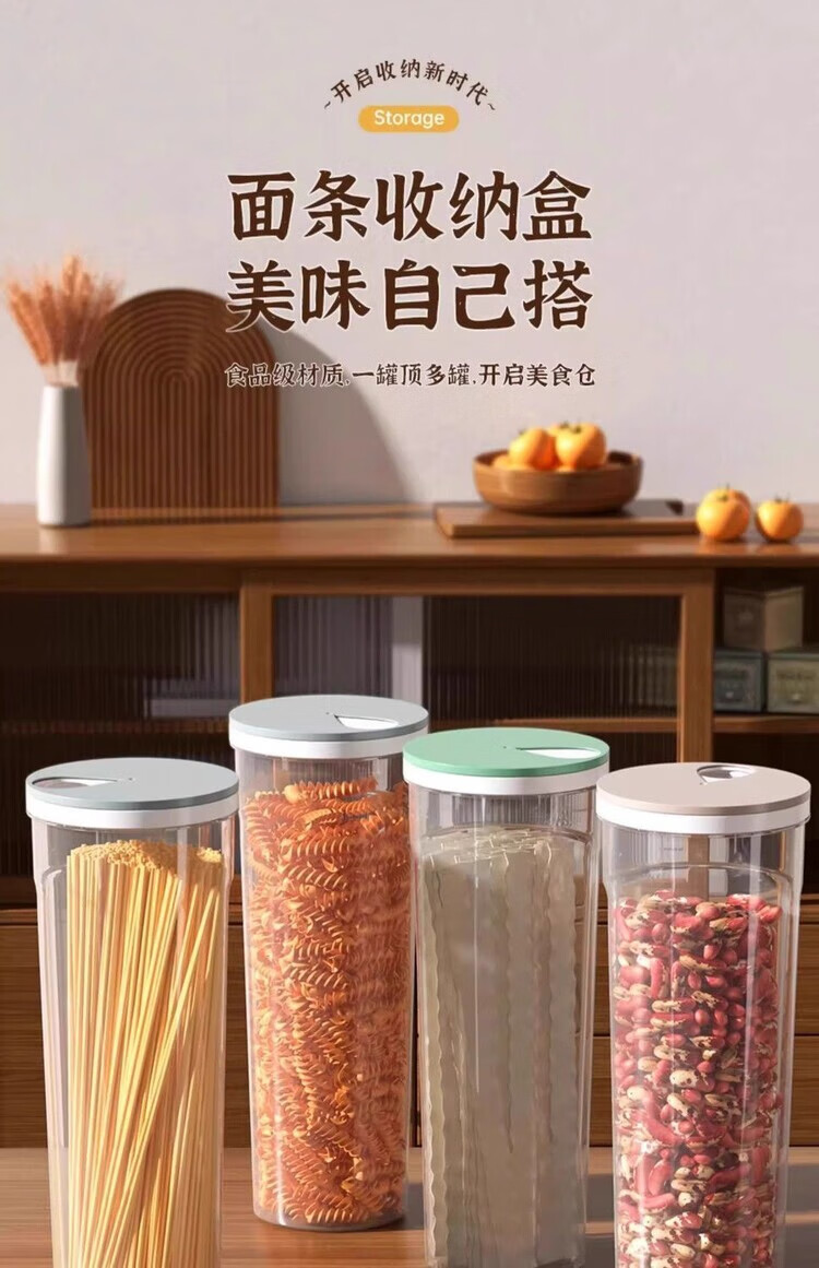 Renowned super easy-to-use material, round grain sealed storage tank, large capacity noodle box, food grade sealing solution, food contact grade PP material, selected quality, one tank + one lid, two-piece set