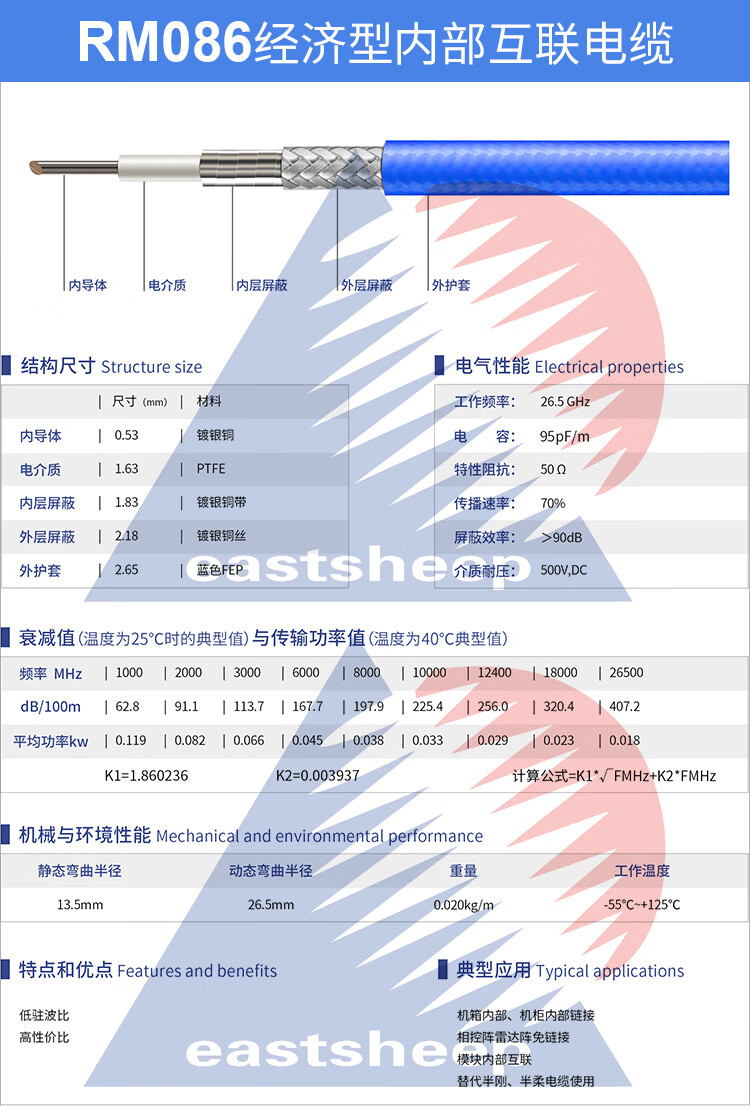 Oriental Xupu RM086 high frequency connecting cable SMP-K/SMA-KY/KF SMP female to SMA female DC-18G RM086-SMP-K/SMA-KY (waterproof ring) 1m
