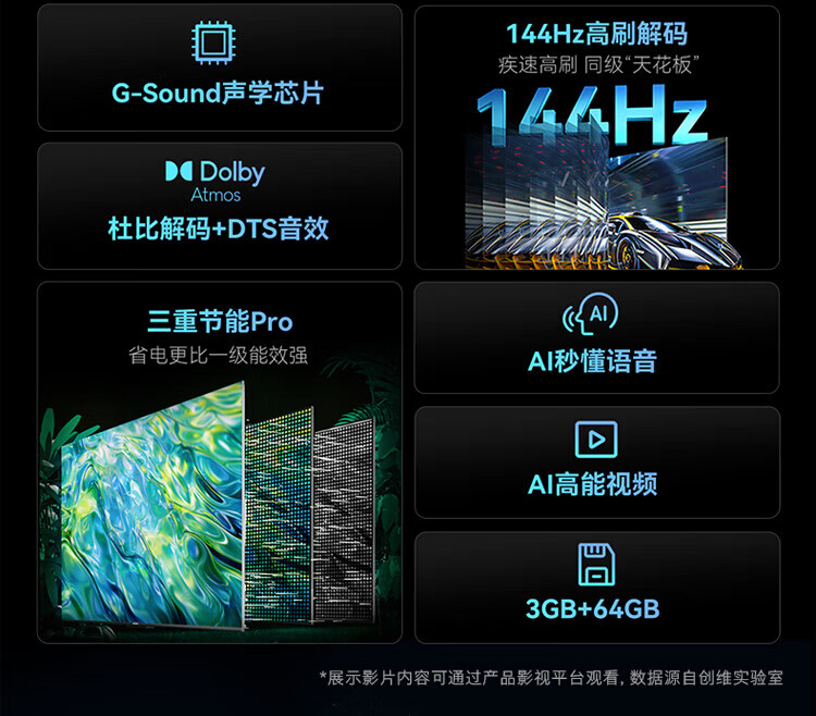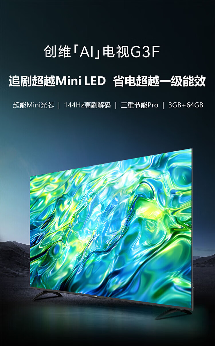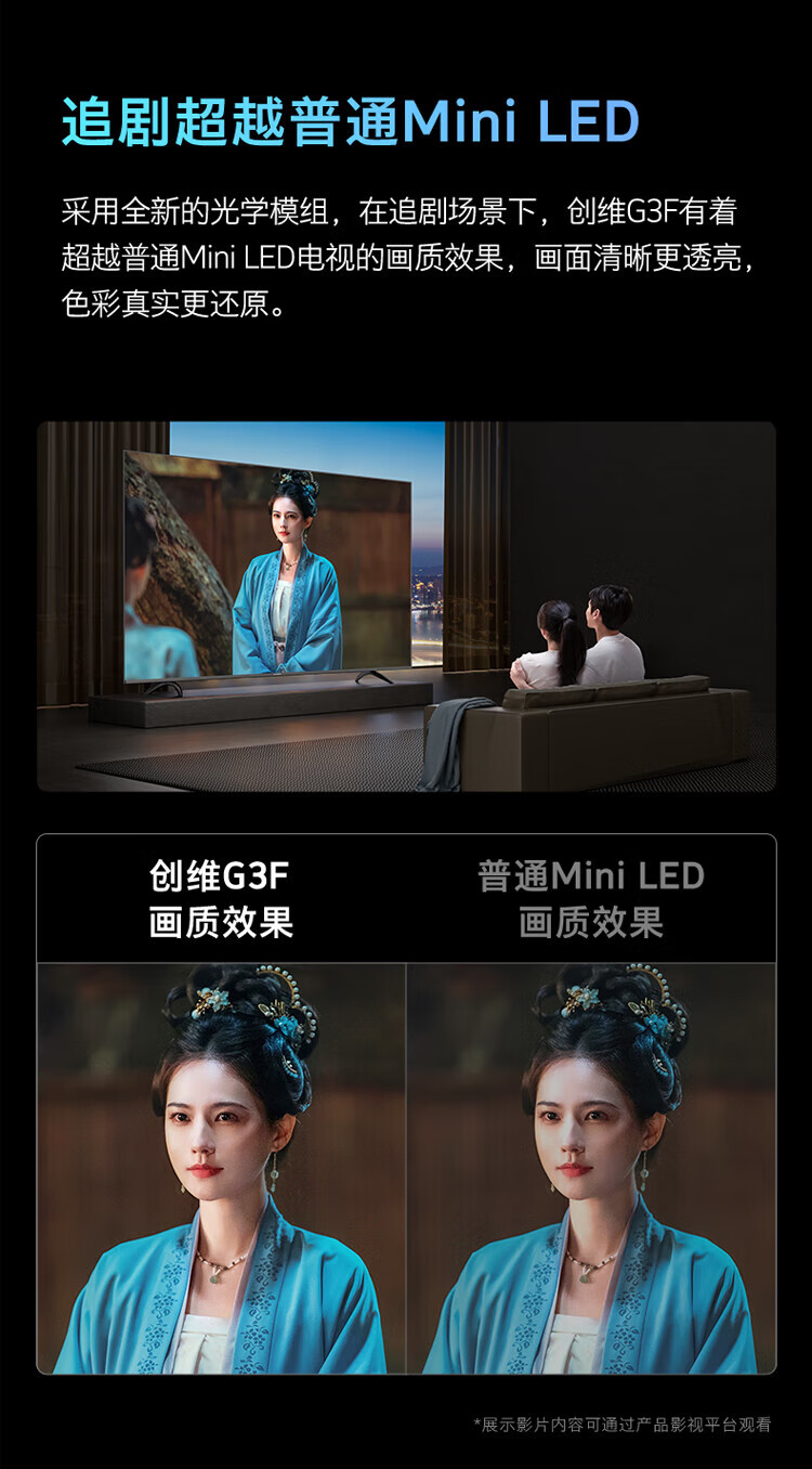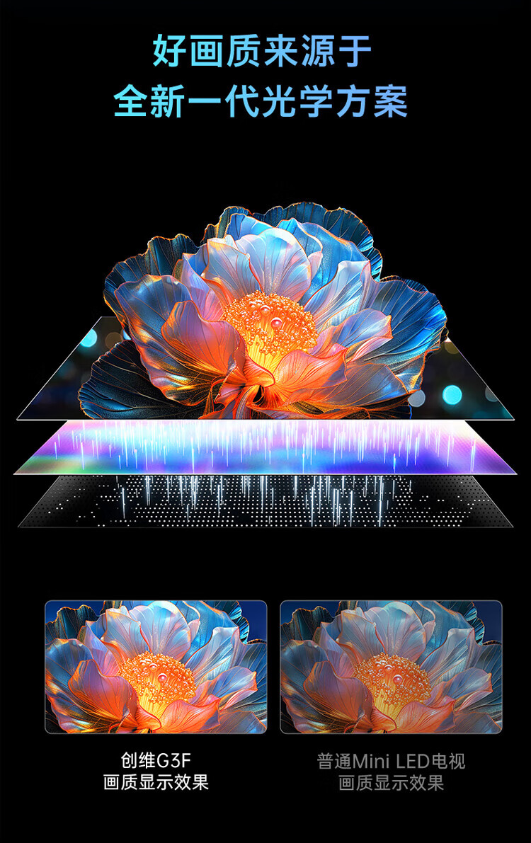 Skyworth TV 65G3F 65-inch drama-watching surpasses Mini LED super-powerful Mini optical core first-class energy efficiency 3+64G smart projection screen G quality engine 144Hz high brush eye protection 65-inch door-to-door installation 65G3F