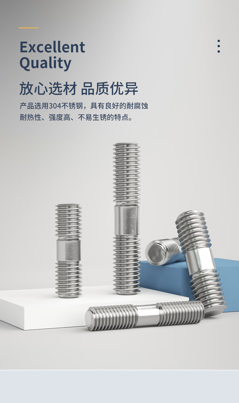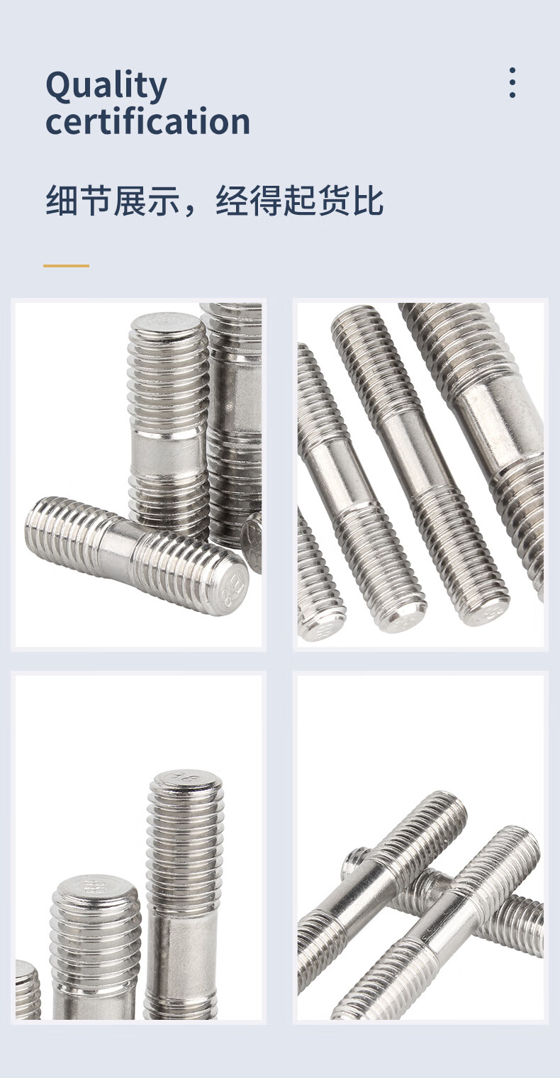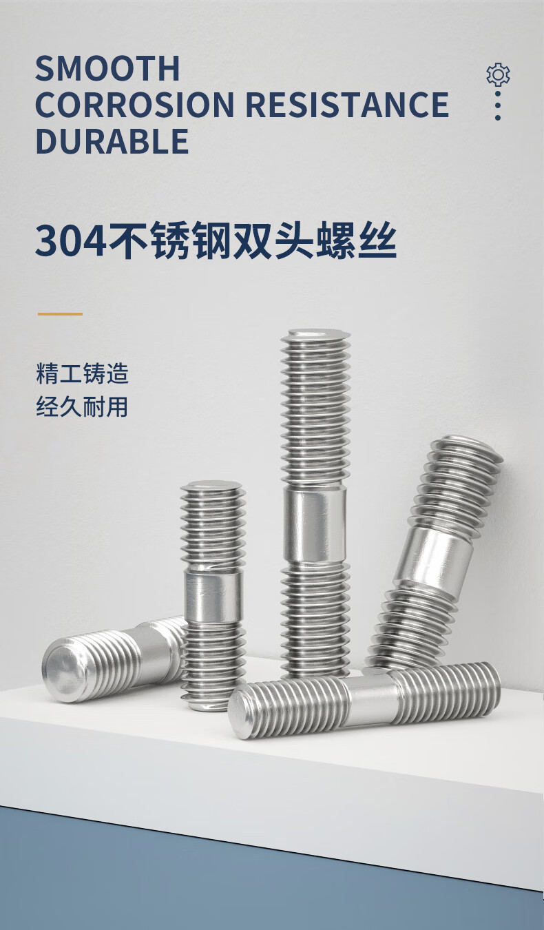 Guwanji 304 stainless steel double-head screw rod two-head tooth bolt with wire connection stud rod M3M4M5-M24 M10*300 2 pcs