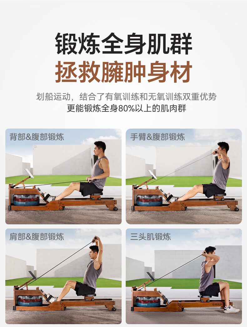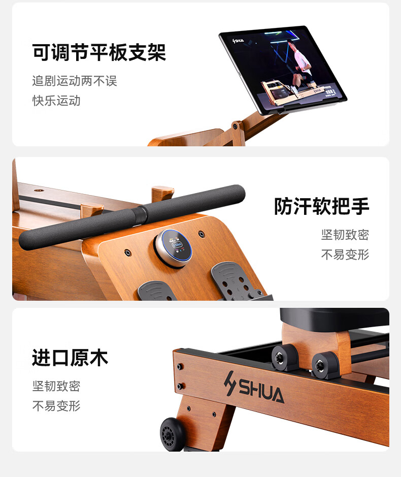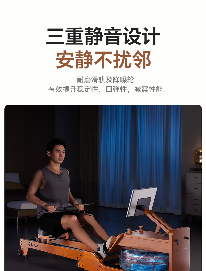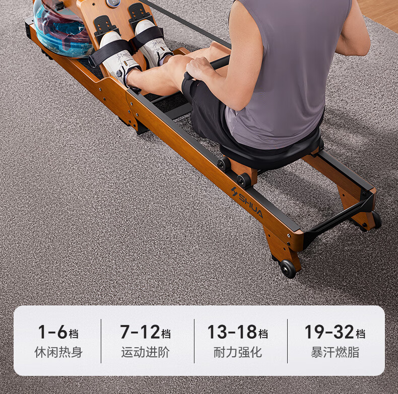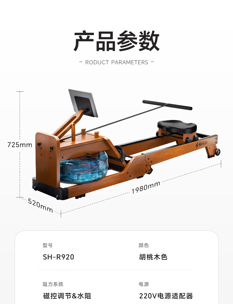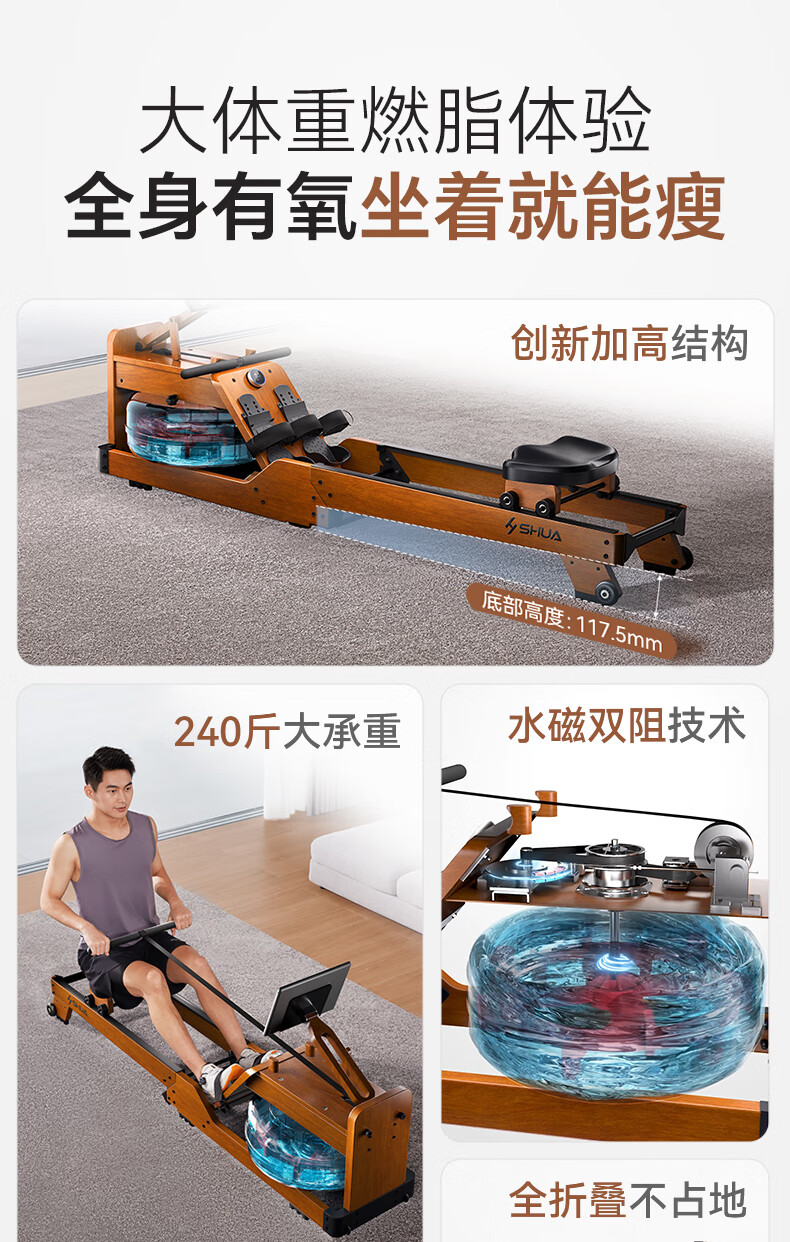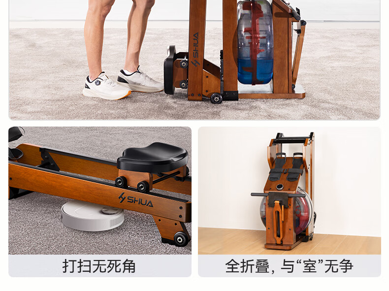 Shuhua (SHUA) rowing machine household water resistance magnetic control indoor sports fitness equipment water magnetic dual resistance adjustment foldable SH-R920 SH-R920 high-end wooden water resistance rowing machine
