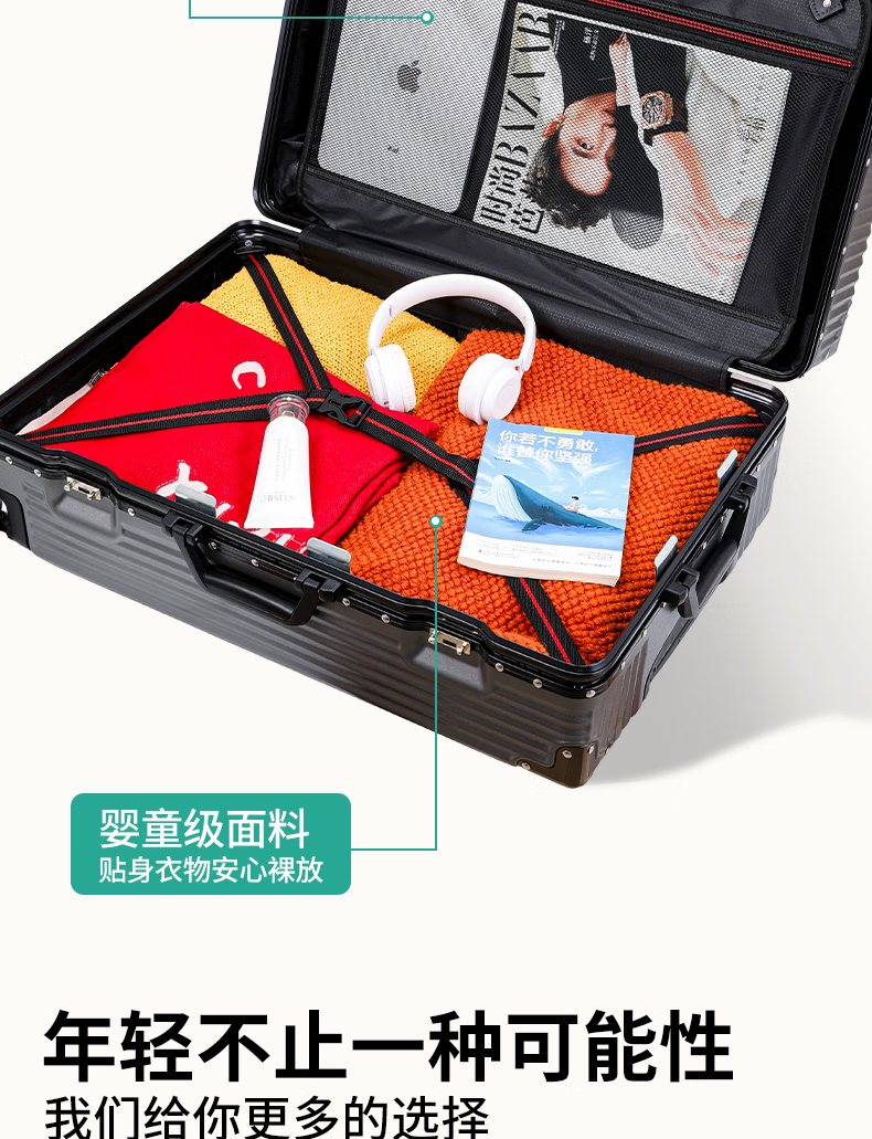 Scarecrow suitcase, aluminum frame trolley case, thickened and strong, compression-resistant suitcase, boarding case, large-capacity student password case, space gray, reinforced alloy aluminum frame - scratch-resistant and wear-resistant + safe and explosion-proof, 26 inches, can seat one person - checked luggage required
