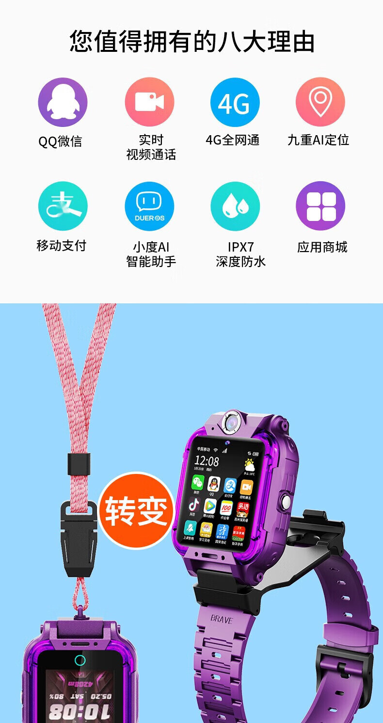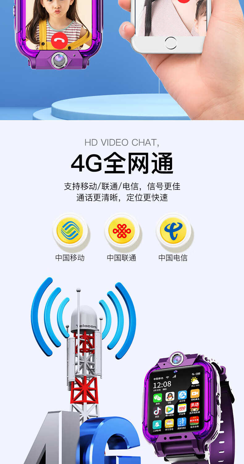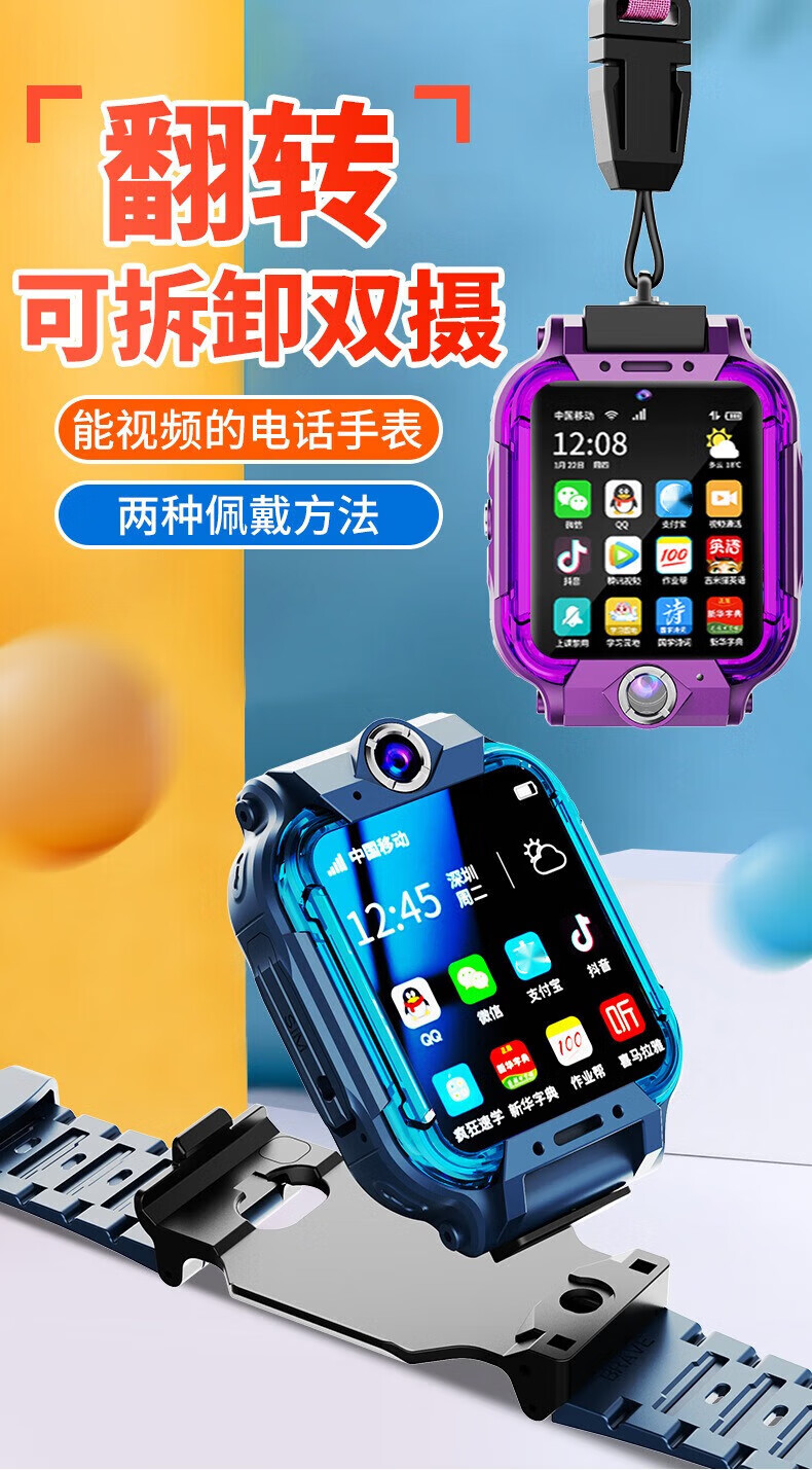 Mobile phone universal 5G smart children's phone watch video call positioning multi-function waterproof primary school student 5G pink rotating dual camera + video call + APP download + change payment 1
