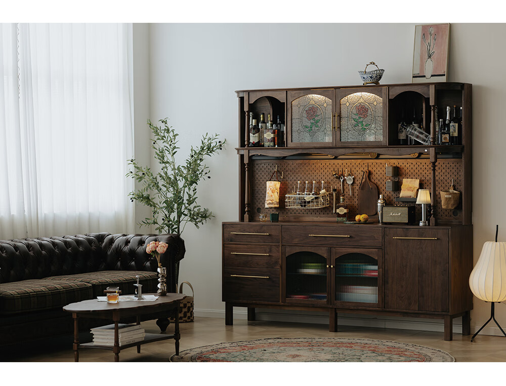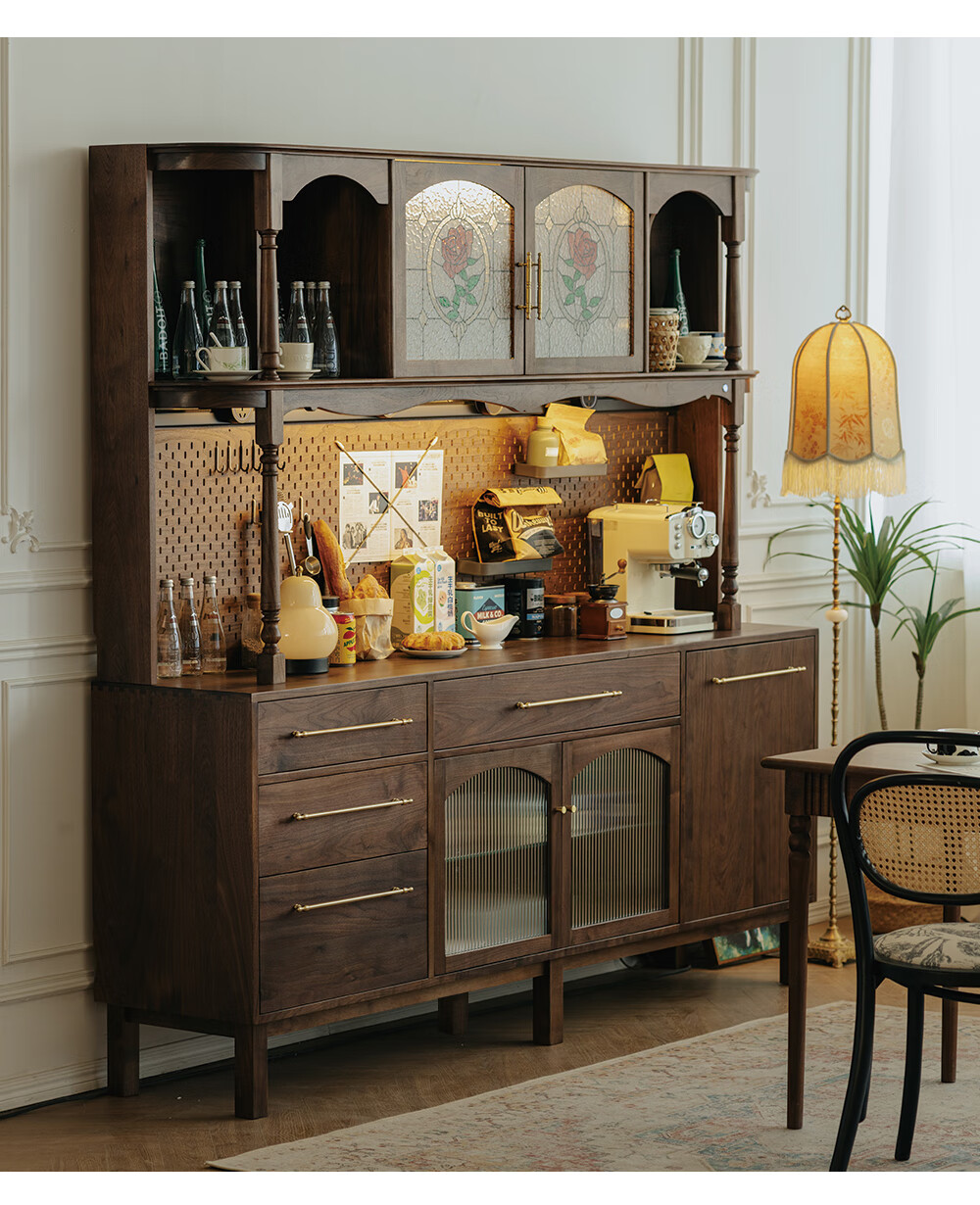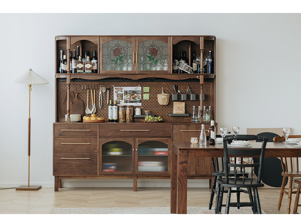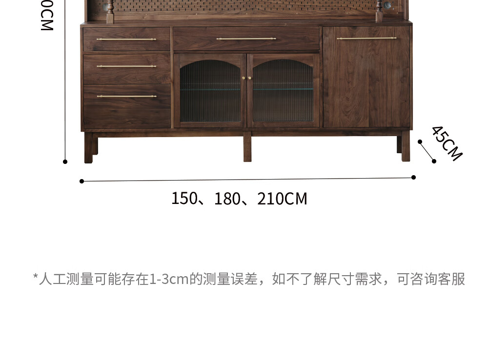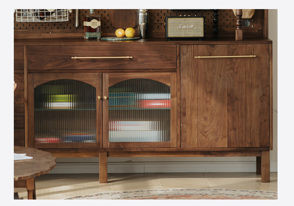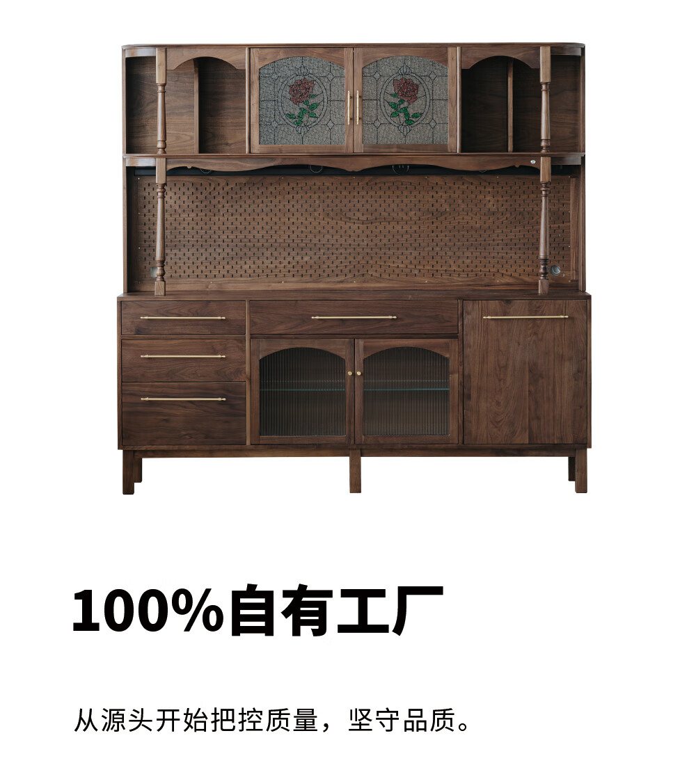 Jinjiang Chuancheng North American black walnut sideboard all solid wood retro living room dining room storage cabinet one-piece wall-mounted household cupboard sideboard 150*45*200cm