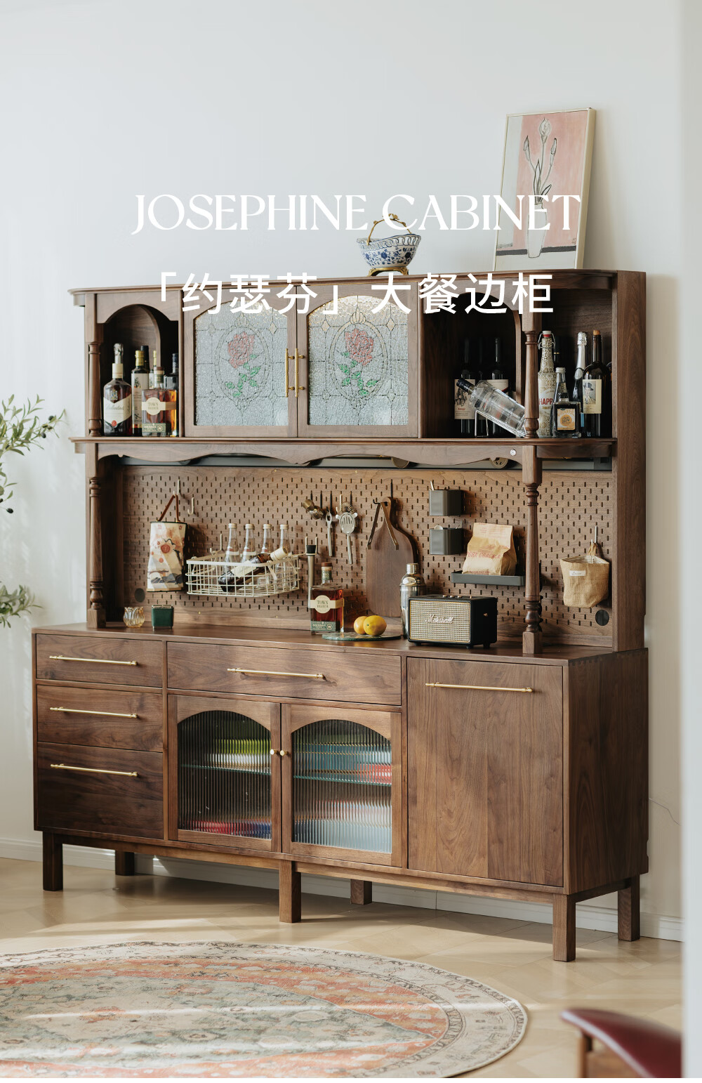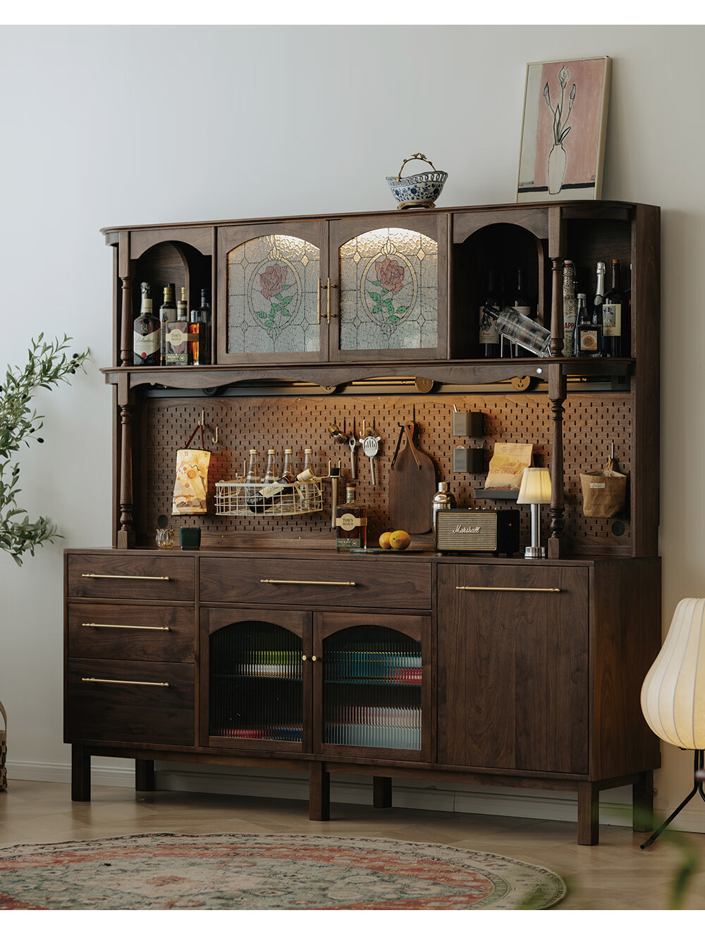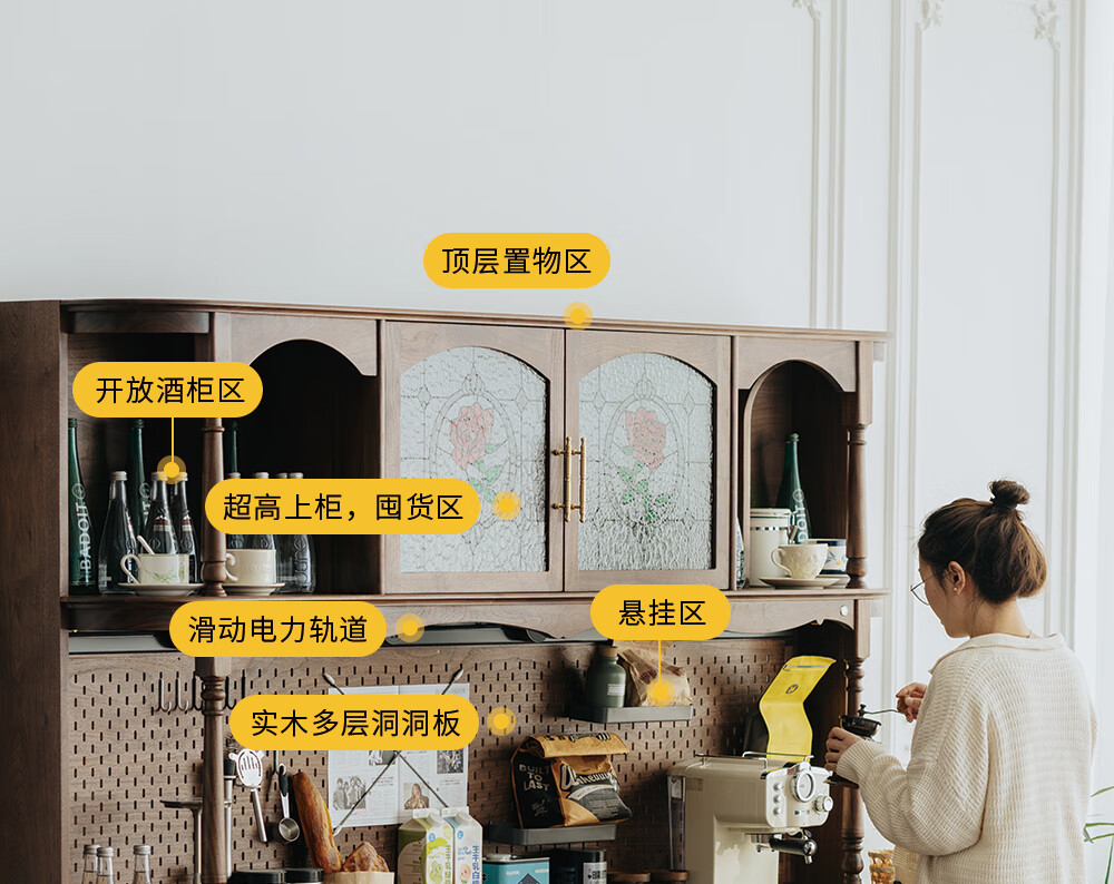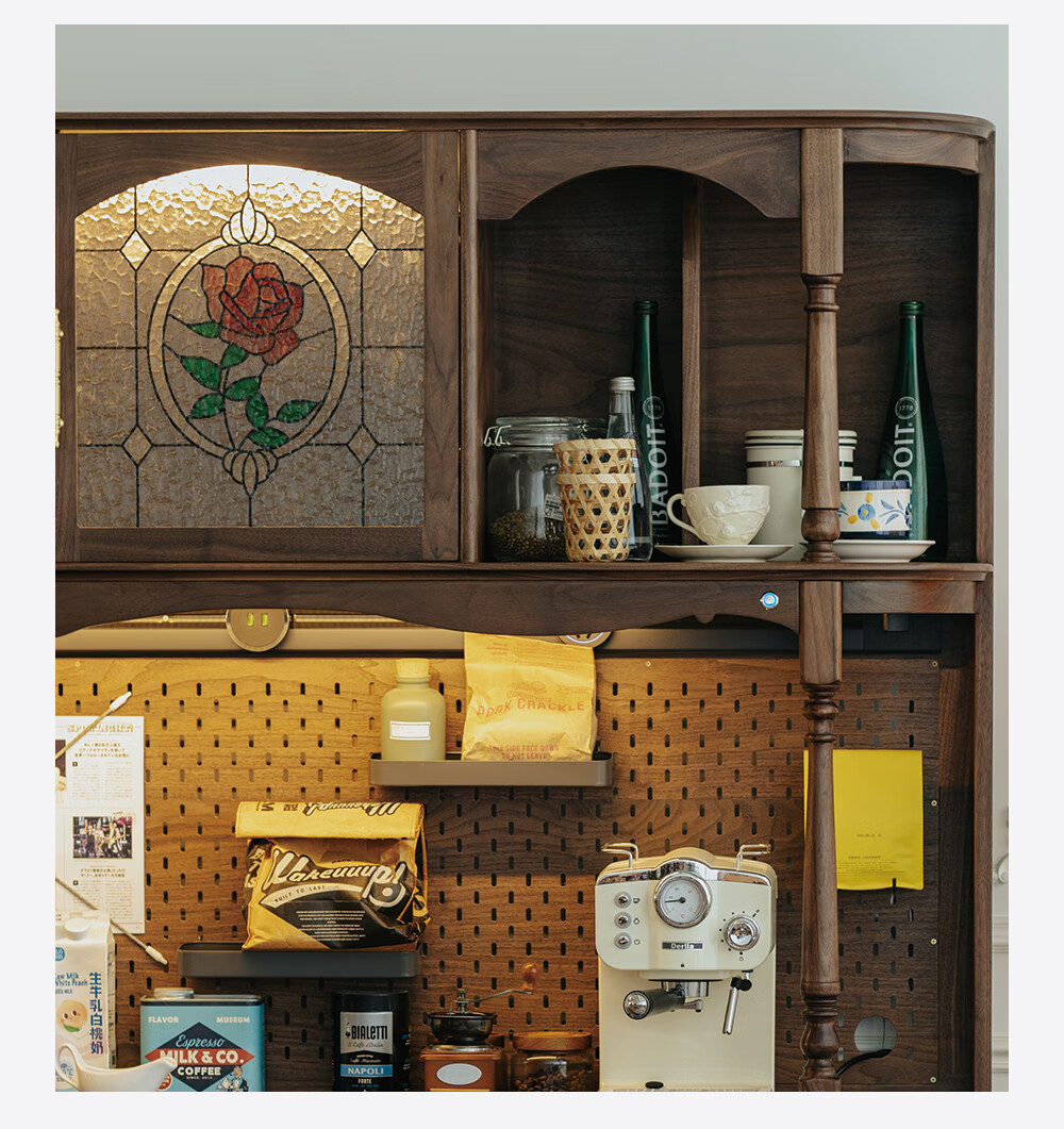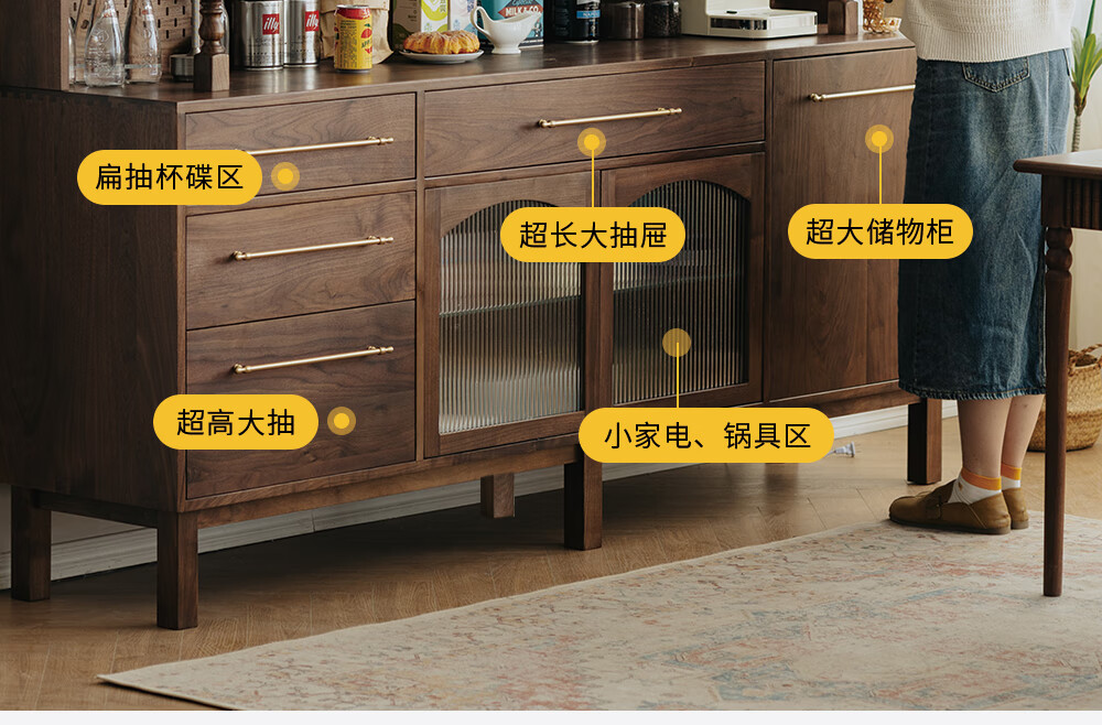 Jinjiang Chuancheng North American black walnut sideboard all solid wood retro living room dining room storage cabinet one-piece wall-mounted household cupboard sideboard 150*45*200cm