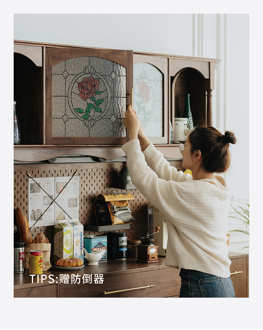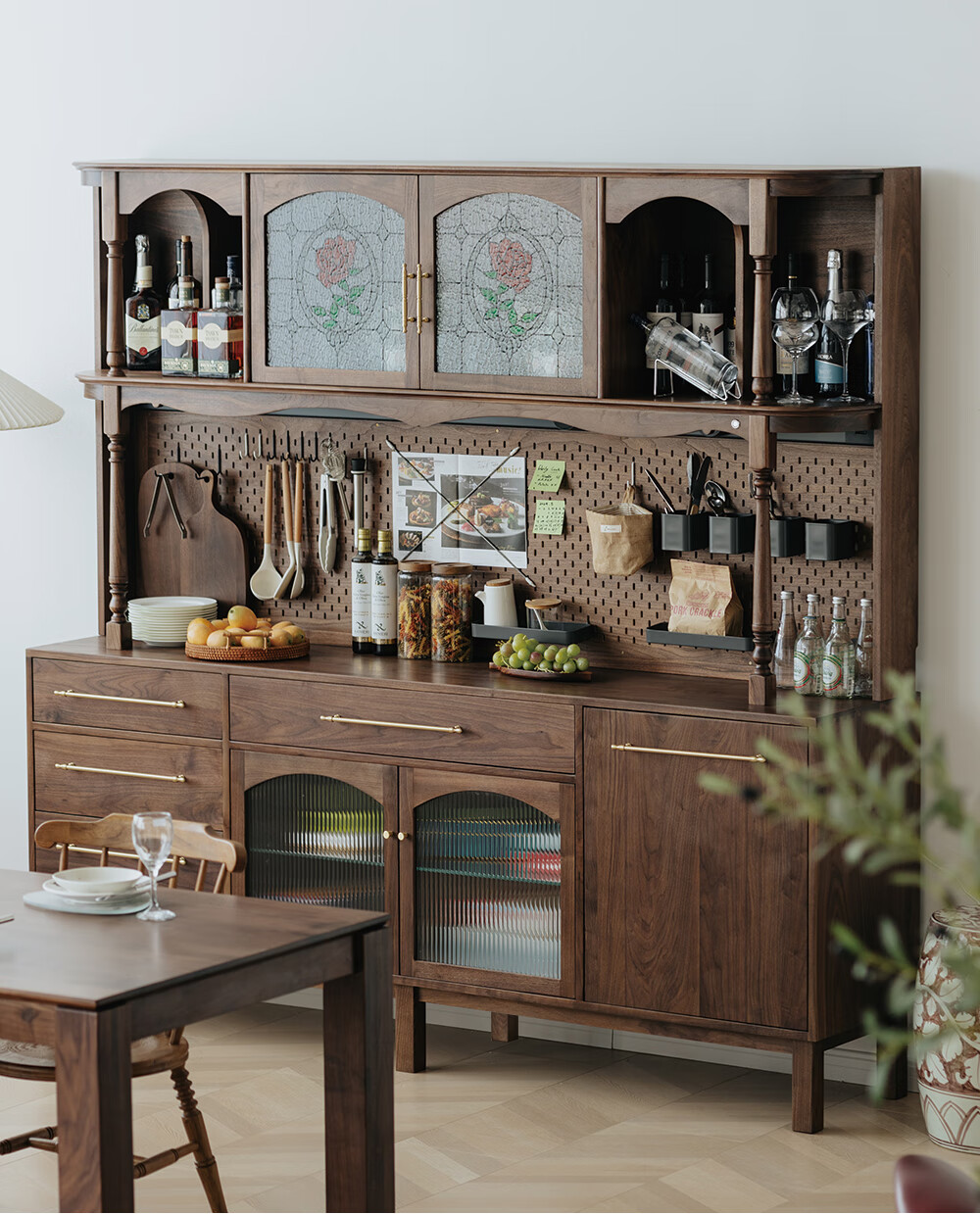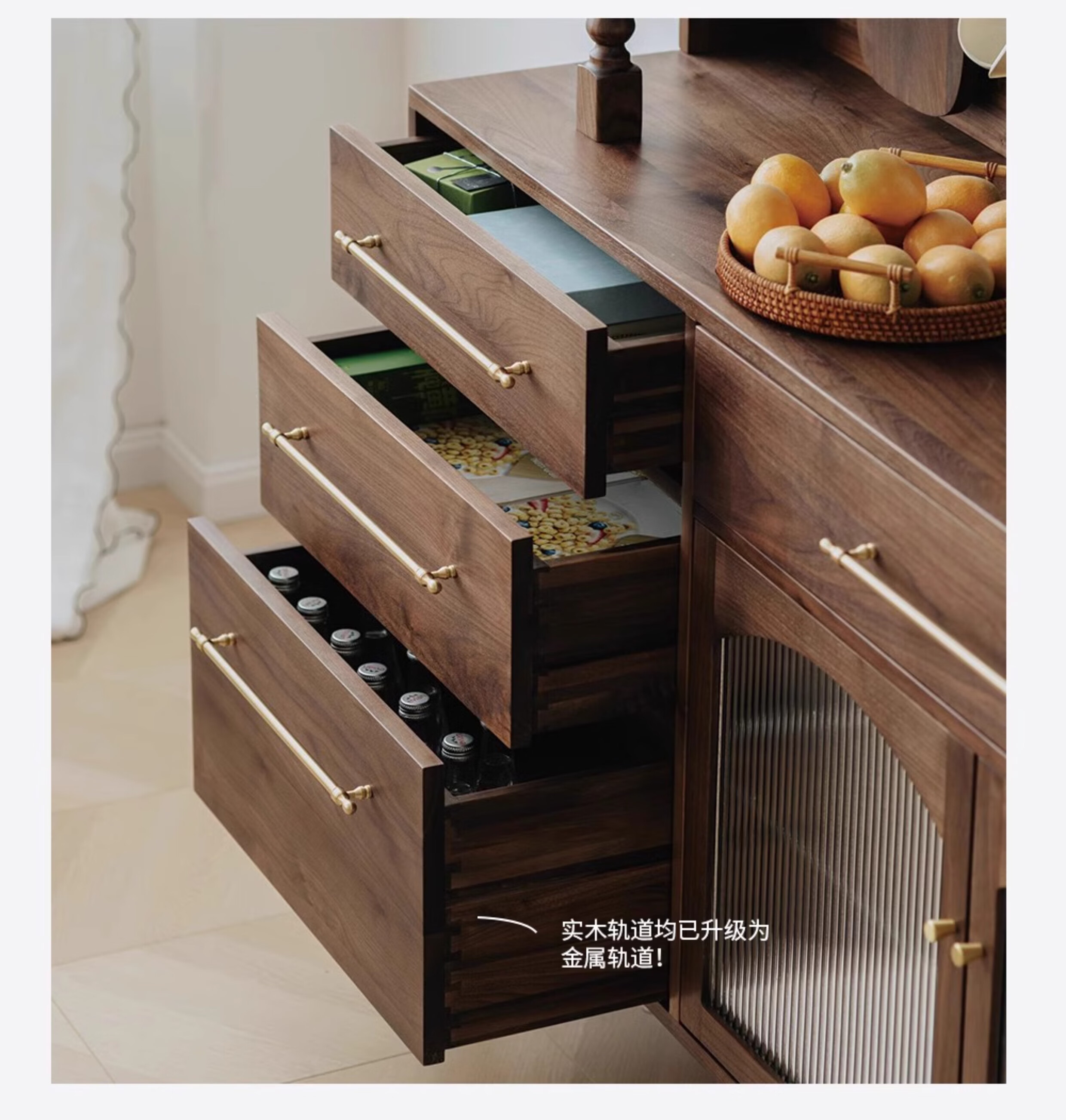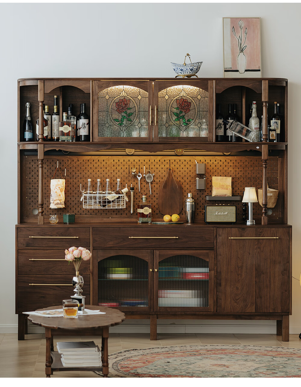 Jinjiang Chuancheng North American black walnut sideboard all solid wood retro living room dining room storage cabinet one-piece wall-mounted household cupboard sideboard 150*45*200cm