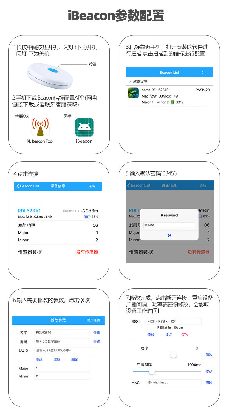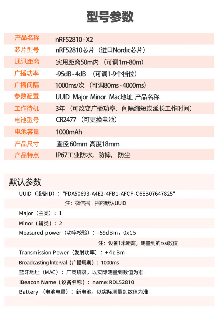 Bluetooth beacon ibeacon positioning base station BLE equipment scenic spot guide indoor and outdoor navigation inspection check-in module 52810-X2Pro 2477 battery parameters can be changed without double-sided tape