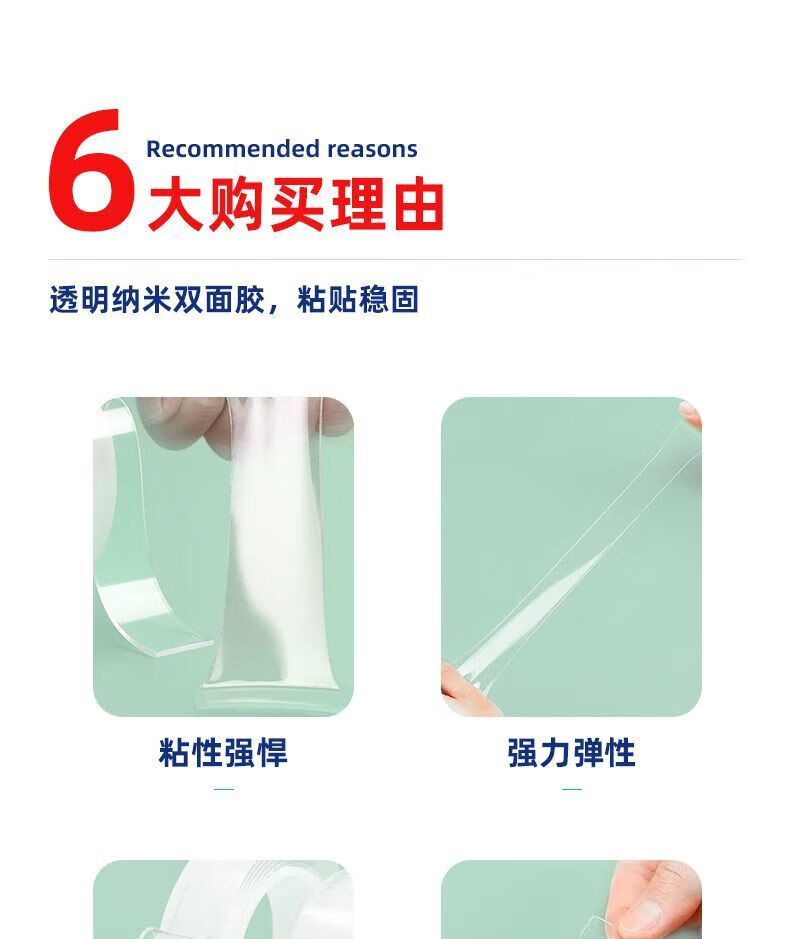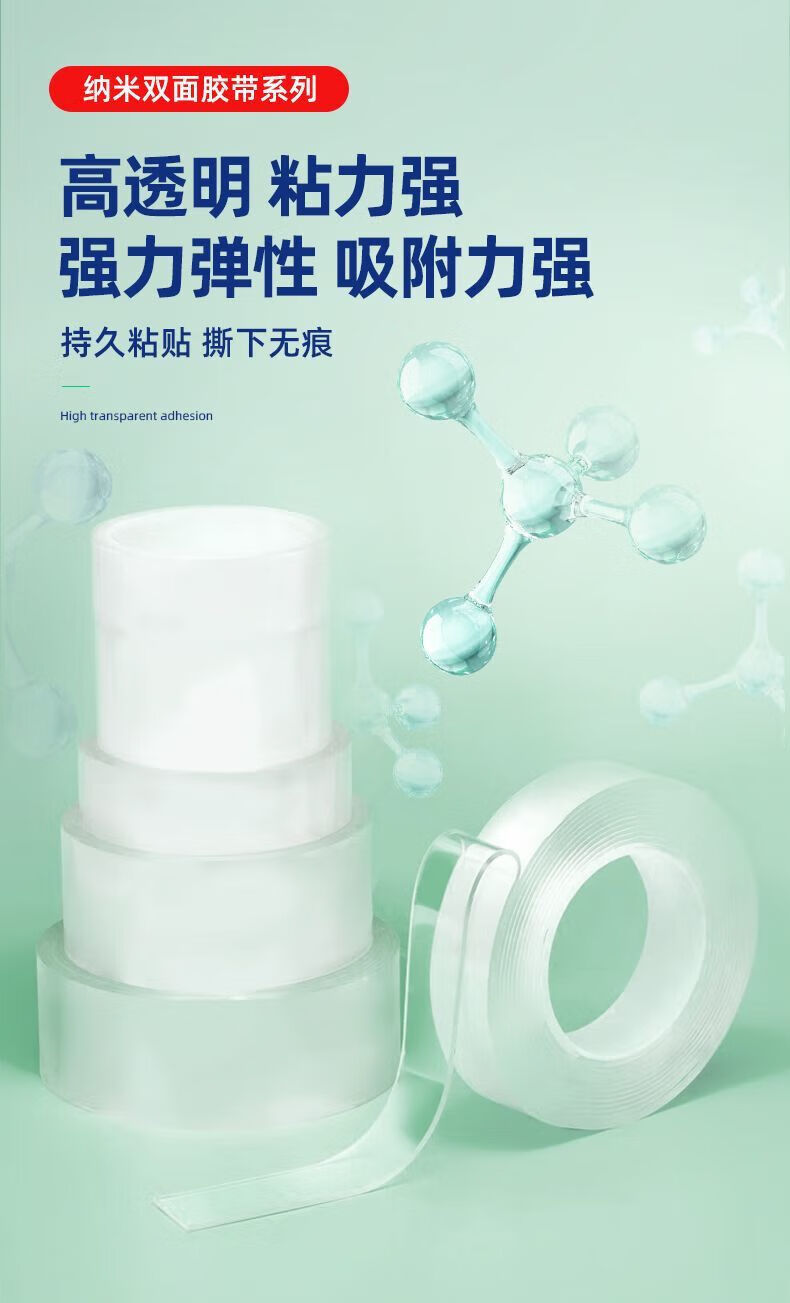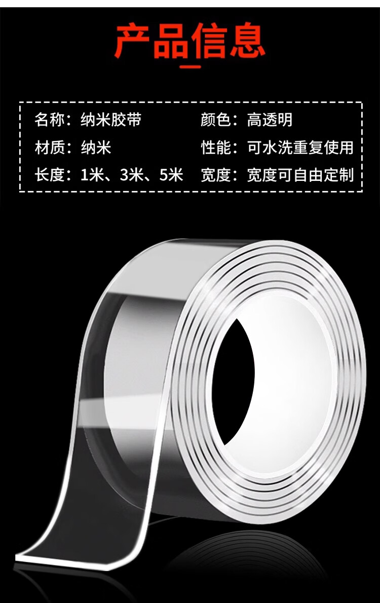 Nano-double-sided tape, high viscosity, strong double-sided wall sticker, super waterproof car adhesive patch, traceless transparent tape, magic patch, nano-mesh double-sided tape, non-marking adhesive tape, 2 cm wide * 1 meter long, 0.5mm thick