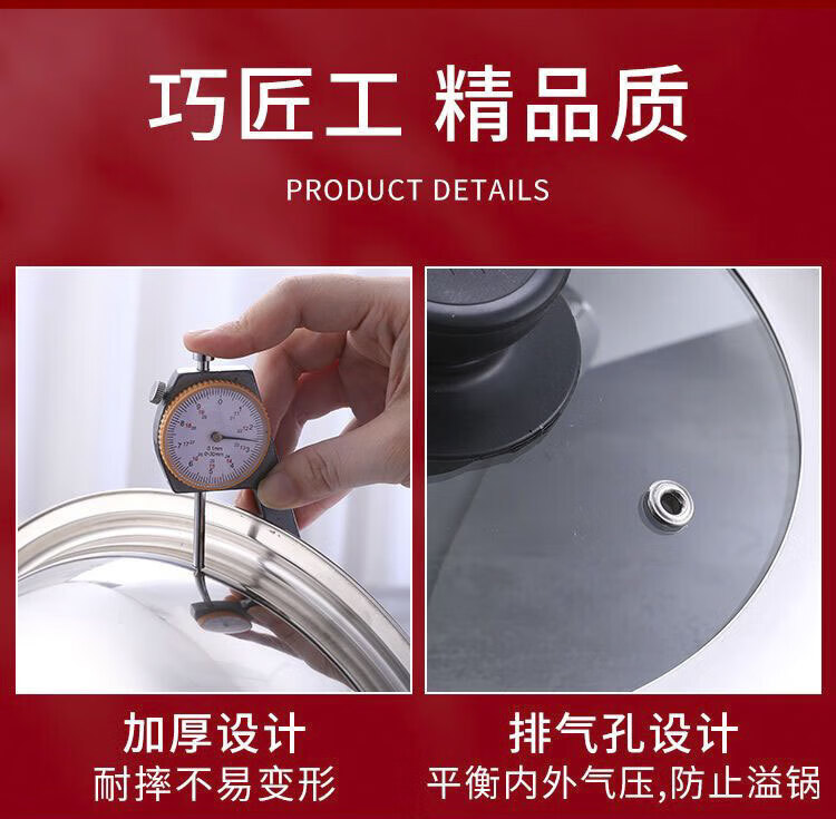 Fat Donglai same style pot lid stainless steel thickening and heightening see-through glass combination household pan wok universal lid supermarket visible pot lid 32 32 specifications