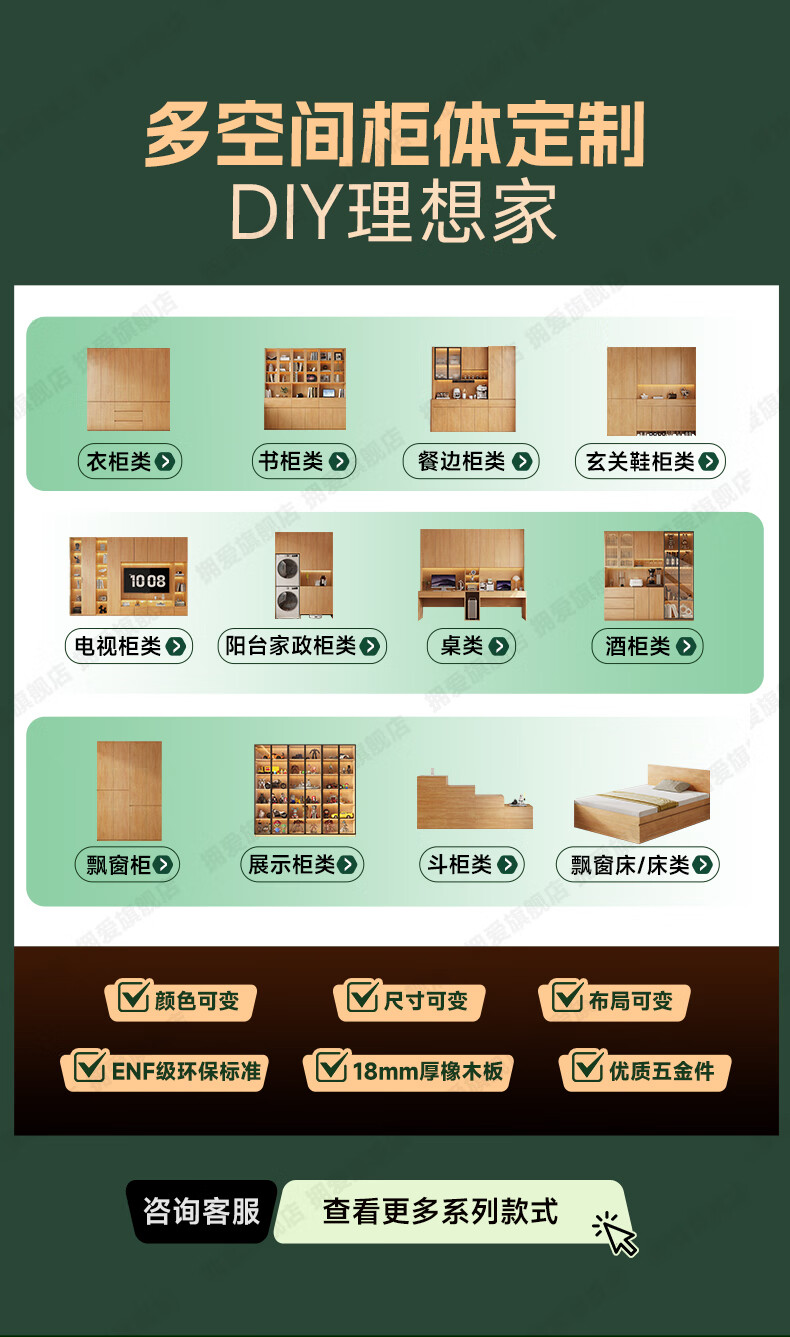 Yongai whole-house custom cabinets for household solid wood furniture decoration are available with free warehousing and 20-year warranty for 10,000 yuan.