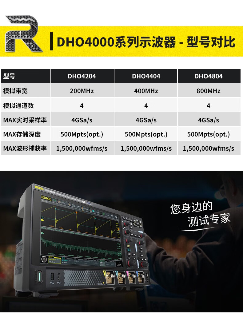 RIGOL Puyuan DHO4404 digital oscilloscope four-channel 400M bandwidth 500M point storage depth DHO440418Vrms background noise 4GSa/s original/official three-year warranty