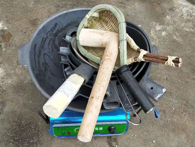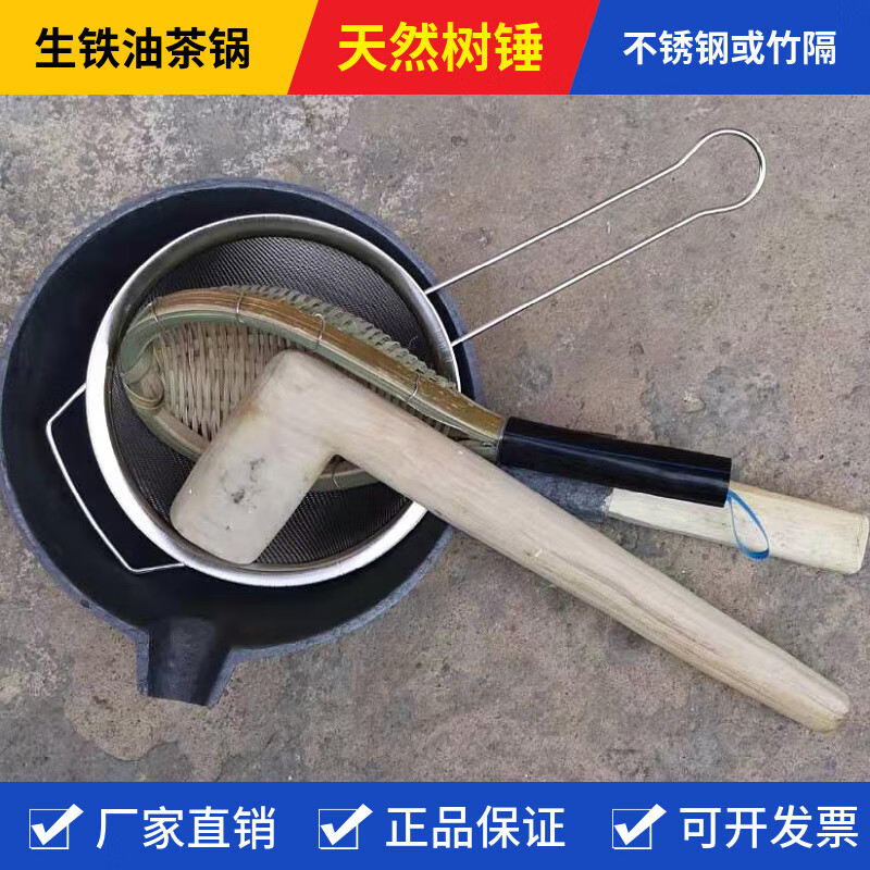 FANCYCHIC old-fashioned Gongcheng Guanyang oil tea pot complete set of tools solid wood hammer tea partition full set oil tea pot set three-piece set (open pot) + stainless steel partition + oil tea hammer diameter 22 thickened flat bottom single pot