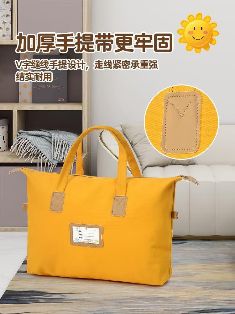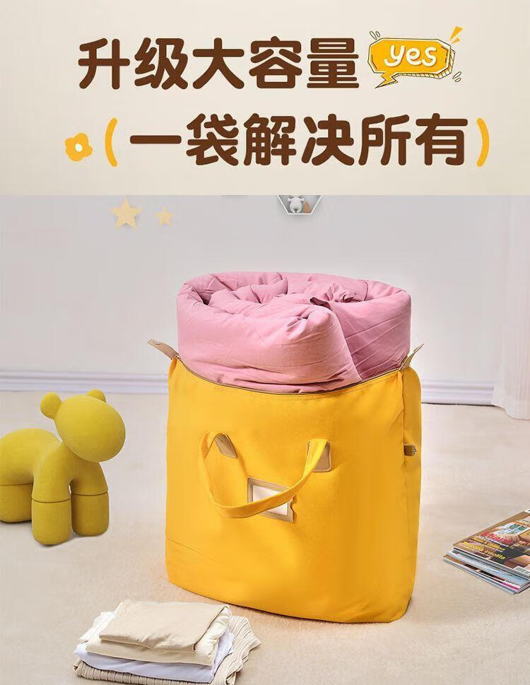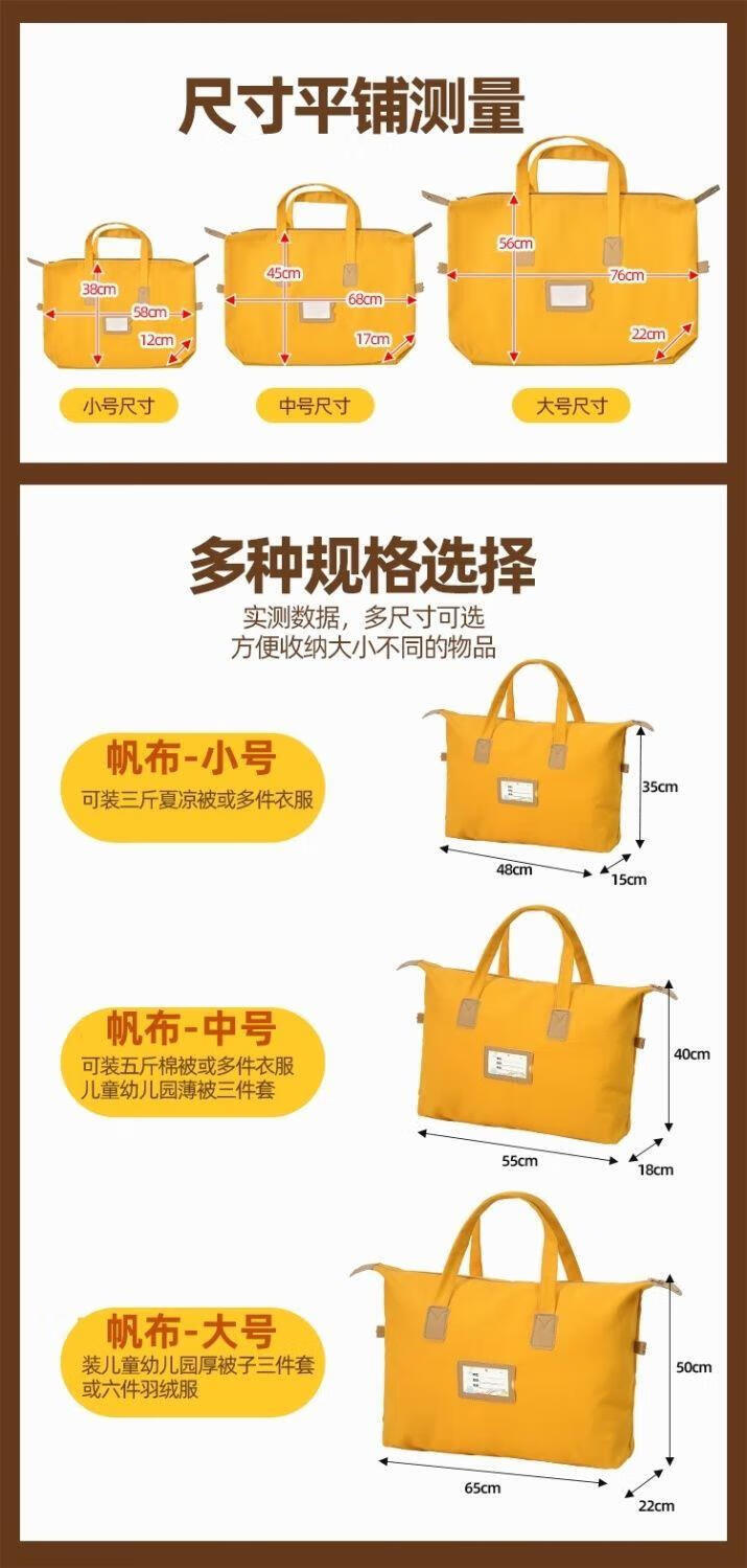 Kindergarten quilt storage bag canvas bag large capacity strong and durable student luggage bag thickened travel tote bag Goose Yellow - upgraded thickened canvas fabric large size (can hold 5-8 pounds of quilt)