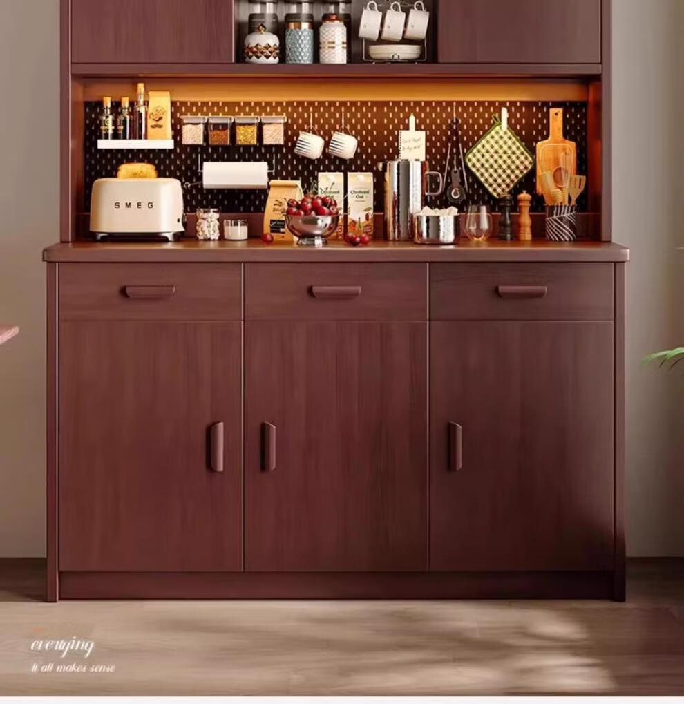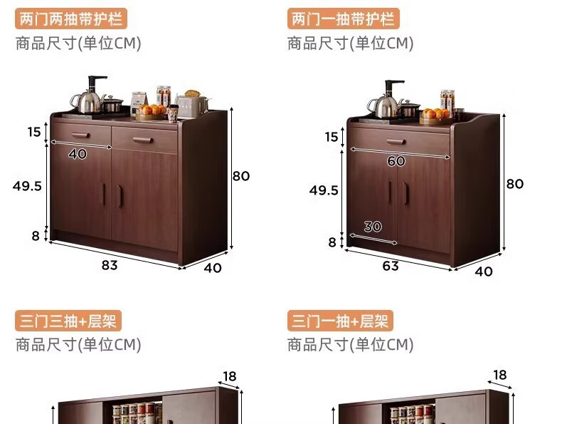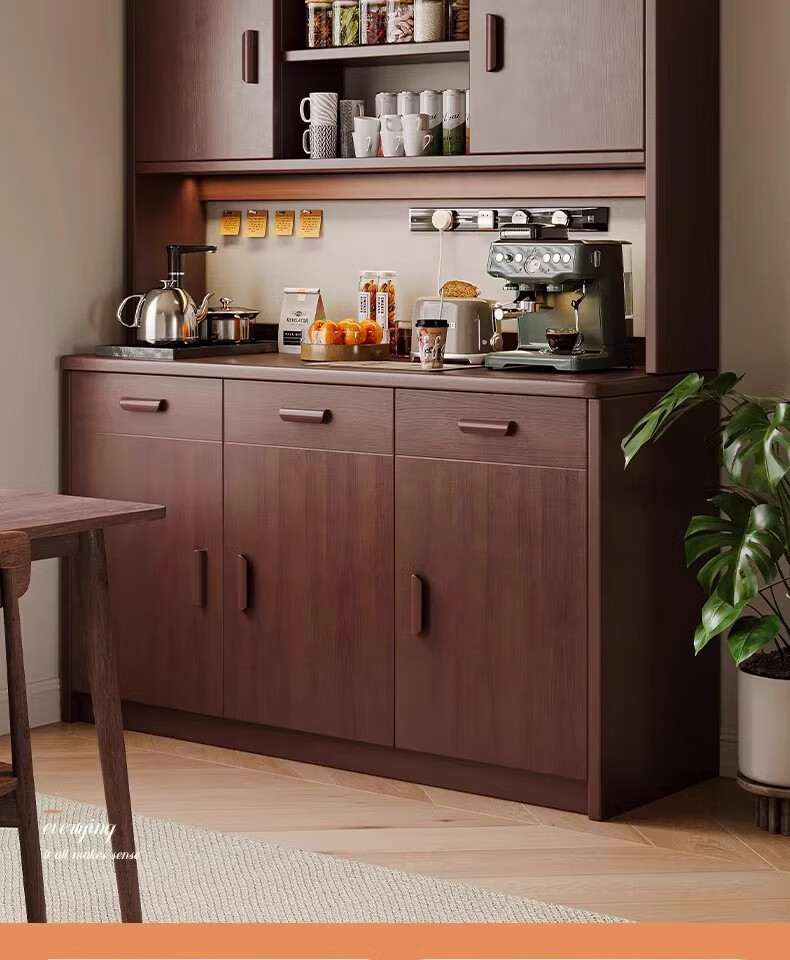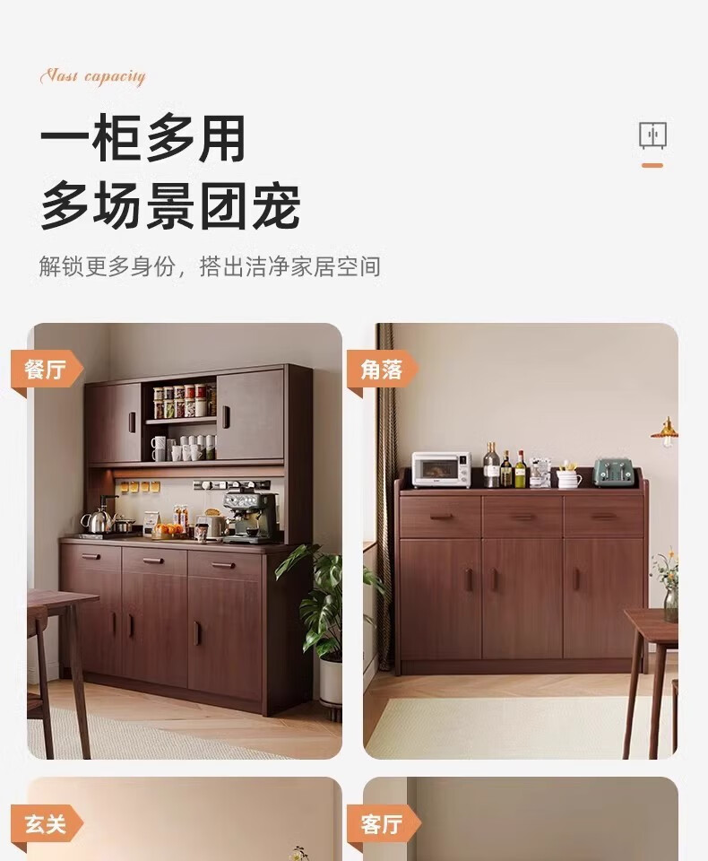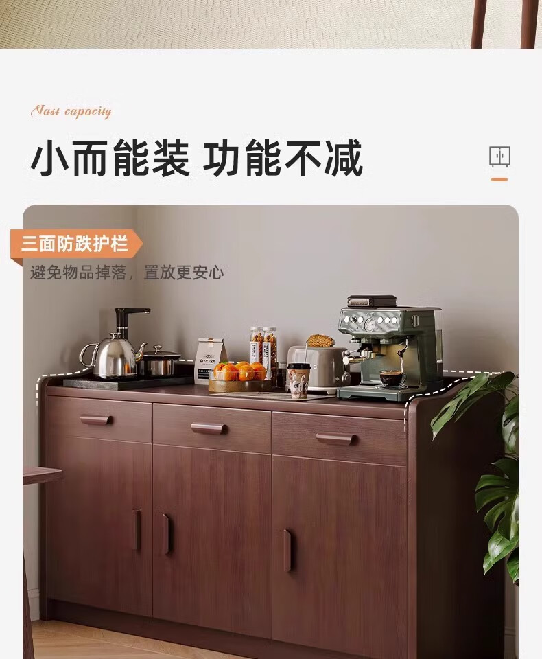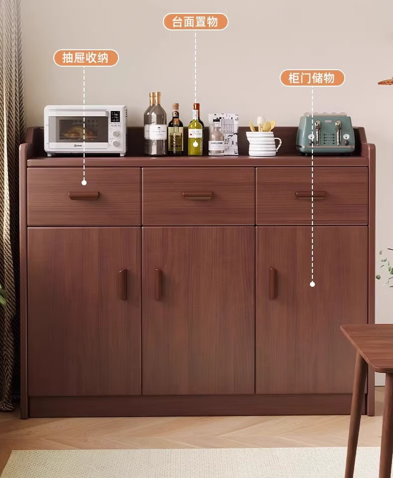 Fuli solid wood sideboard against the wall integrated wine cabinet tea cabinet kitchen cabinet living room storage cabinet storage cabinet storage cabinet short model with guardrail walnut color 63*40*80 free tools for self-installation