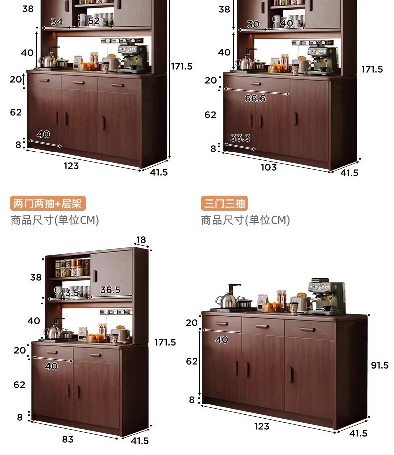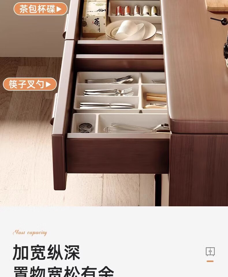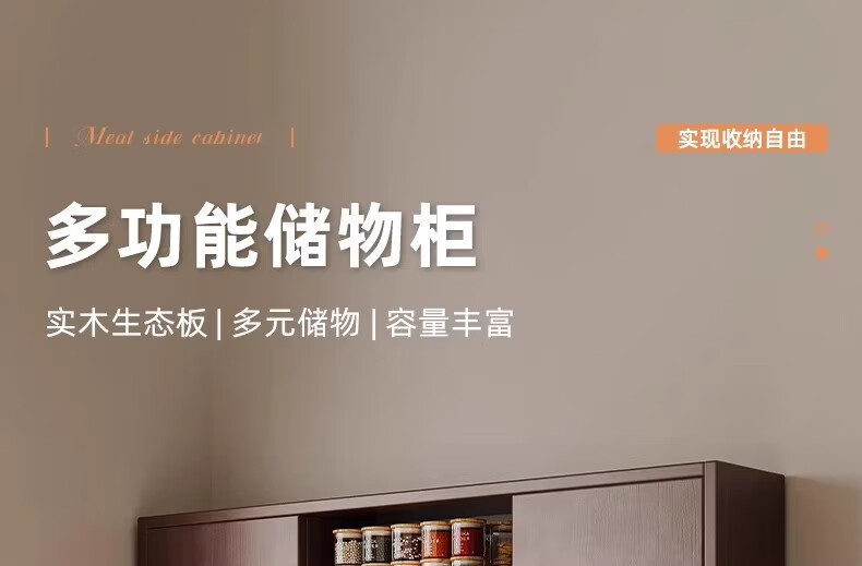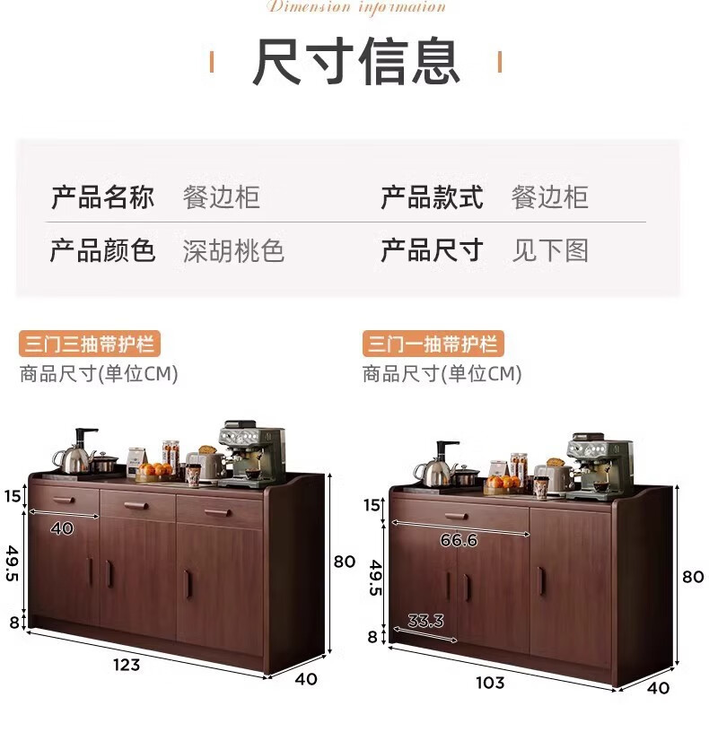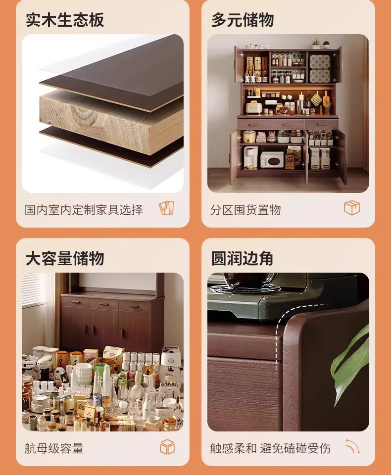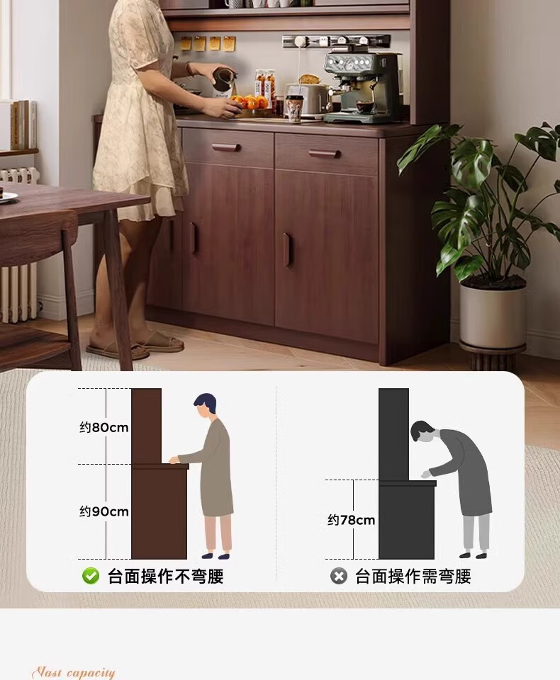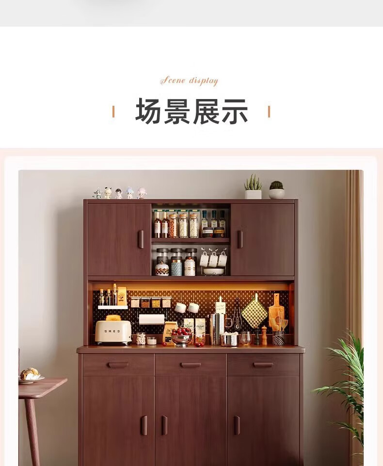 Fuli solid wood sideboard against the wall integrated wine cabinet tea cabinet kitchen cabinet living room storage cabinet storage cabinet storage cabinet short model with guardrail walnut color 63*40*80 free tools for self-installation