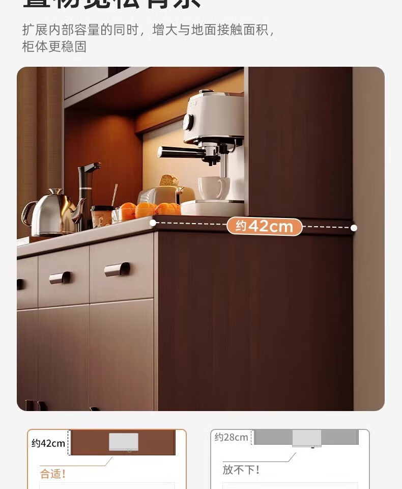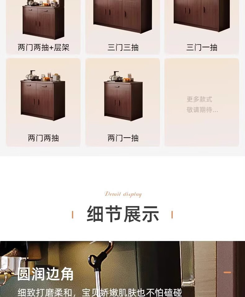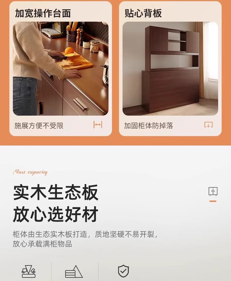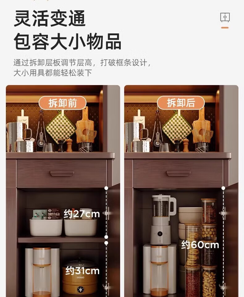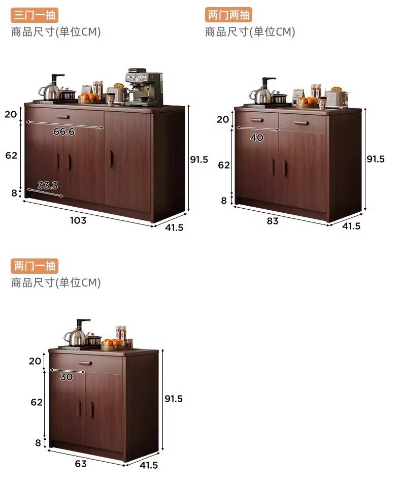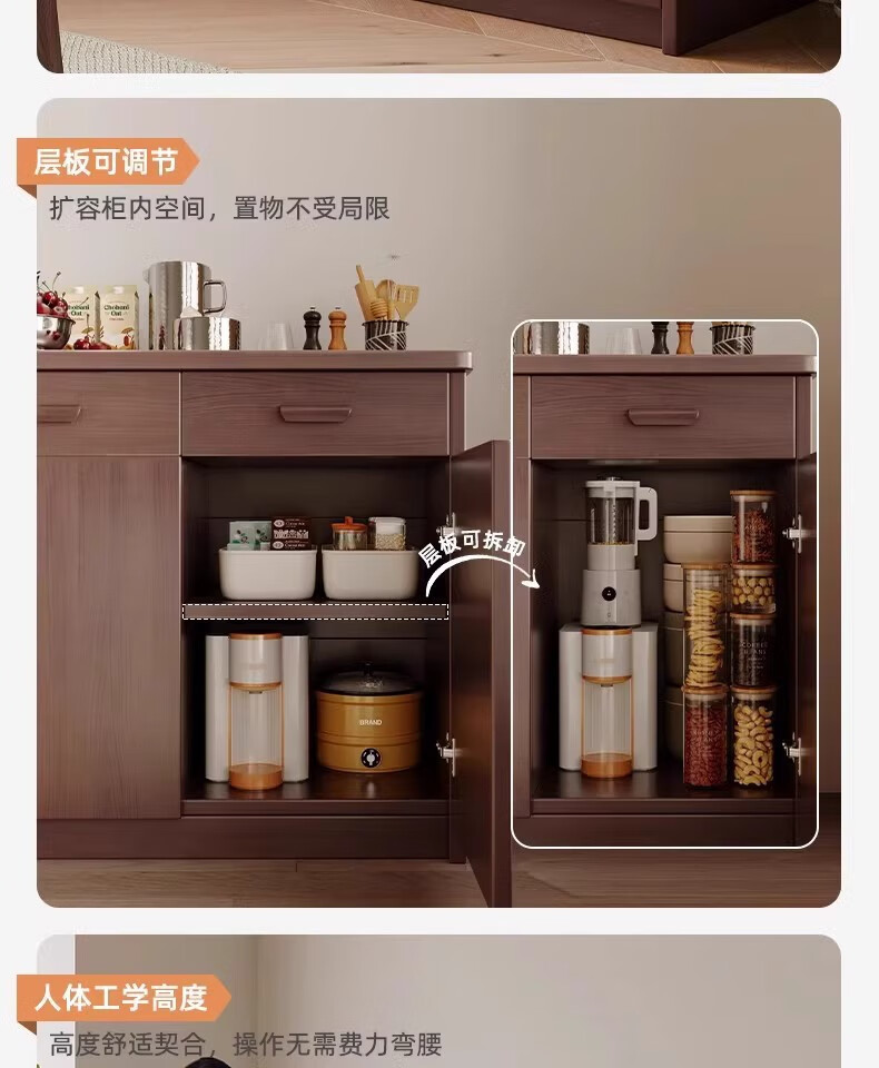 Fuli solid wood sideboard against the wall integrated wine cabinet tea cabinet kitchen cabinet living room storage cabinet storage cabinet storage cabinet short model with guardrail walnut color 63*40*80 free tools for self-installation