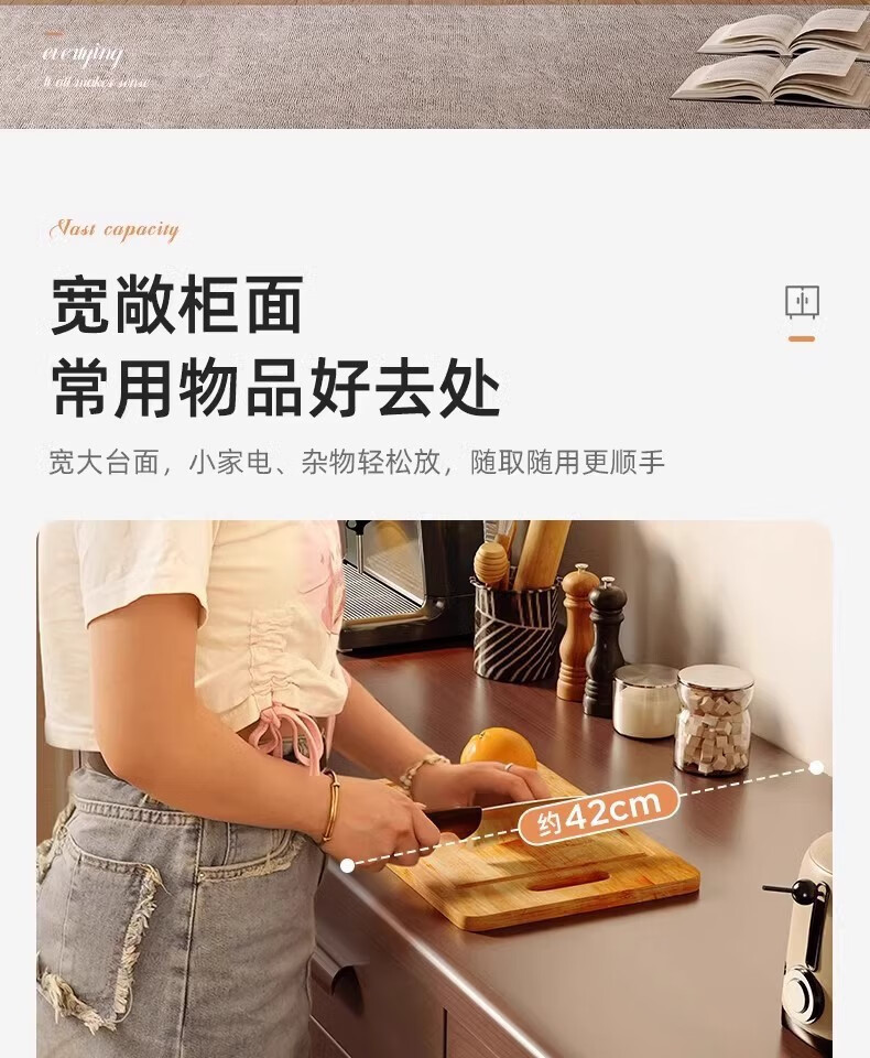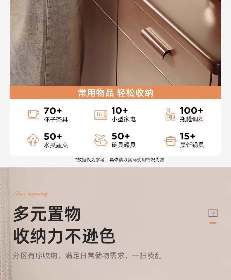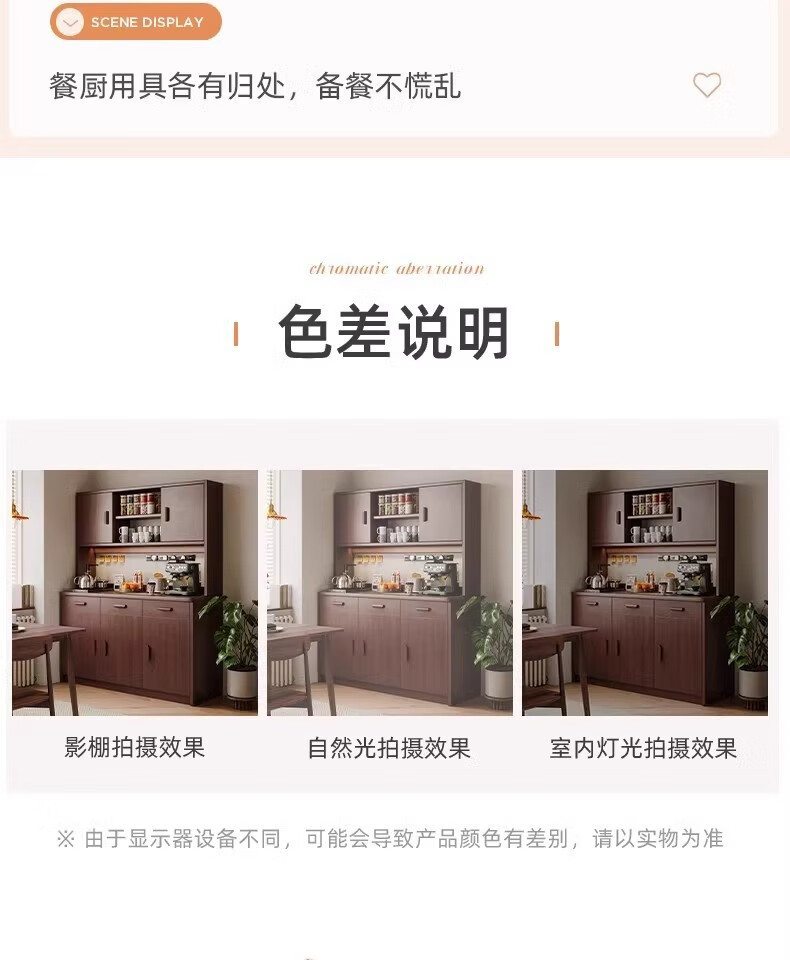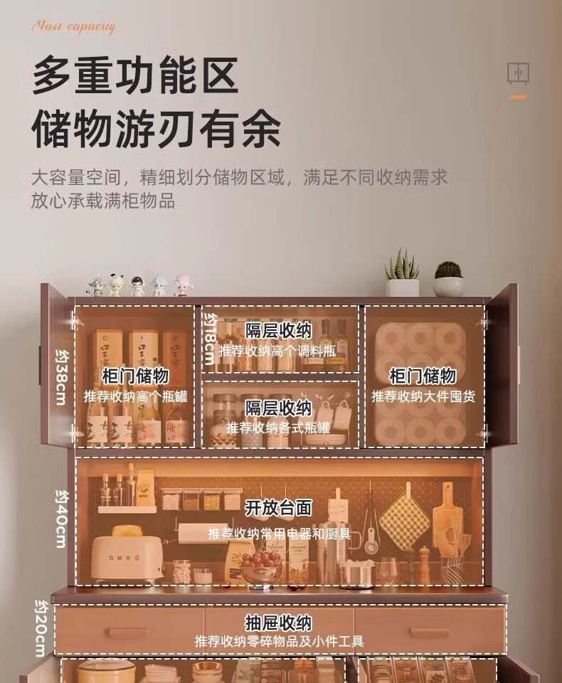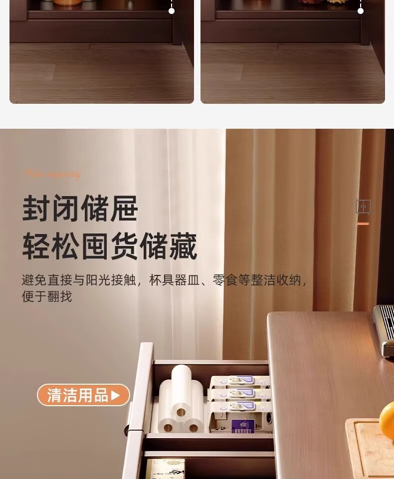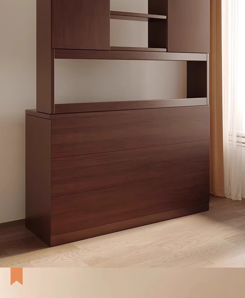 Fuli solid wood sideboard against the wall integrated wine cabinet tea cabinet kitchen cabinet living room storage cabinet storage cabinet storage cabinet short model with guardrail walnut color 63*40*80 free tools for self-installation