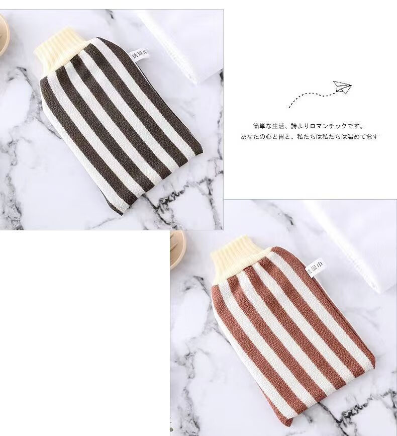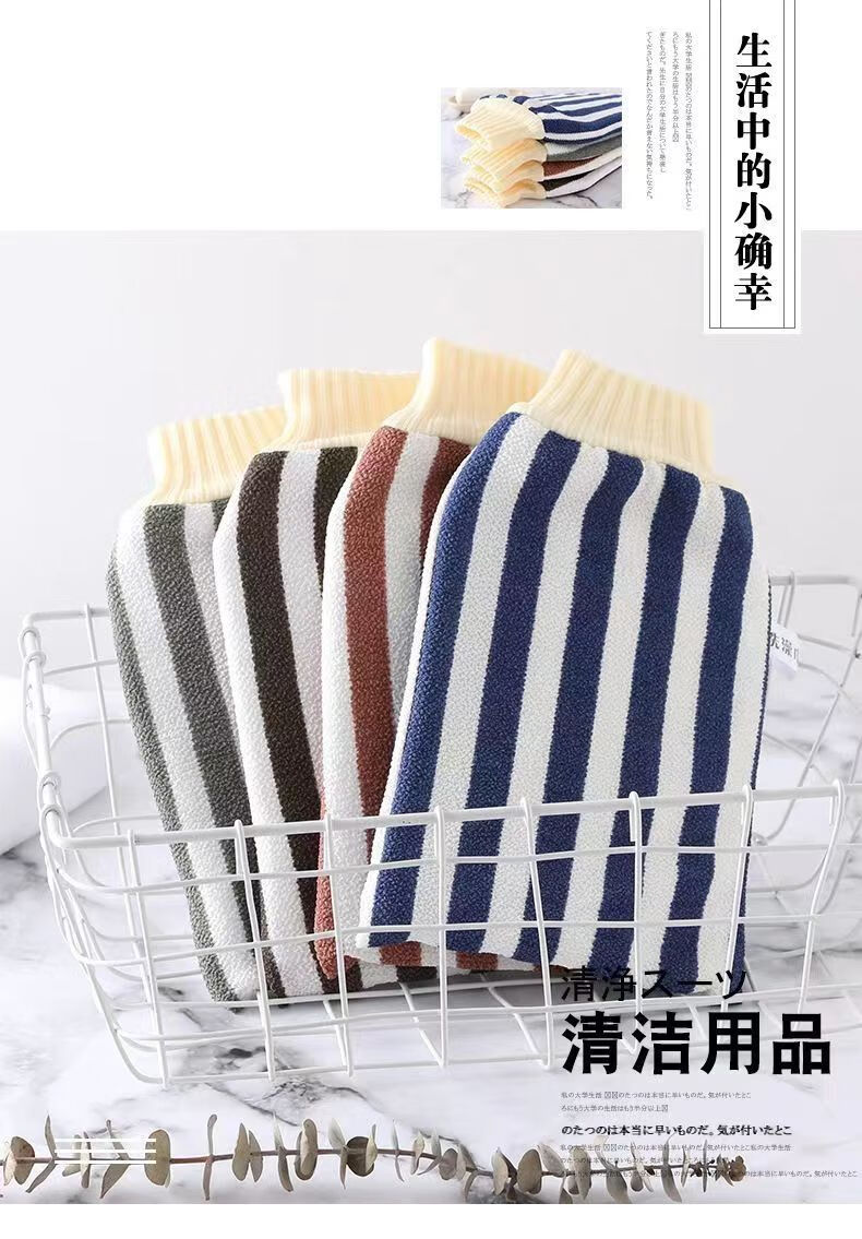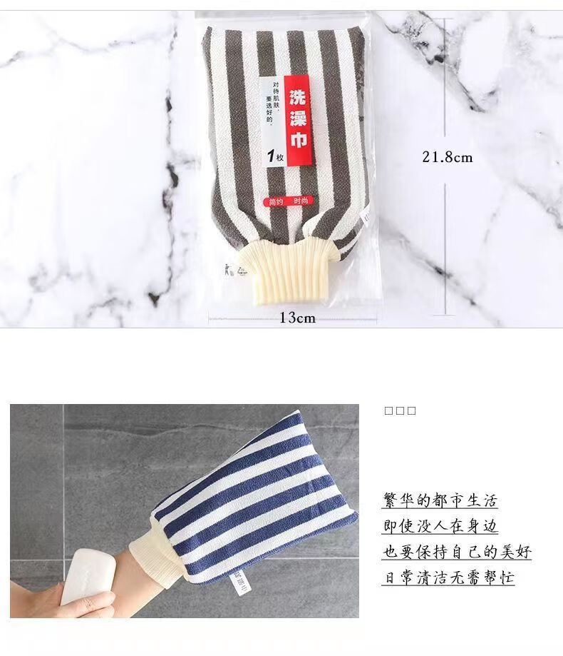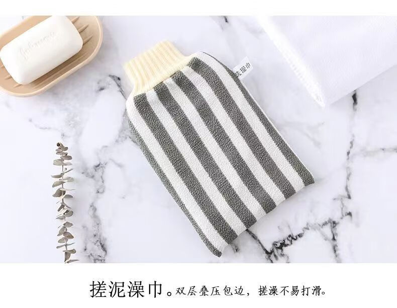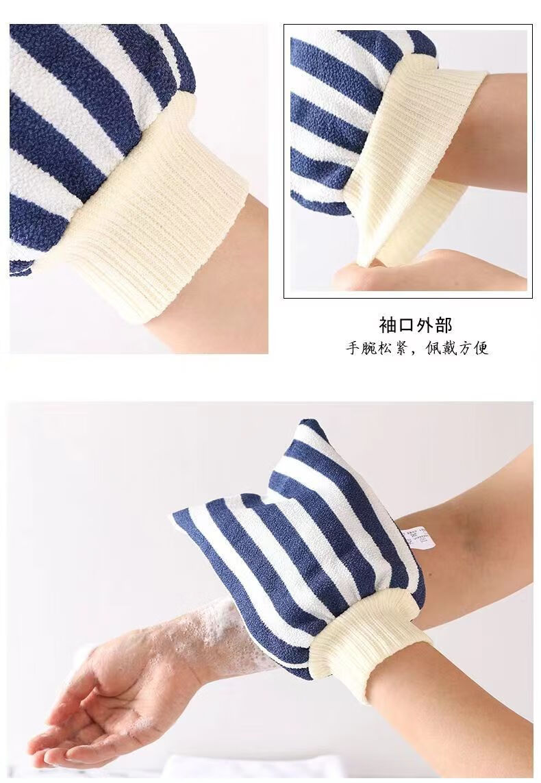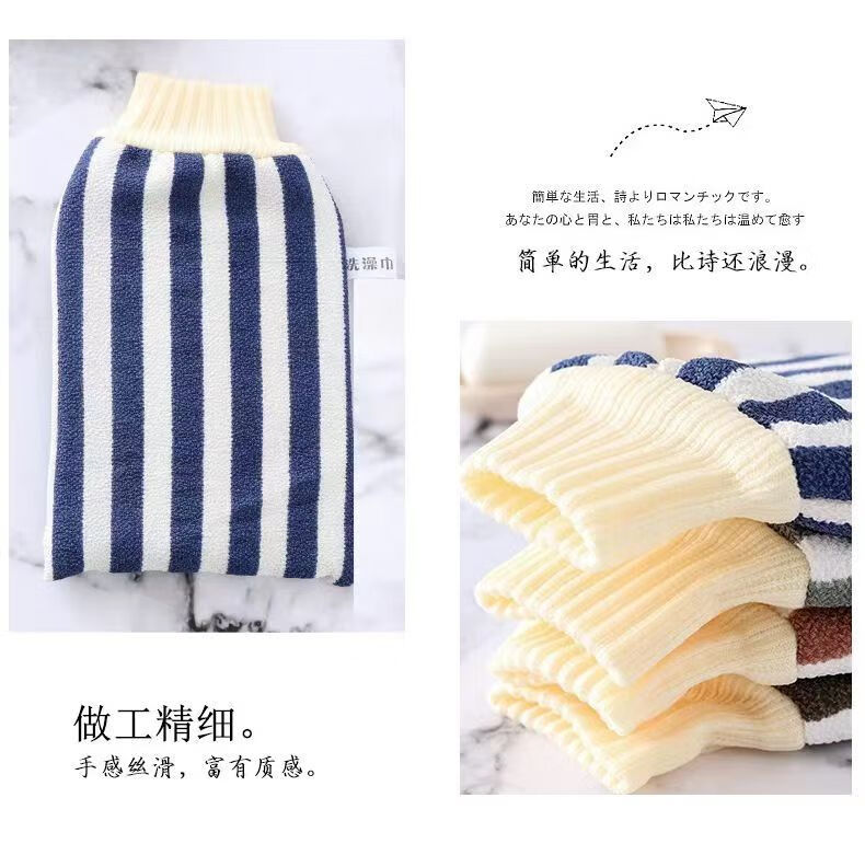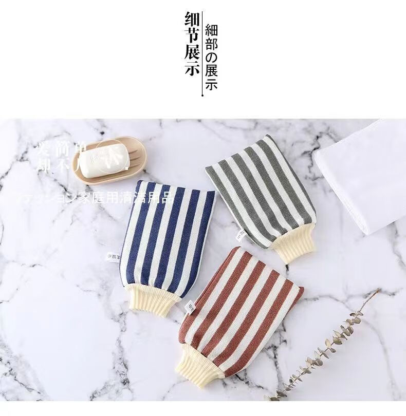 Bath towel, strong dust and mud rub, coarse sand back rub gloves, double-sided bath towel for men and women, striped red + navy blue (2 pieces)