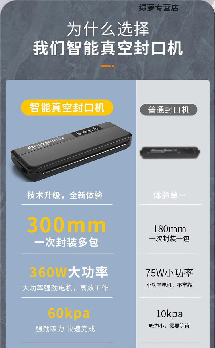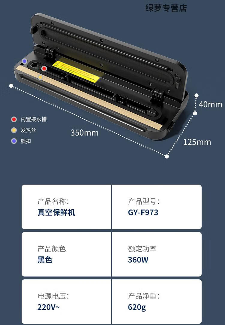 GIOIO Japan imported fully automatic food vacuum sealing machine household small fresh-keeping dry and wet sealing machine new plastic sealing machine Japanese motor black with 60 bags 20*30_ten years