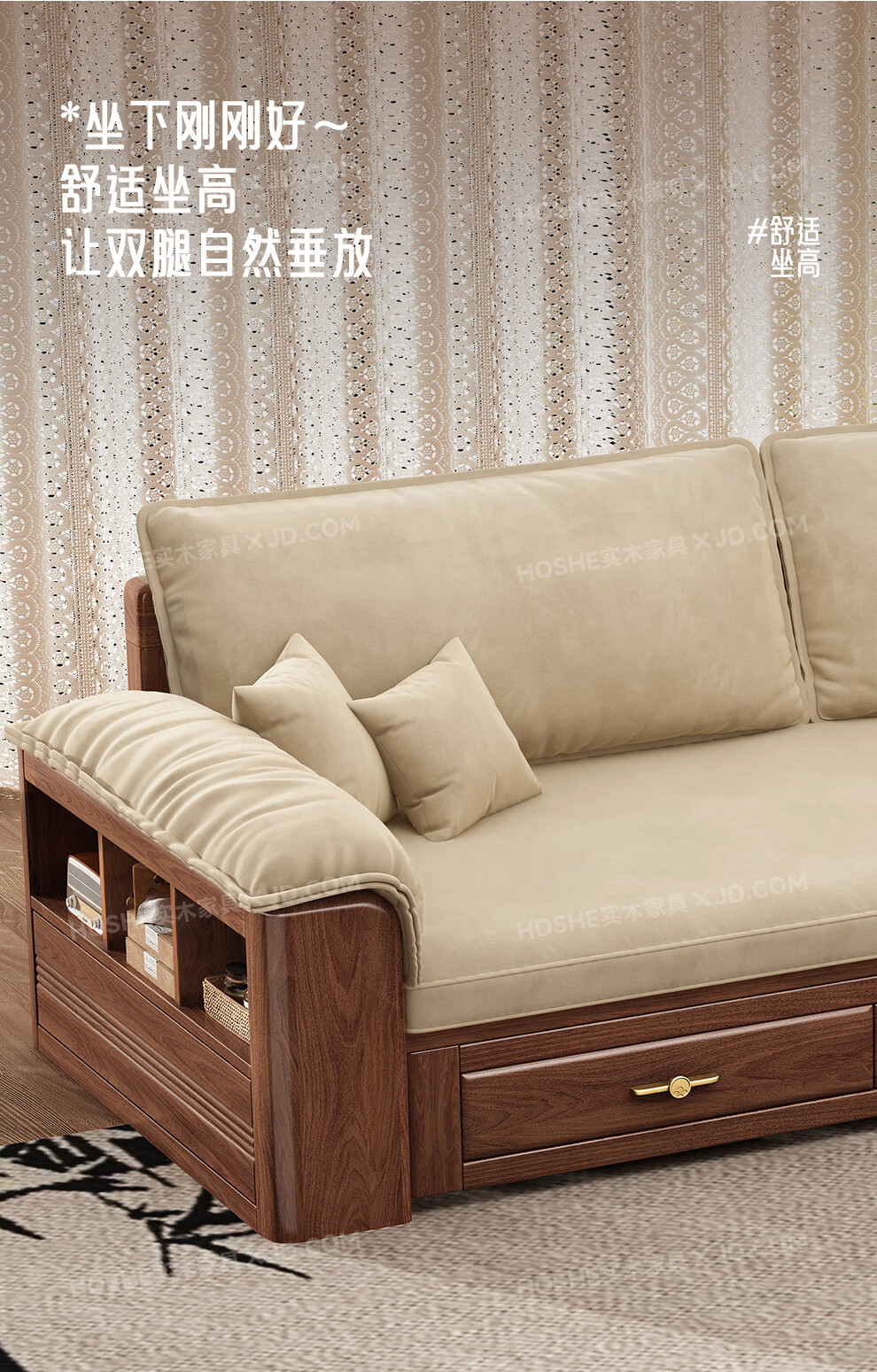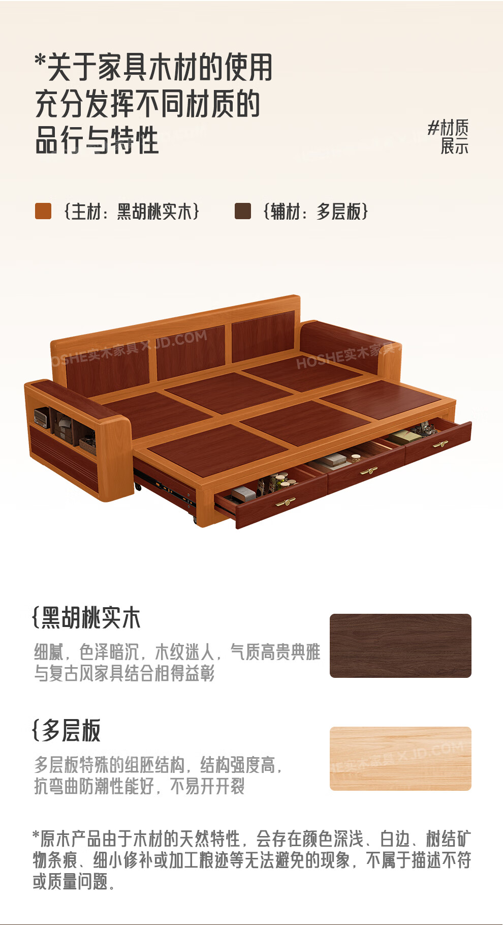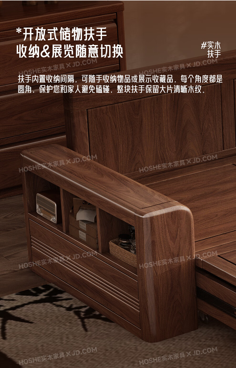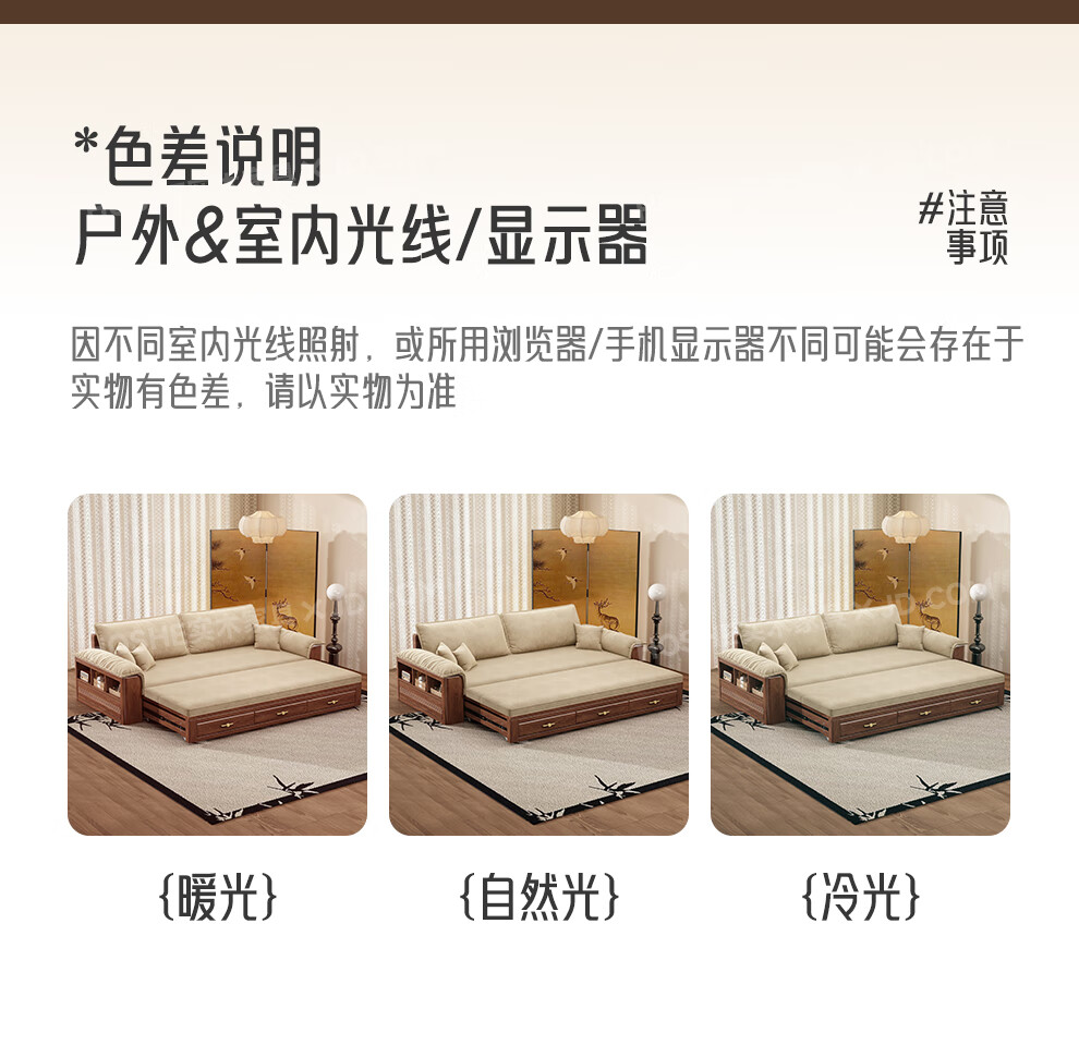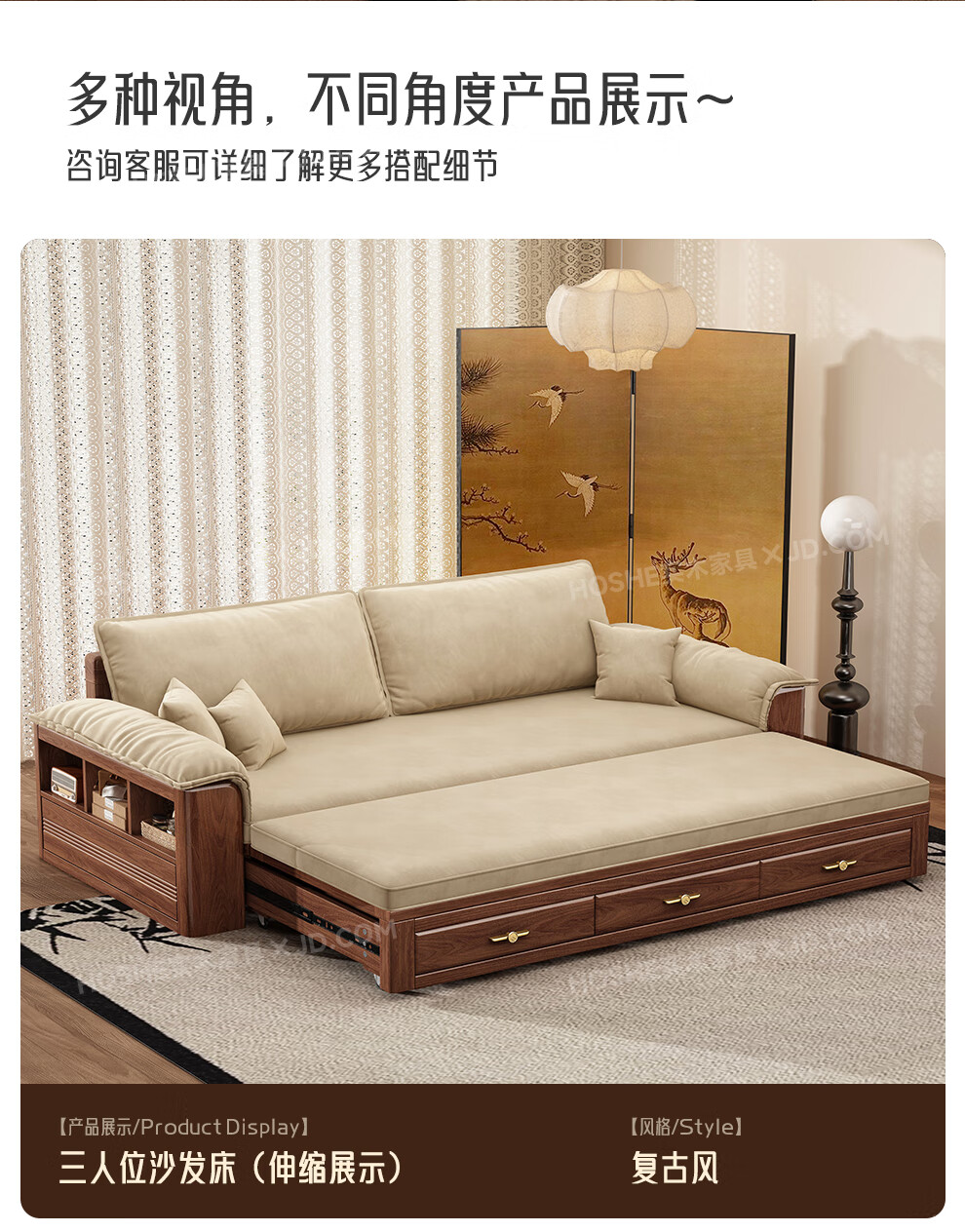 Harmony Home Sofa Bed Black Walnut Solid Wood Sofa Bed All-in-One Dual-Purpose 2025 New Push-Pull Small Apartment Sofa Living Room 2.19 Meter Sofa Bed Without Armrest Package Assembly