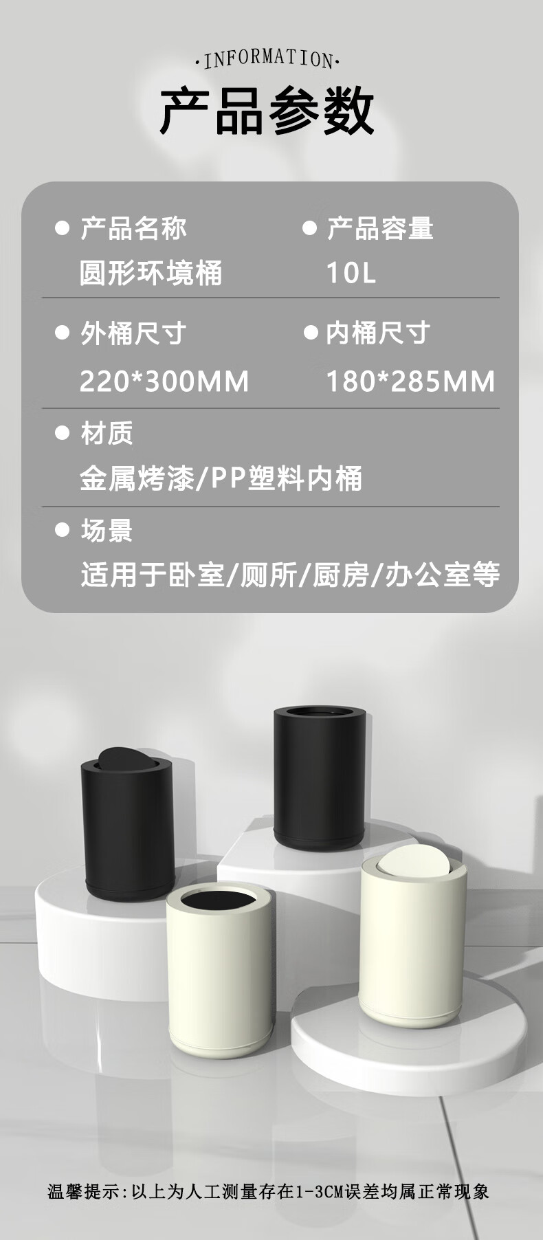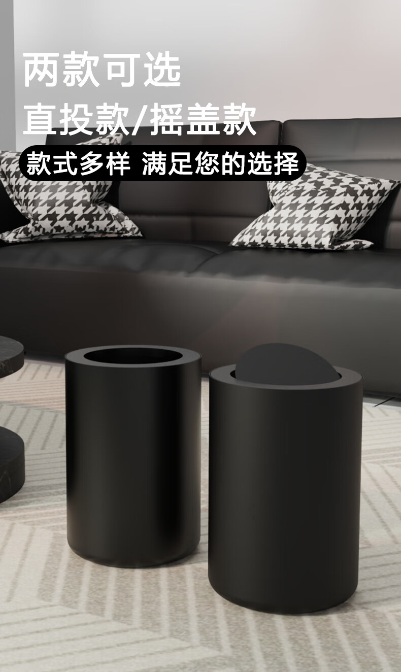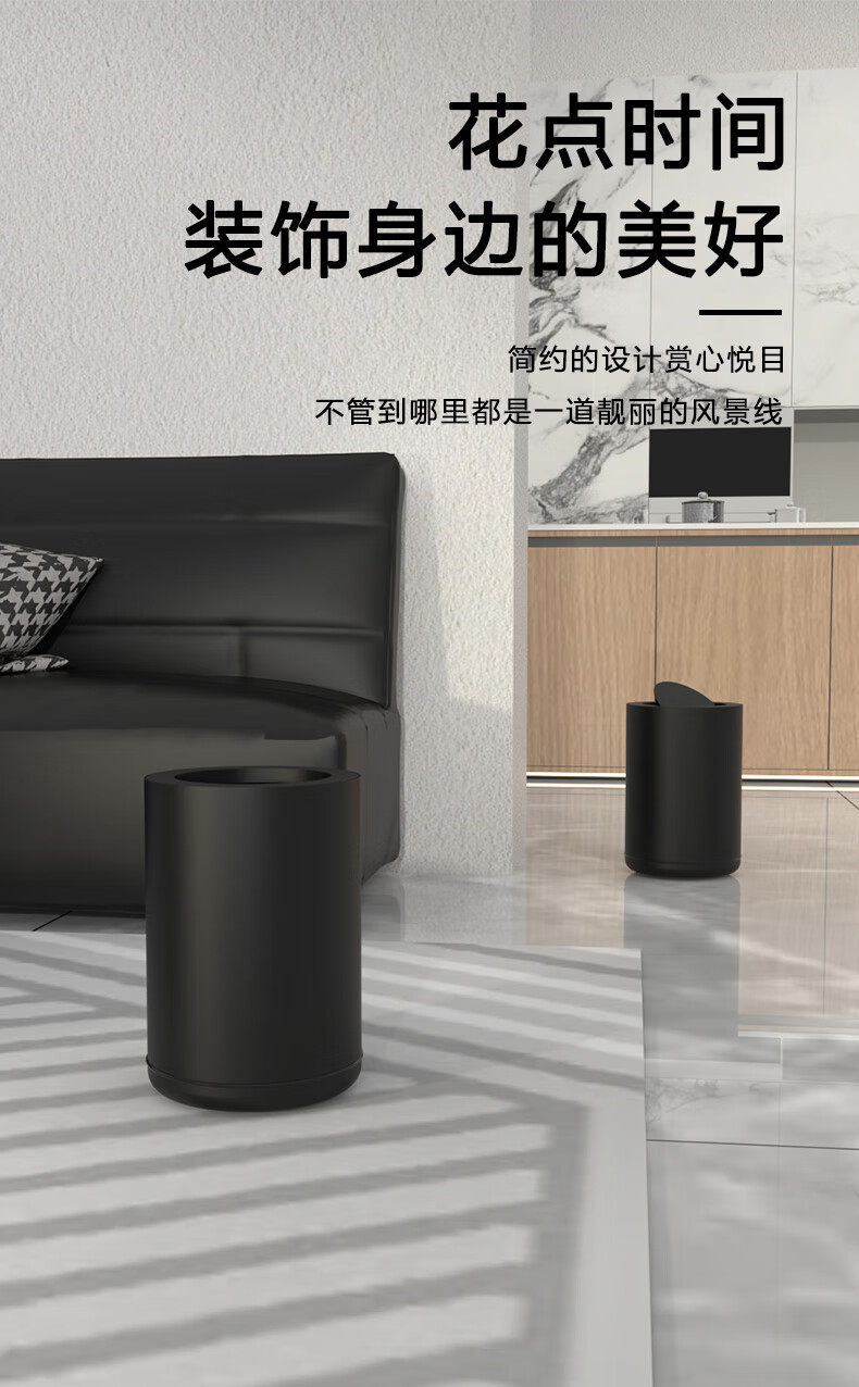 Tongtong legend trash can household large new style bedroom Nordic simple modern kitchen office living room toilet light luxury internet celebrity 10L cream white (without cover)
