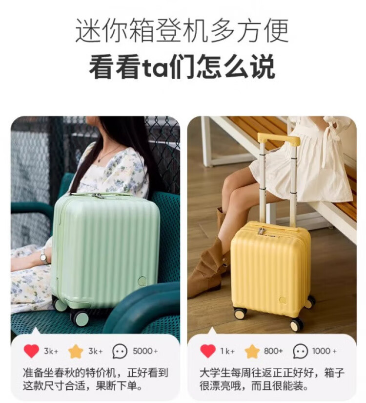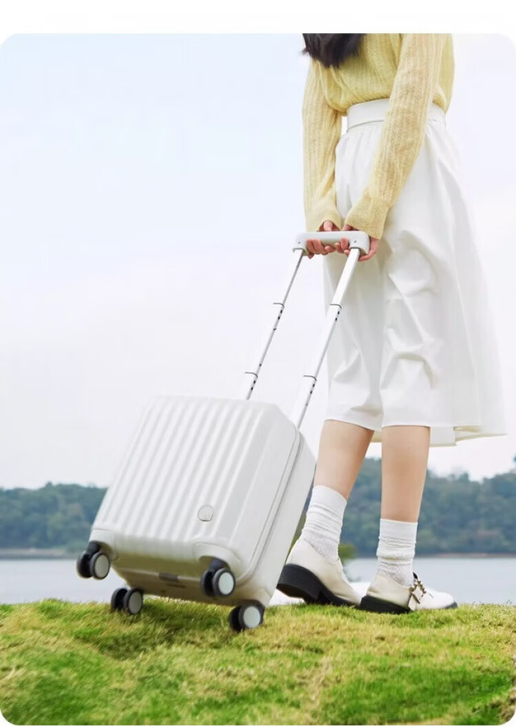 Bei Chuzhong suitcase, small 14-inch boarding suitcase that can be carried on the plane, men's and women's high-looking student code trolley suitcase, pearl white, renewed quality, fashionable and good-looking, 14-inch Spring Airlines free checked boarding case
