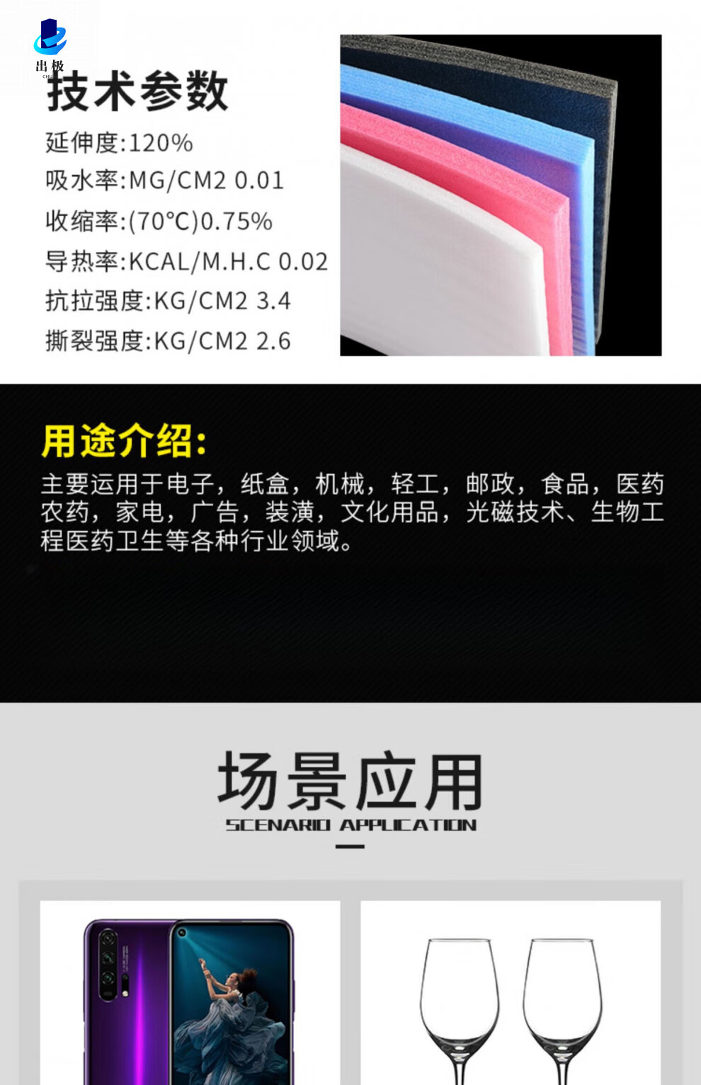 Epe pearl cotton foam board shock-proof buffer packaging customized flower arrangement thickened pad hard sheet cotton express packaging 1.2 meters wide * 2.4 meters long * 1.5 cm thick white