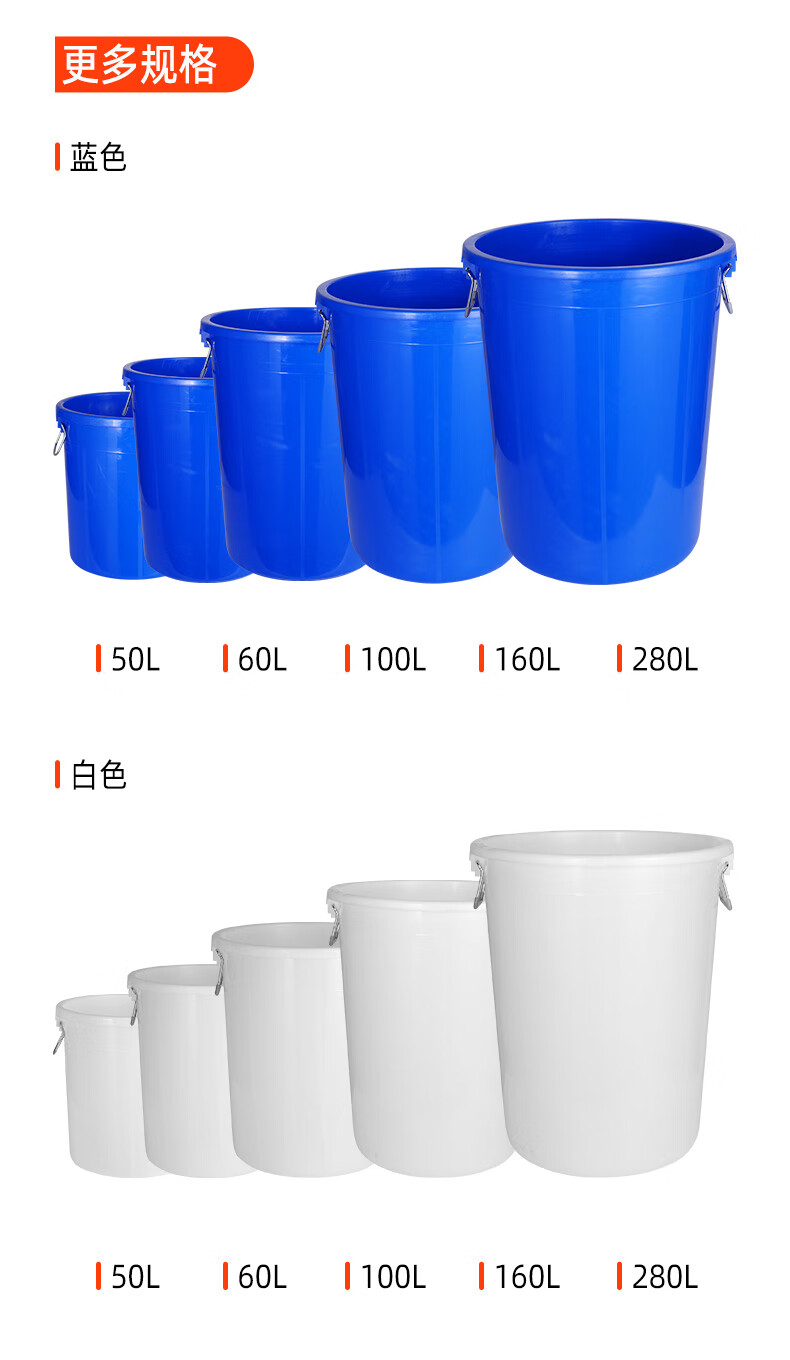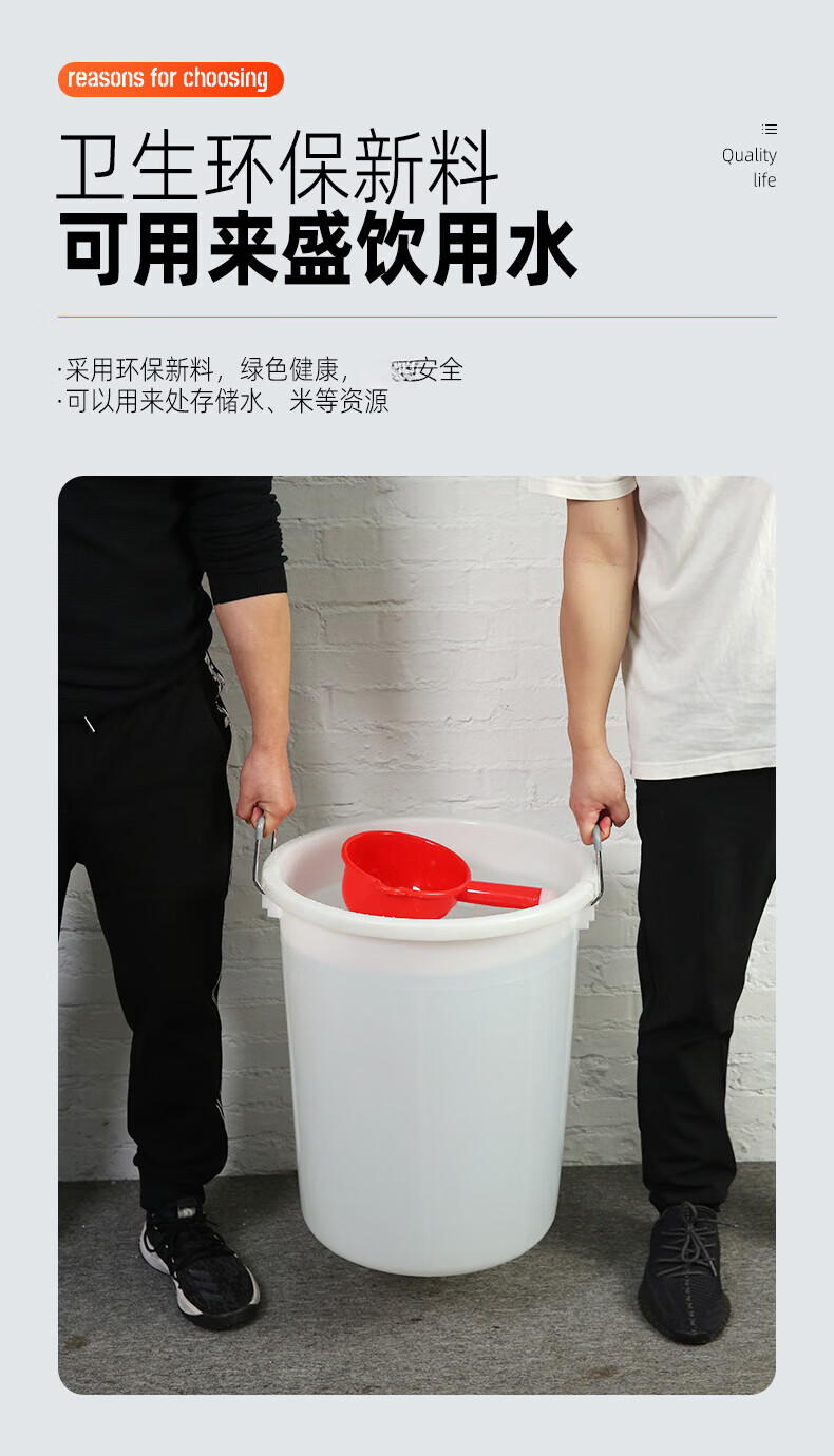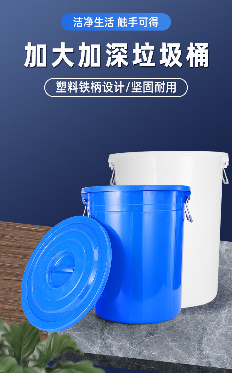 Trash can large commercial with lid household kitchen thickened sanitary bucket capacity outdoor sanitation industrial plastic drum 60L white with lid + free bag + free water scoop