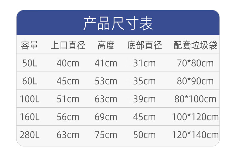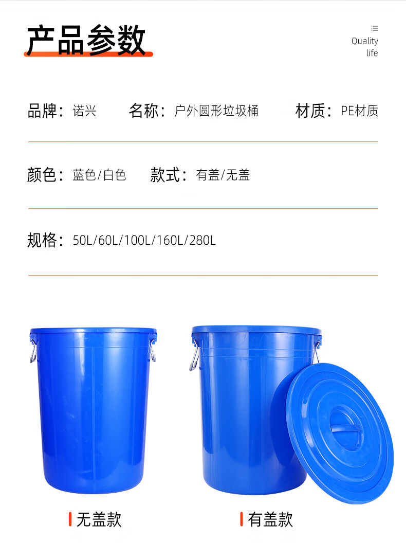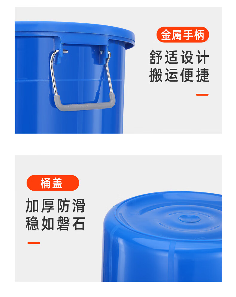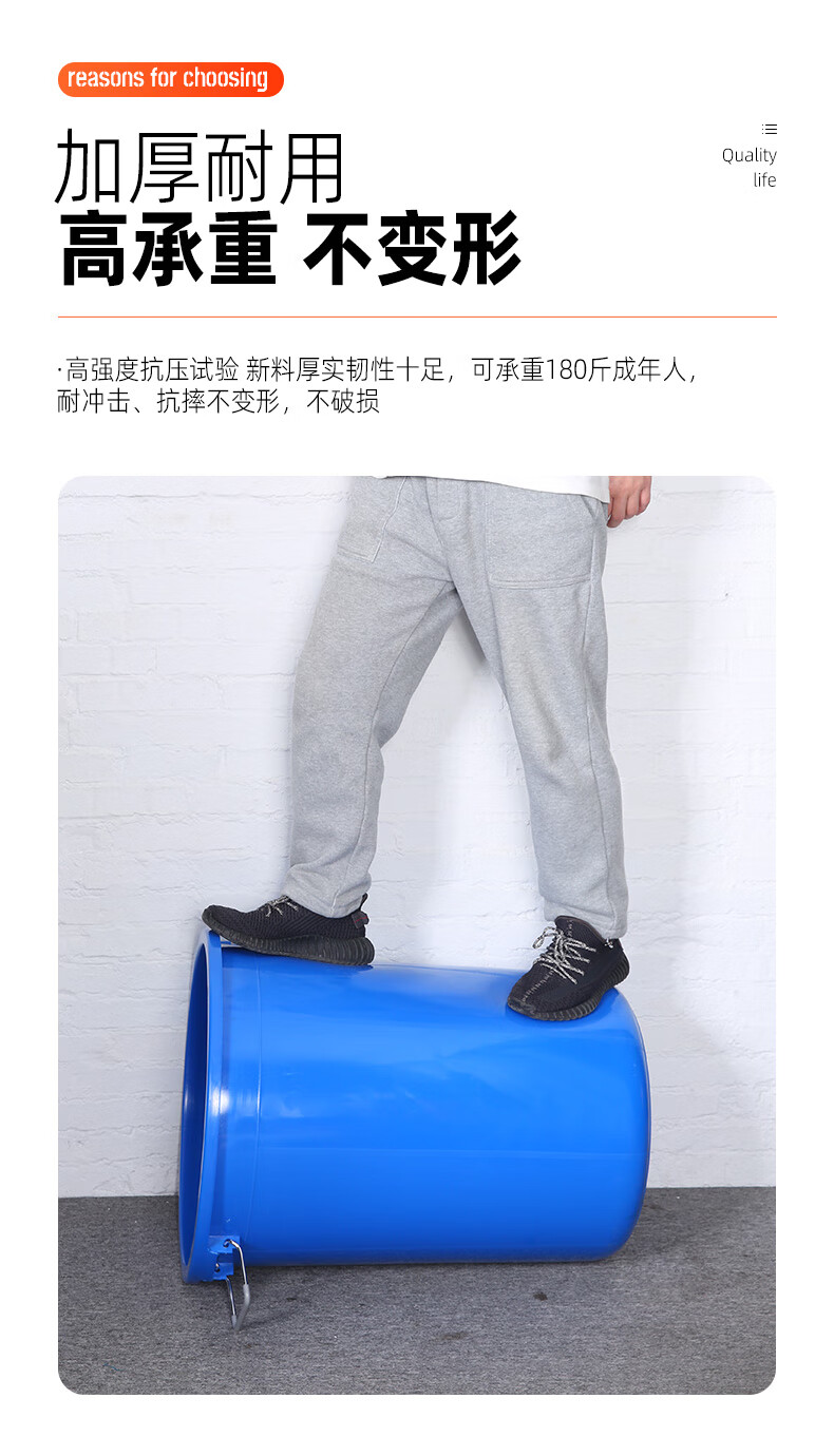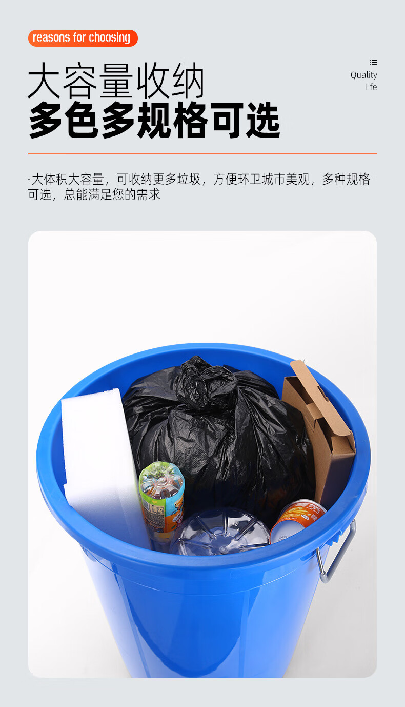 Trash can large commercial with lid household kitchen thickened sanitary bucket capacity outdoor sanitation industrial plastic drum 60L white with lid + free bag + free water scoop