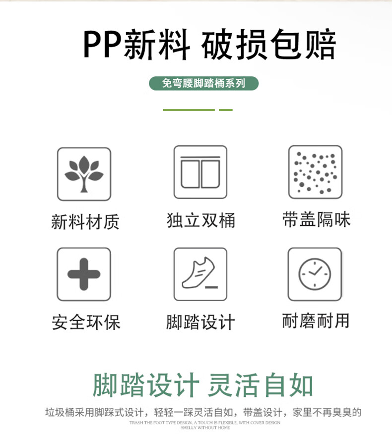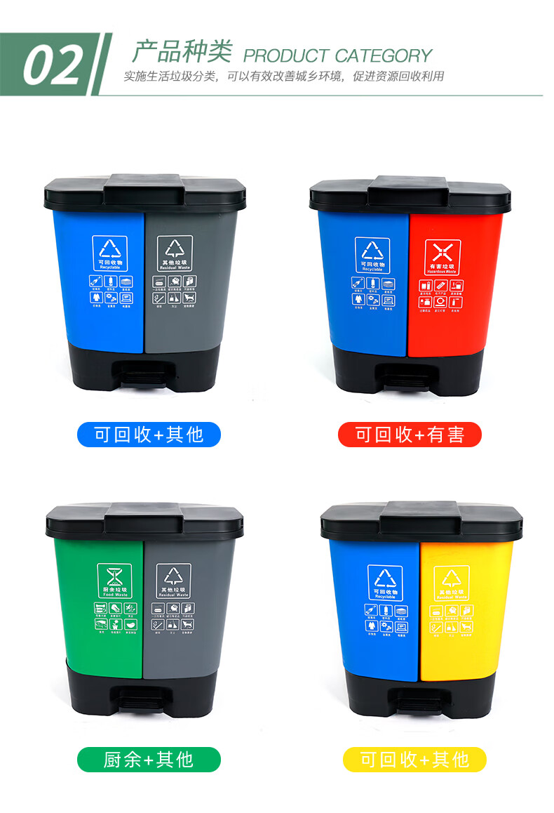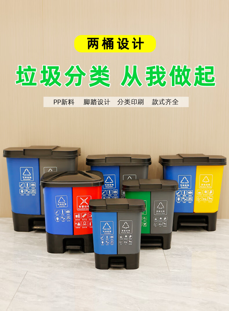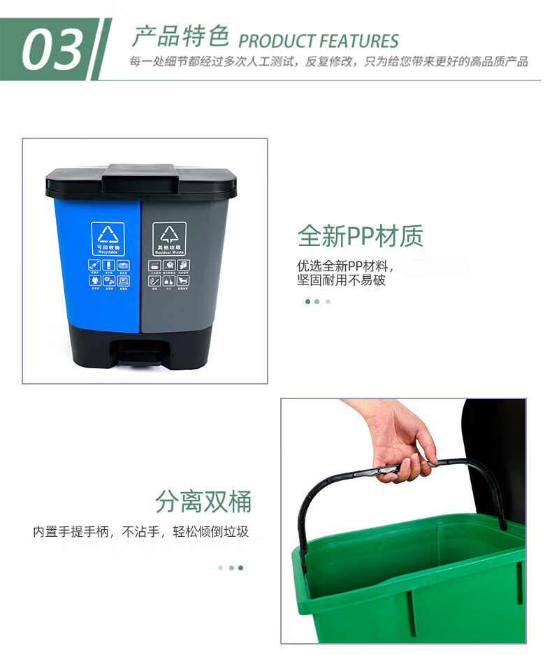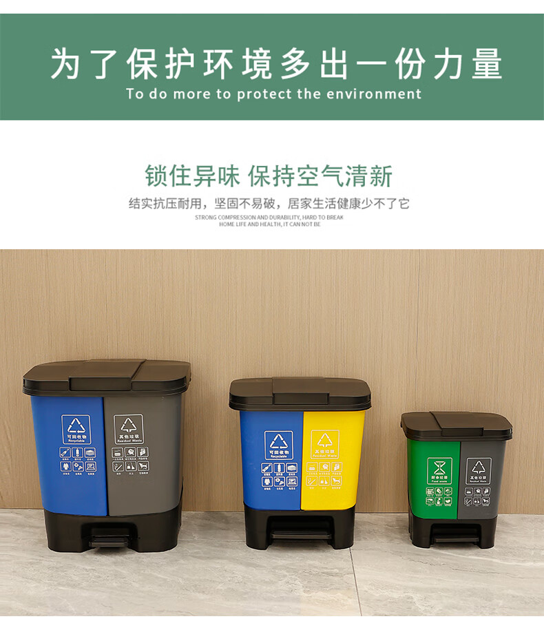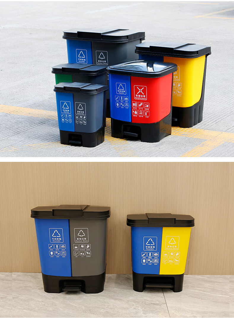 Garbage sorting trash can with lid, double bucket, large dry and wet household foot pedal, commercial, dining and kitchen, recyclable in public places, 60L green gray kitchen waste, other free 1 roll of garbage bag