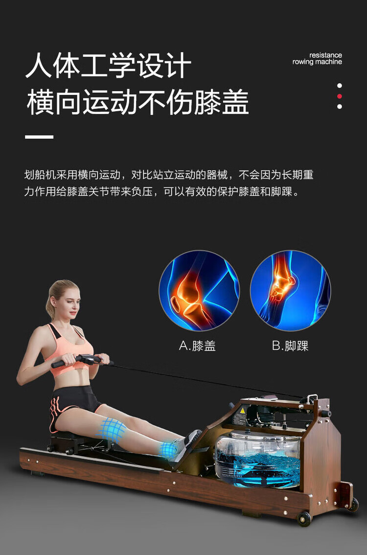 British ontology commercial household smart water resistance rowing machine gym solid wood rowing machine B color