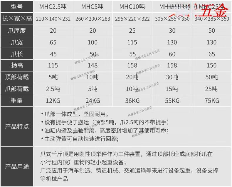 Kaooseen claw jack hydraulic jack hydraulic jack 5T multi-specification hook jack top 5 tons top 20 tons claw 10 tons