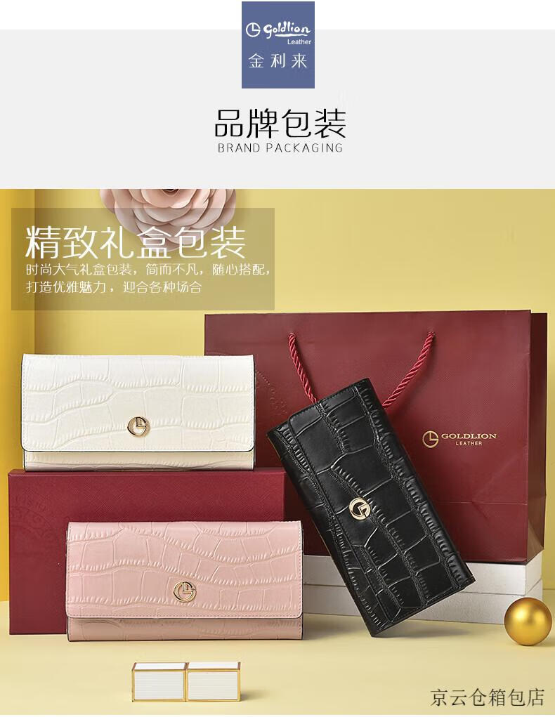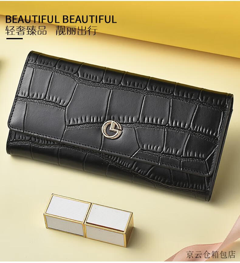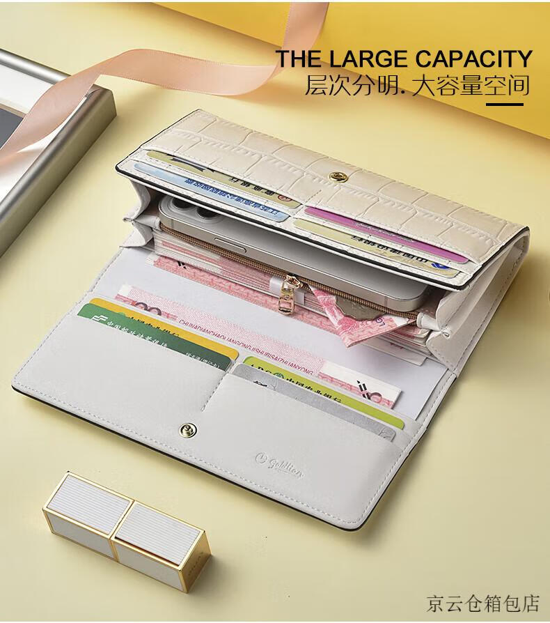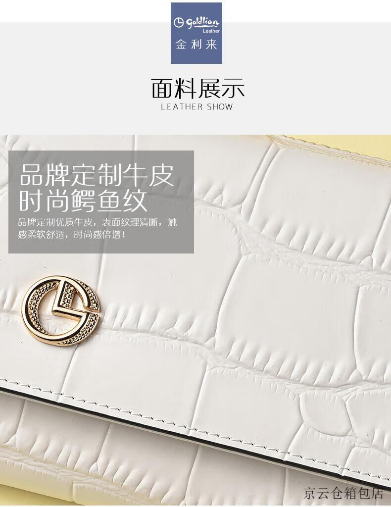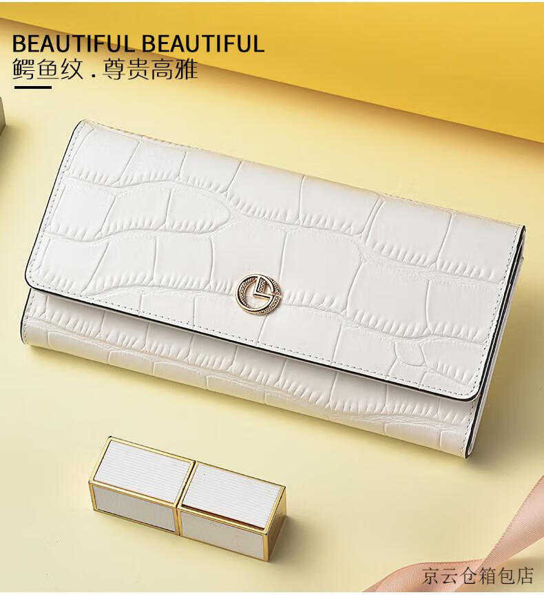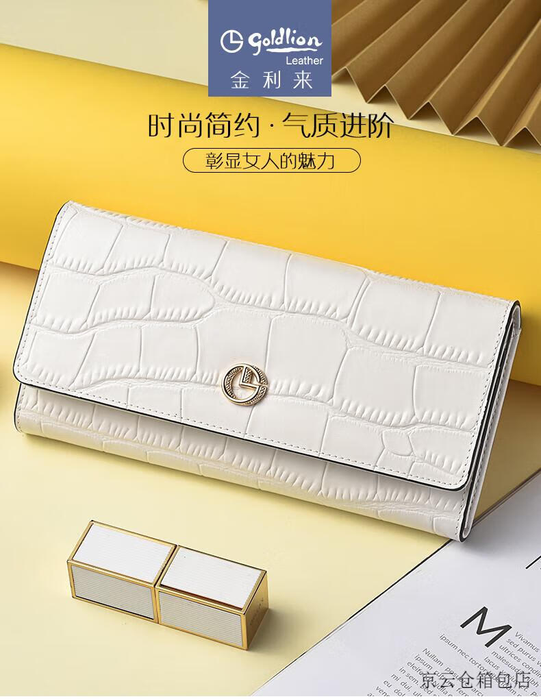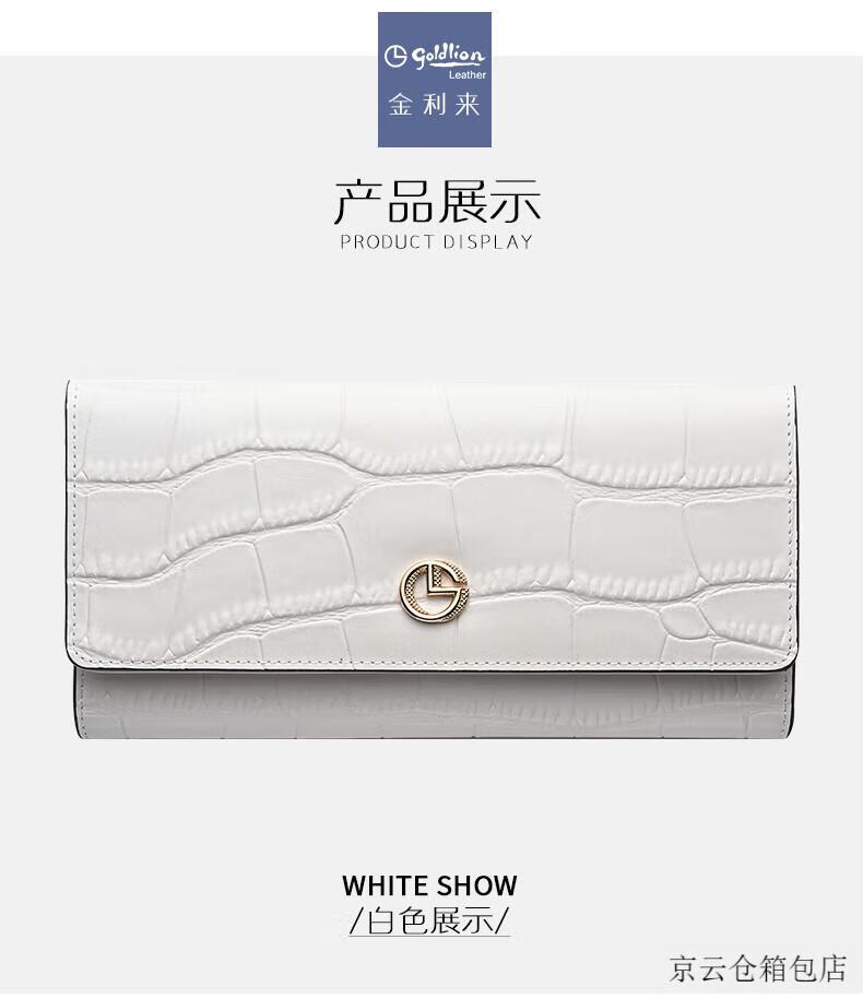 GOLDLION G+ Goldlion Wallet Women's Long Crocodile Pattern Leather Women's Clutch 2025 New Bag Fashion Handbag Women's White