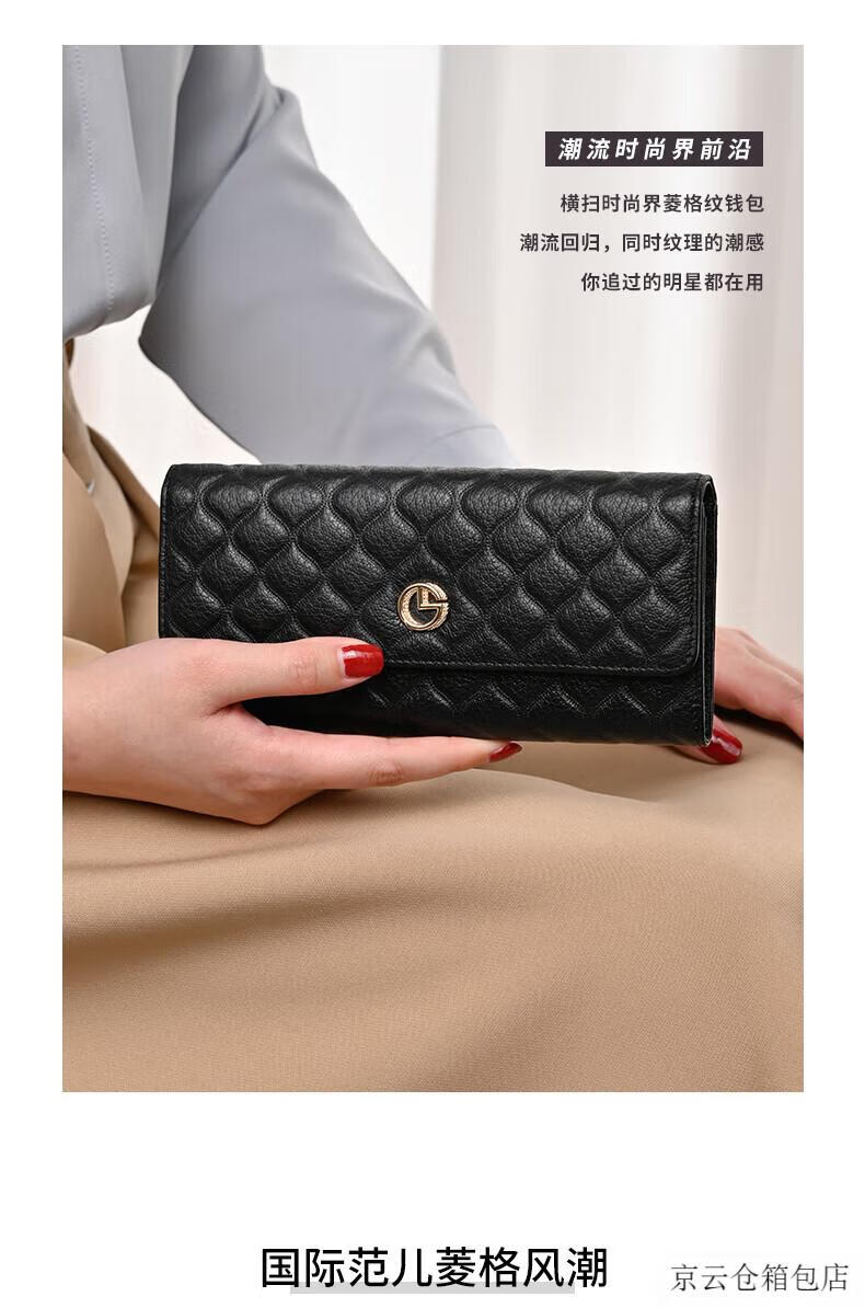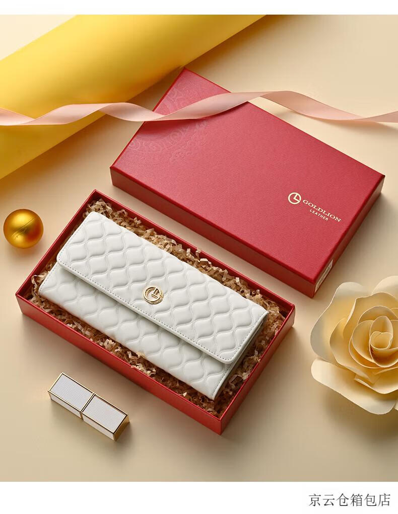 GOLDLION G+ Goldlion Women's Wallet Long 2025 Summer New Genuine Leather Multifunctional Wallet Fashion Popular Clutch Women Fashion Black 10 Card Slots