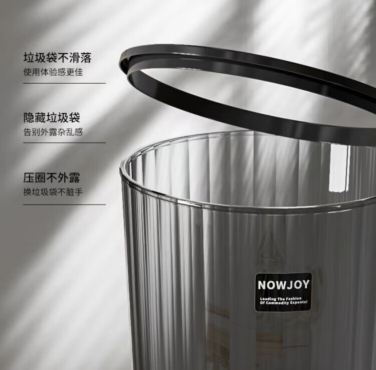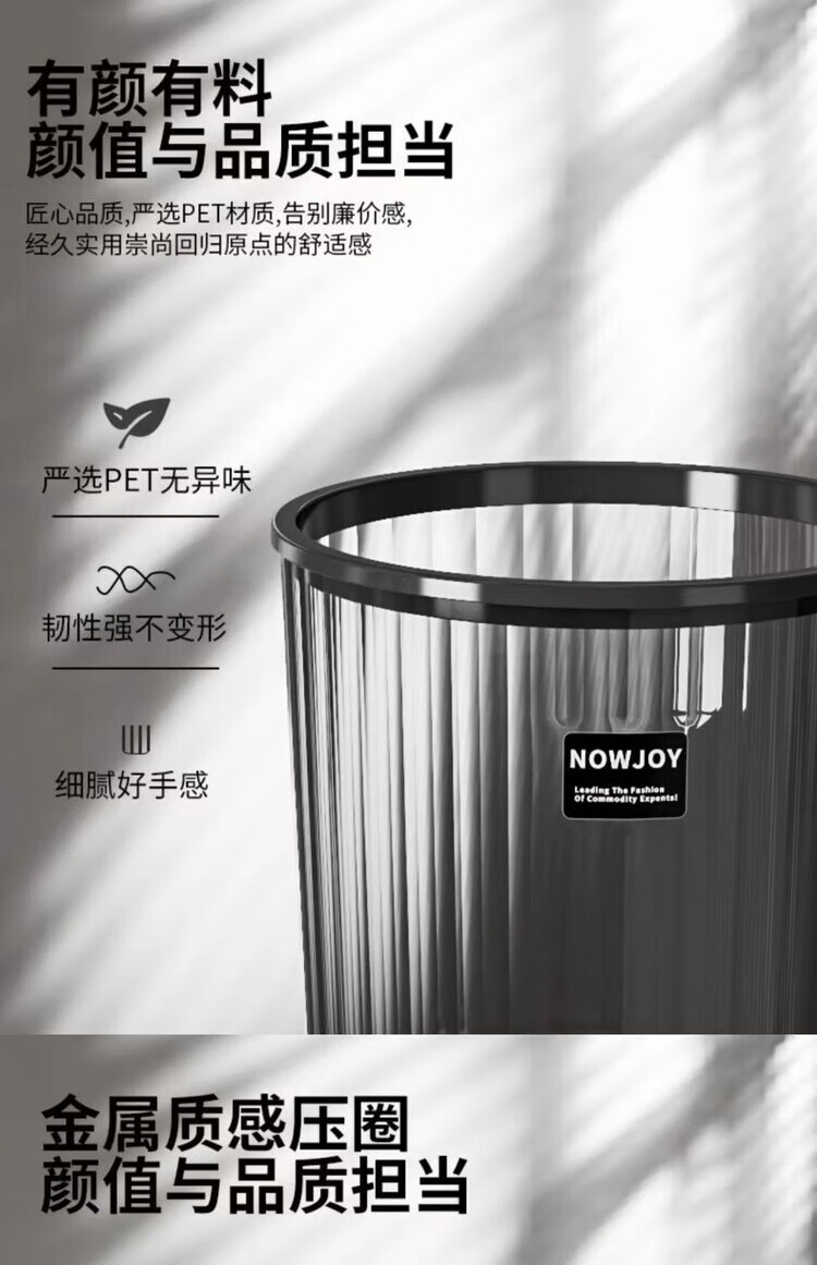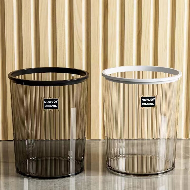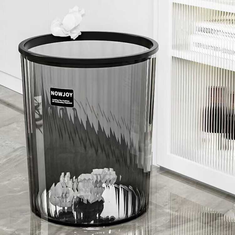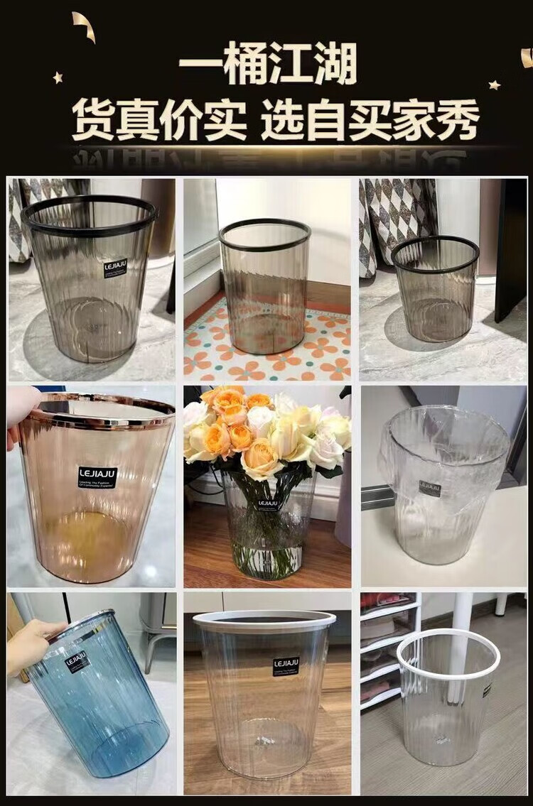 Room trash can household transparent light luxury living room large size bedroom kitchen bathroom office paper basket transparent flower bucket wise gray high-end transparent material waterproof and odor-proof thickened large transparent trash can with pressure ring 2 pack + garbage bag