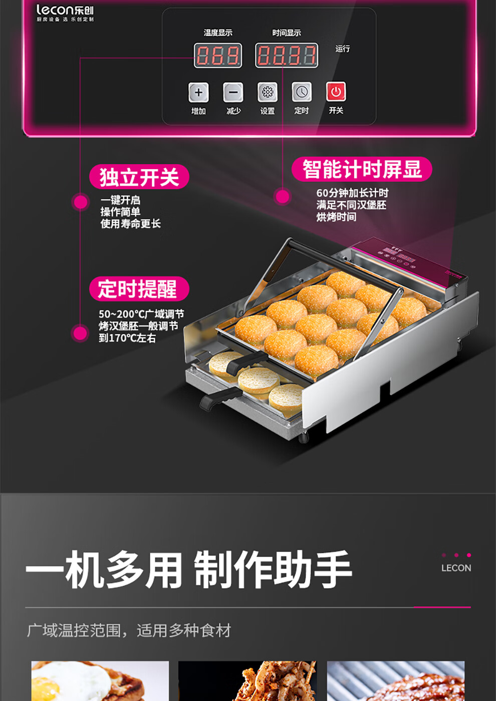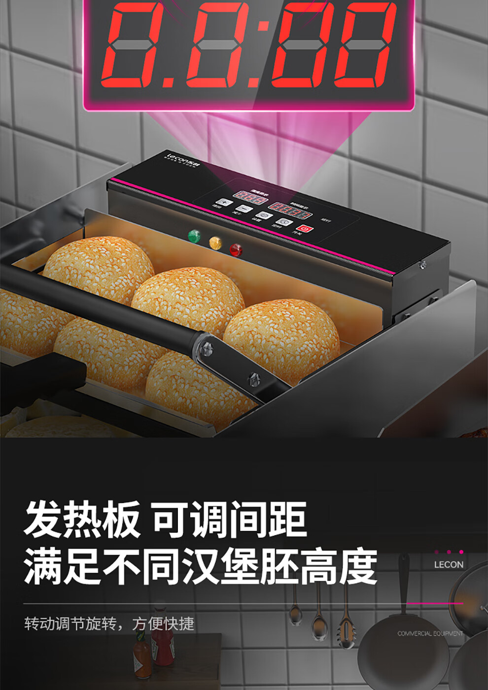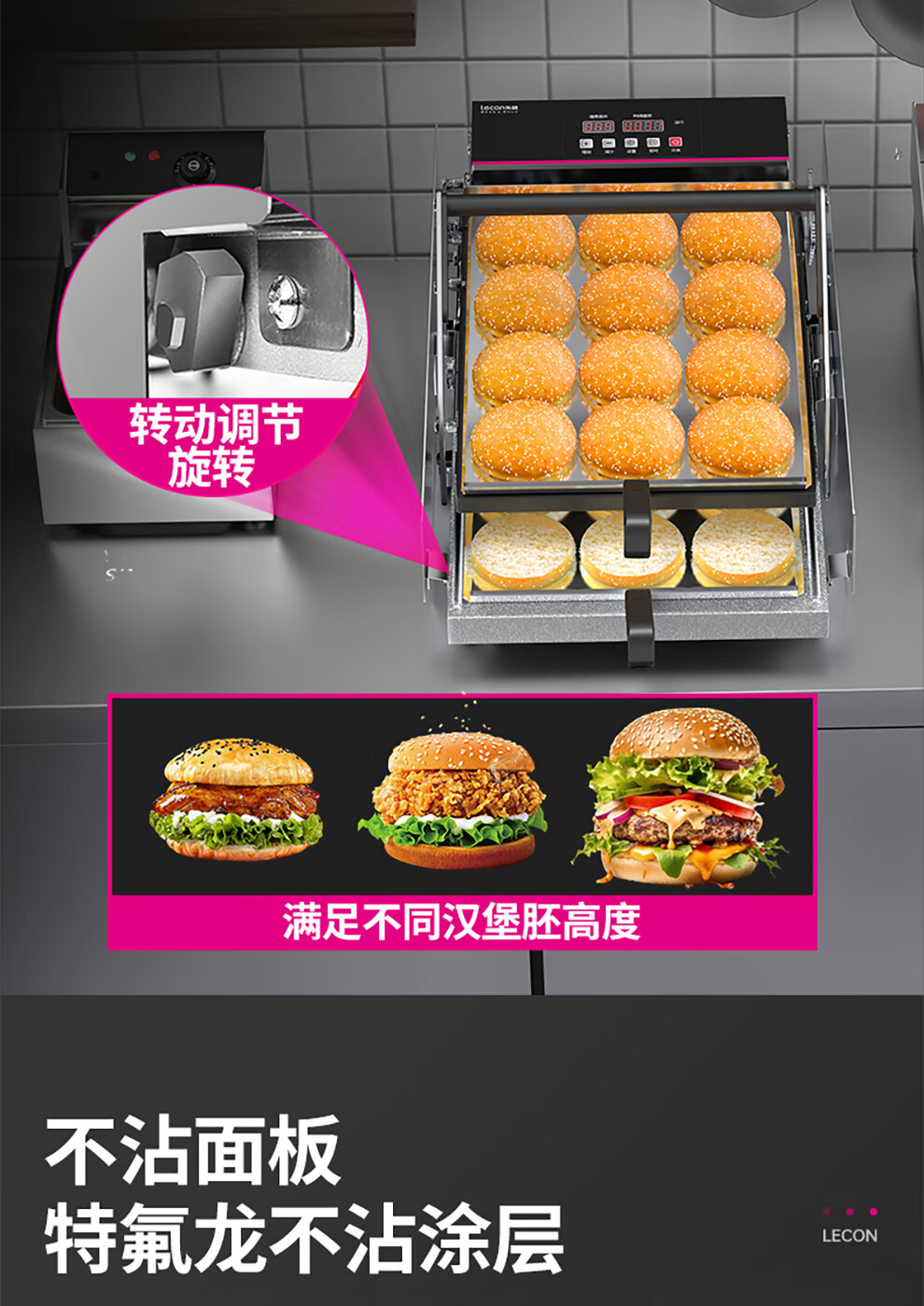 Lecon hamburger machine, commercial bread machine, hamburger oven, fully automatic hamburger oven, electric heating bread oven, dedicated for home burger shop, 211 smart knob model
