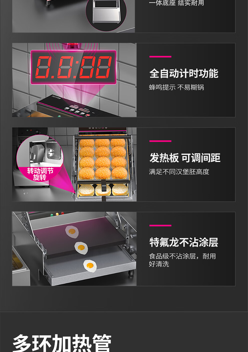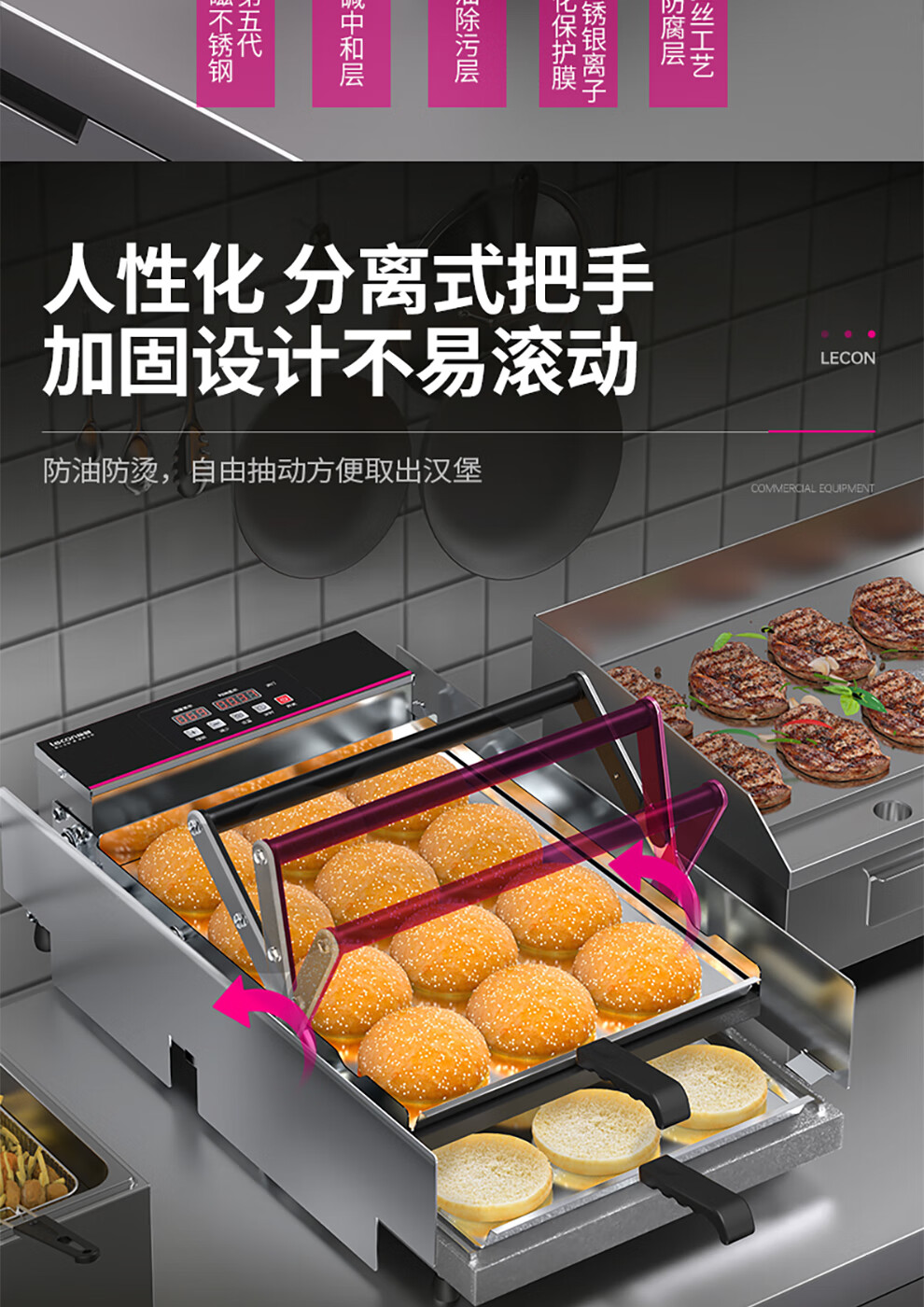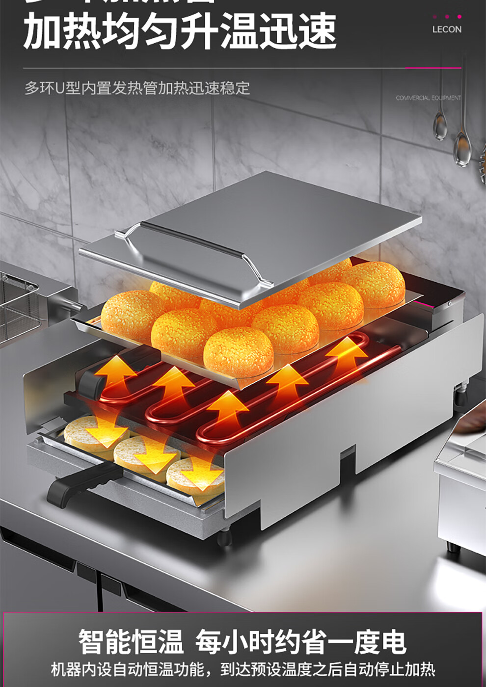 Lecon hamburger machine, commercial bread machine, hamburger oven, fully automatic hamburger oven, electric heating bread oven, dedicated for home burger shop, 211 smart knob model