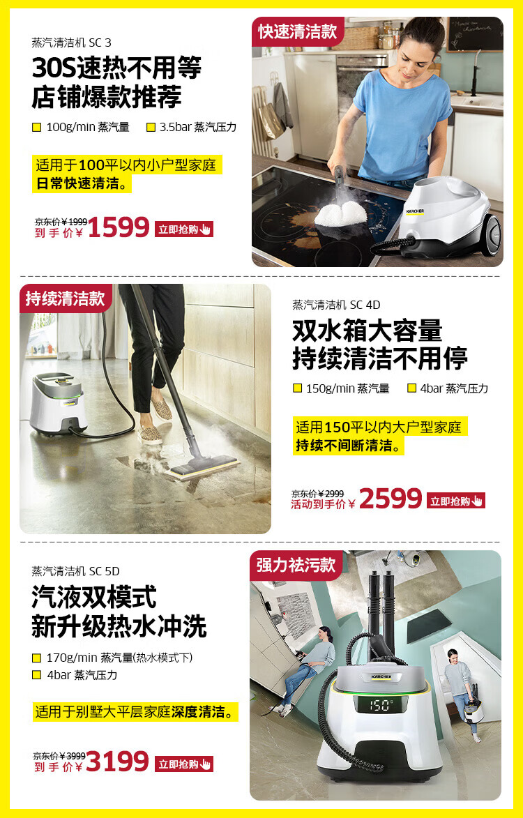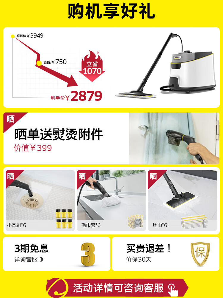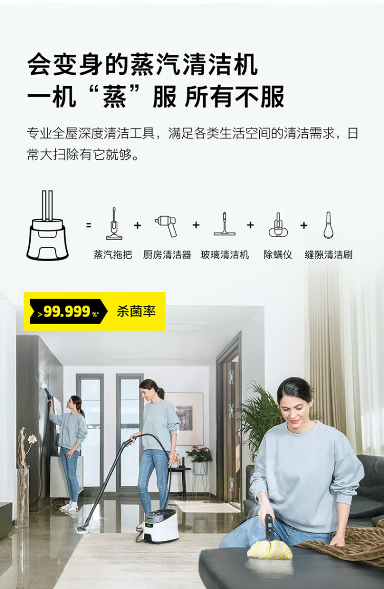 KARCHER multifunctional high temperature and high pressure cleaning machine household steam mop cleaning machine sterilization rate 99.999% floor washing machine sweeping robot vacuum cleaner companion SC5D standard version + new mite remover