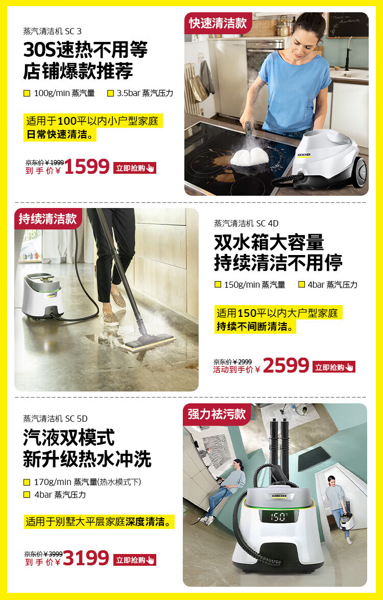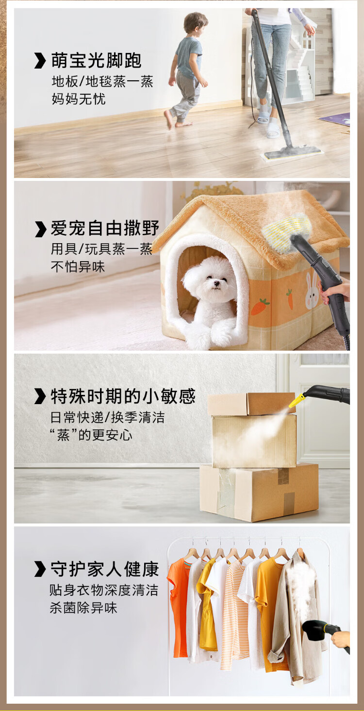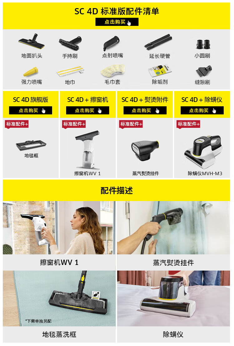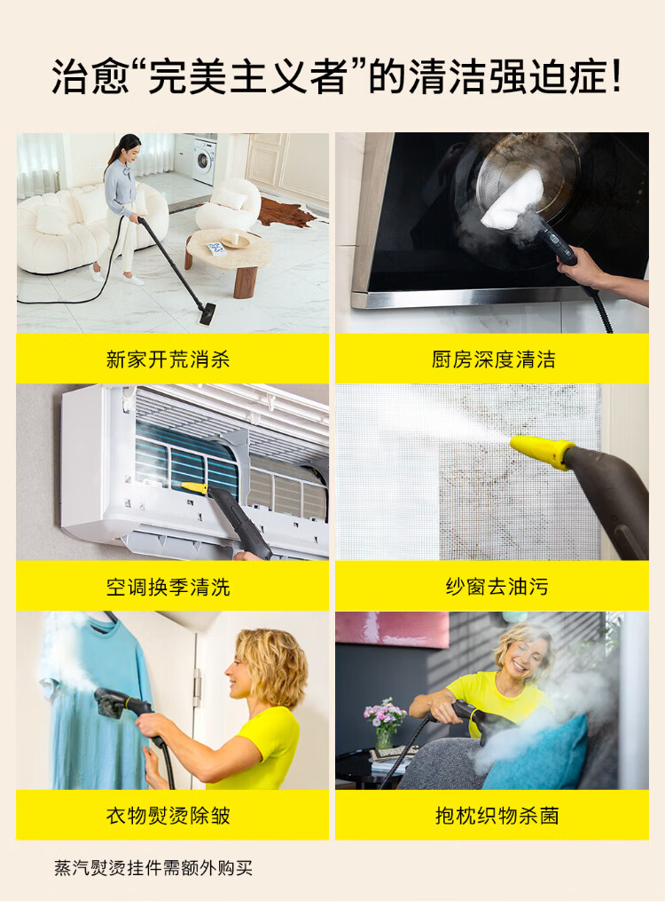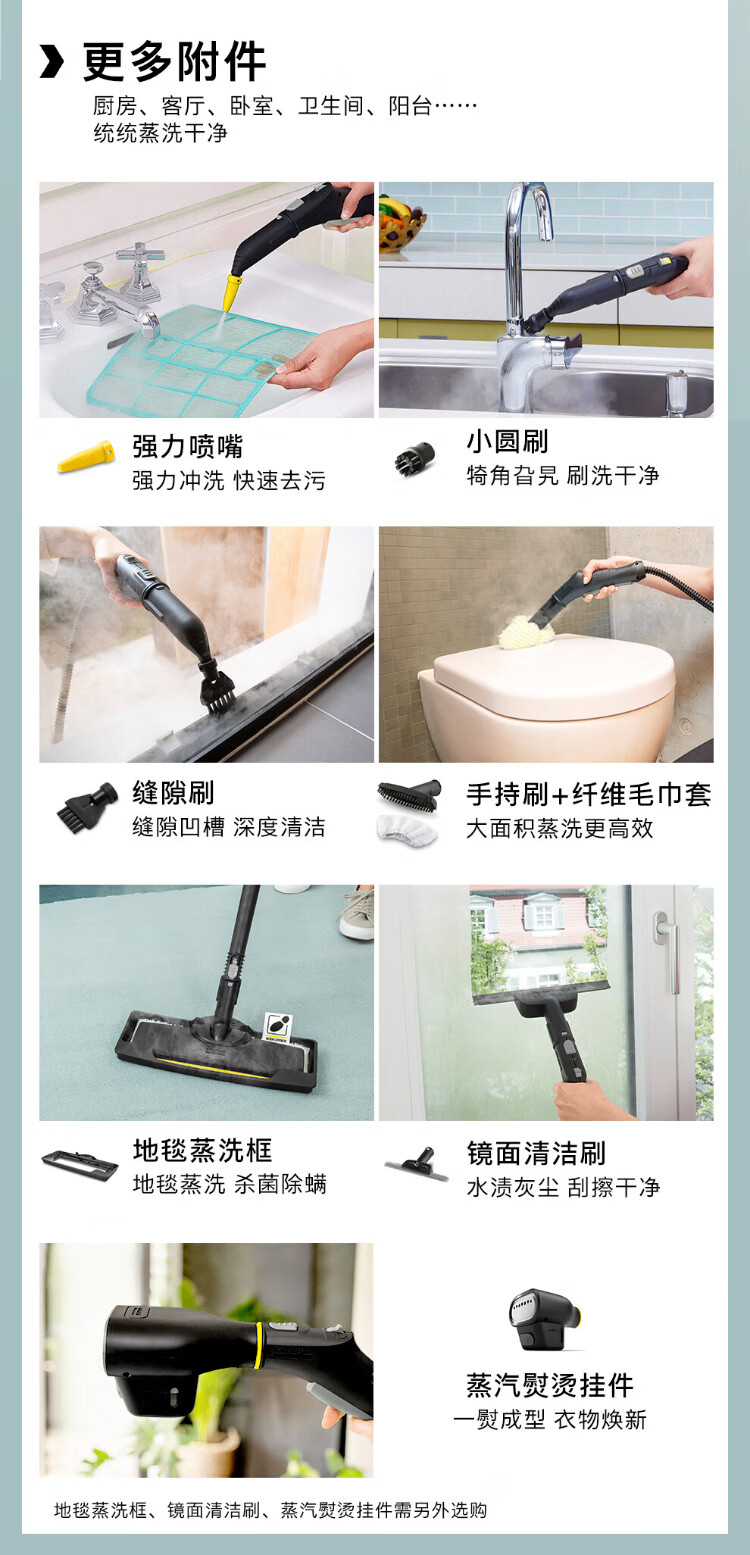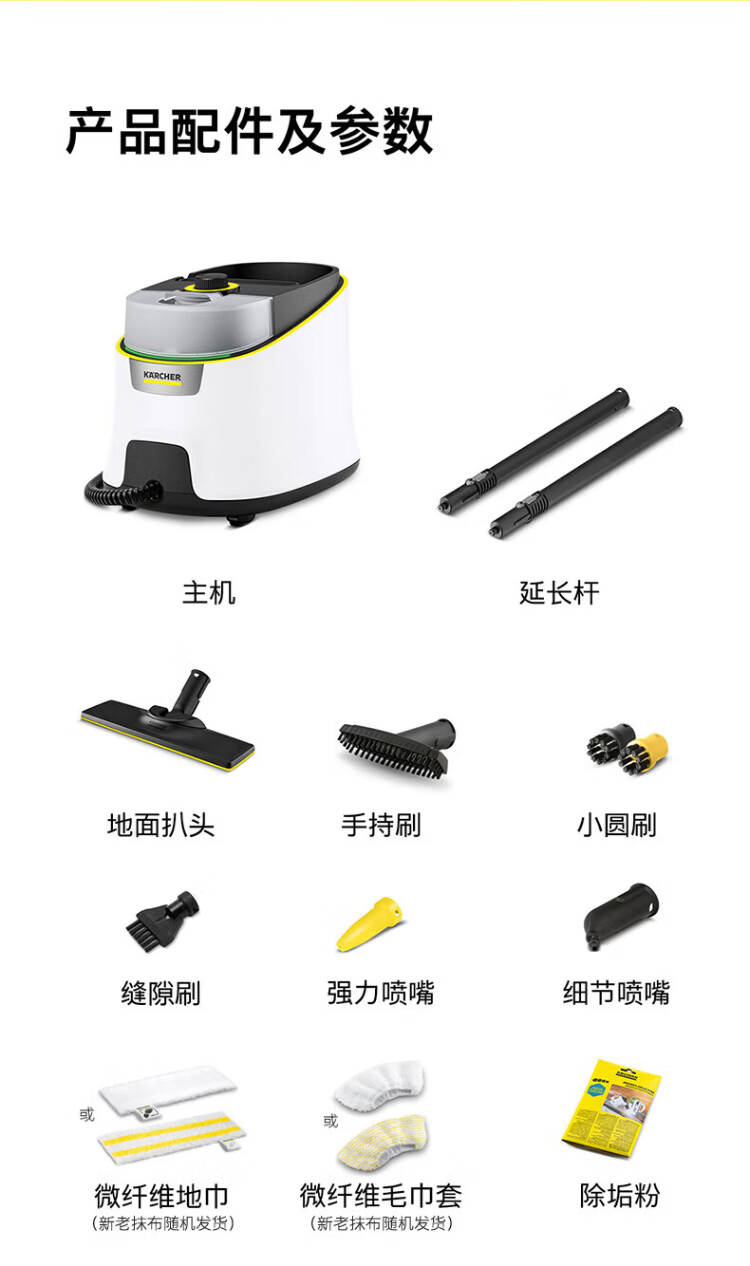 KARCHER household high temperature and high pressure steam cleaning kitchen range hood air conditioning cleaning mop sterilization and mite removal floor scrubber sweeping robot vacuum cleaner companion SC4D standard version + new mite removal device