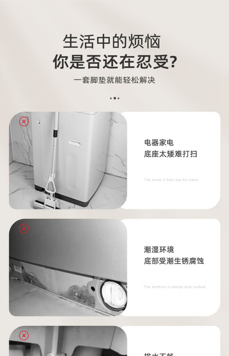 Jingyouyu German washing machine base frame universal fixed tripod pad bracket fully automatic roller heightening bracket anti-slip anti-shock foot pads universal style 8 packs shockproof and noise reduction 1 layer