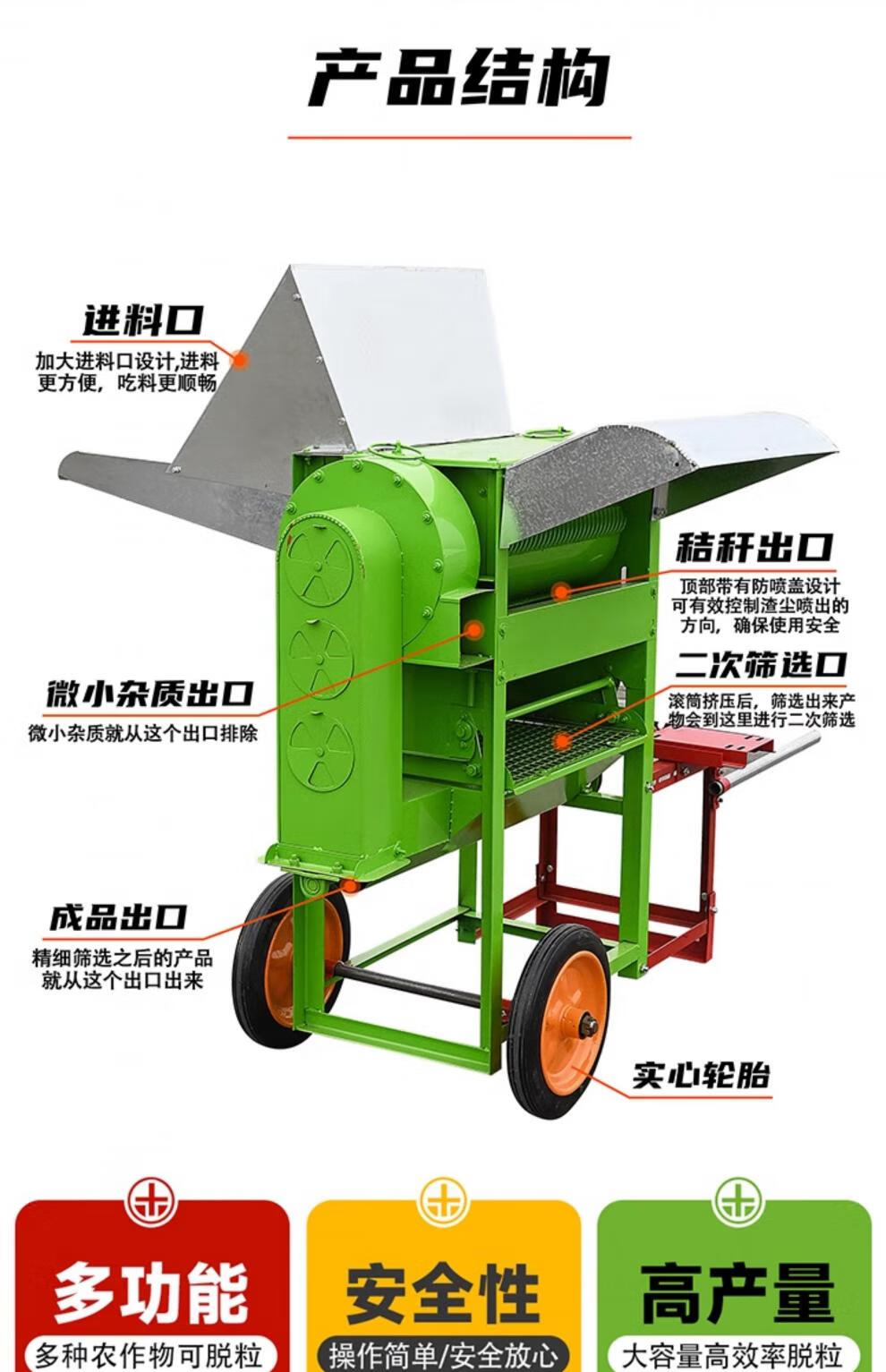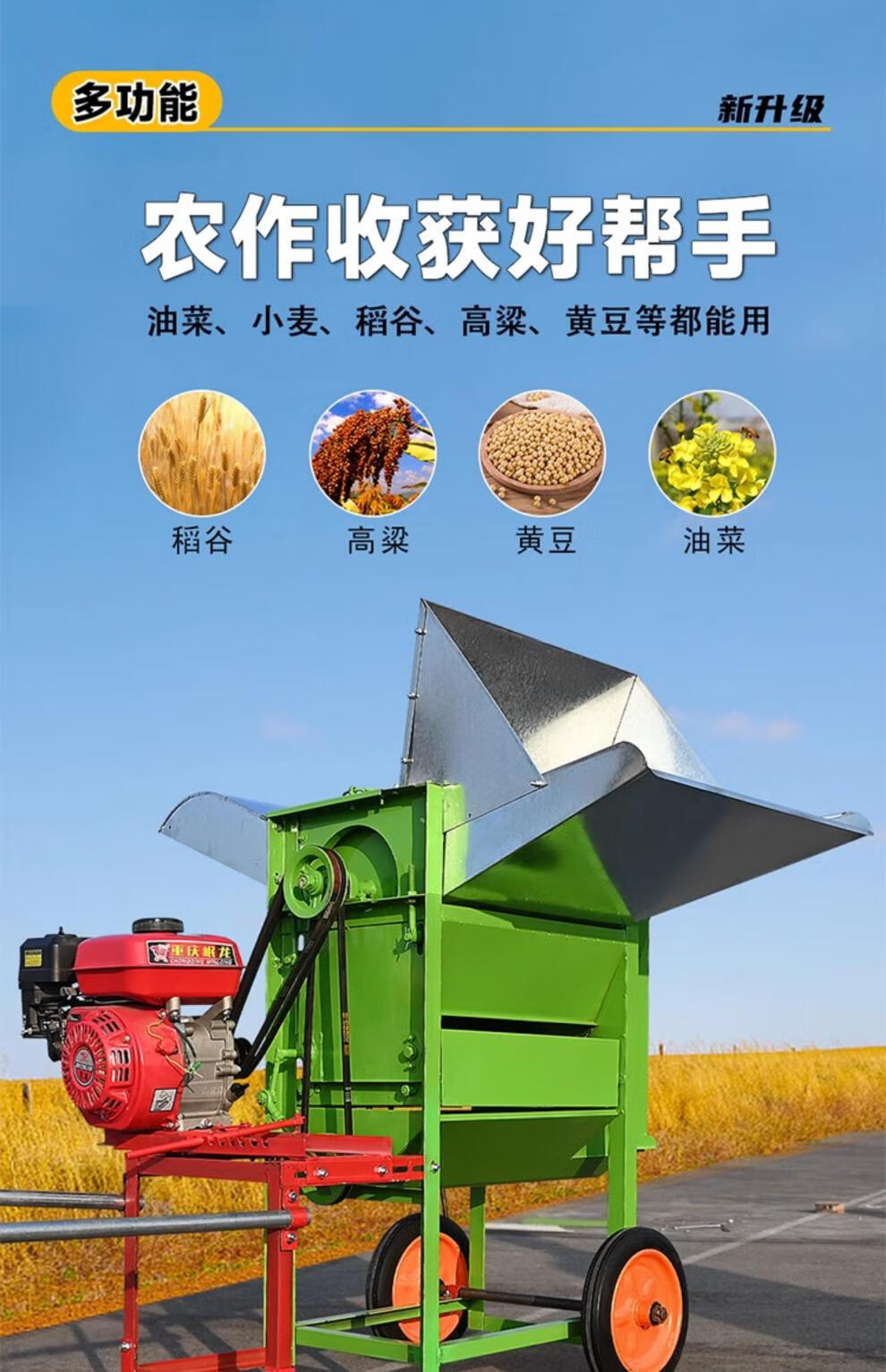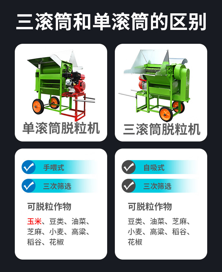 Junkis three-cylinder rape threshing machine household wheat, soybean and corn small fully automatic feeding multi-function threshing machine A multi-function classic secondary screening - naked