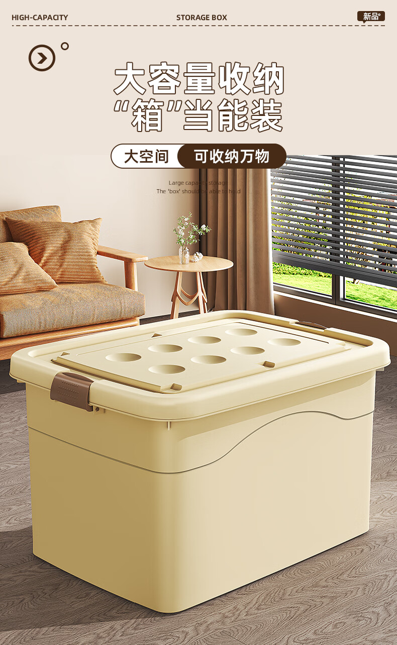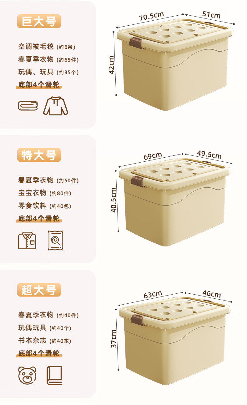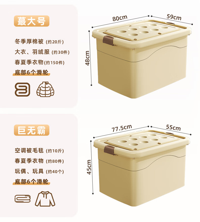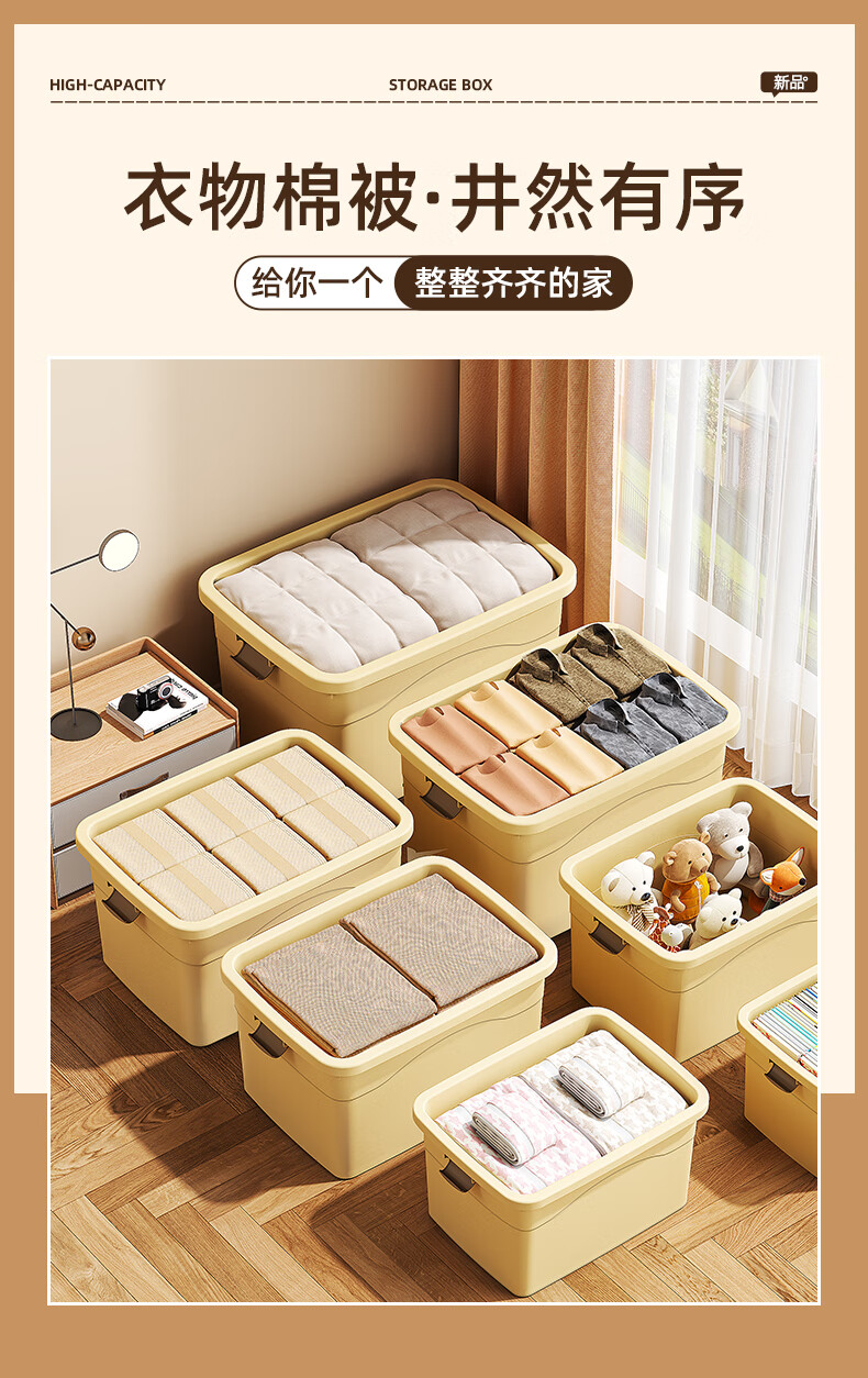 Babyview storage box extra large storage box storage box moving storage box clothing quilt toy plastic gardenia yellow/largest size 80*59*48cm 6 free pulleys