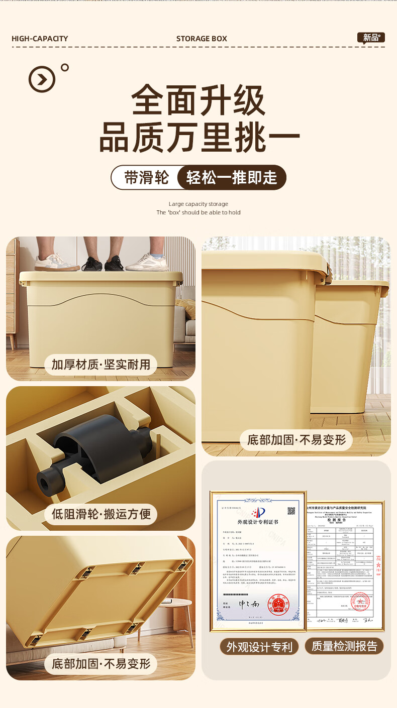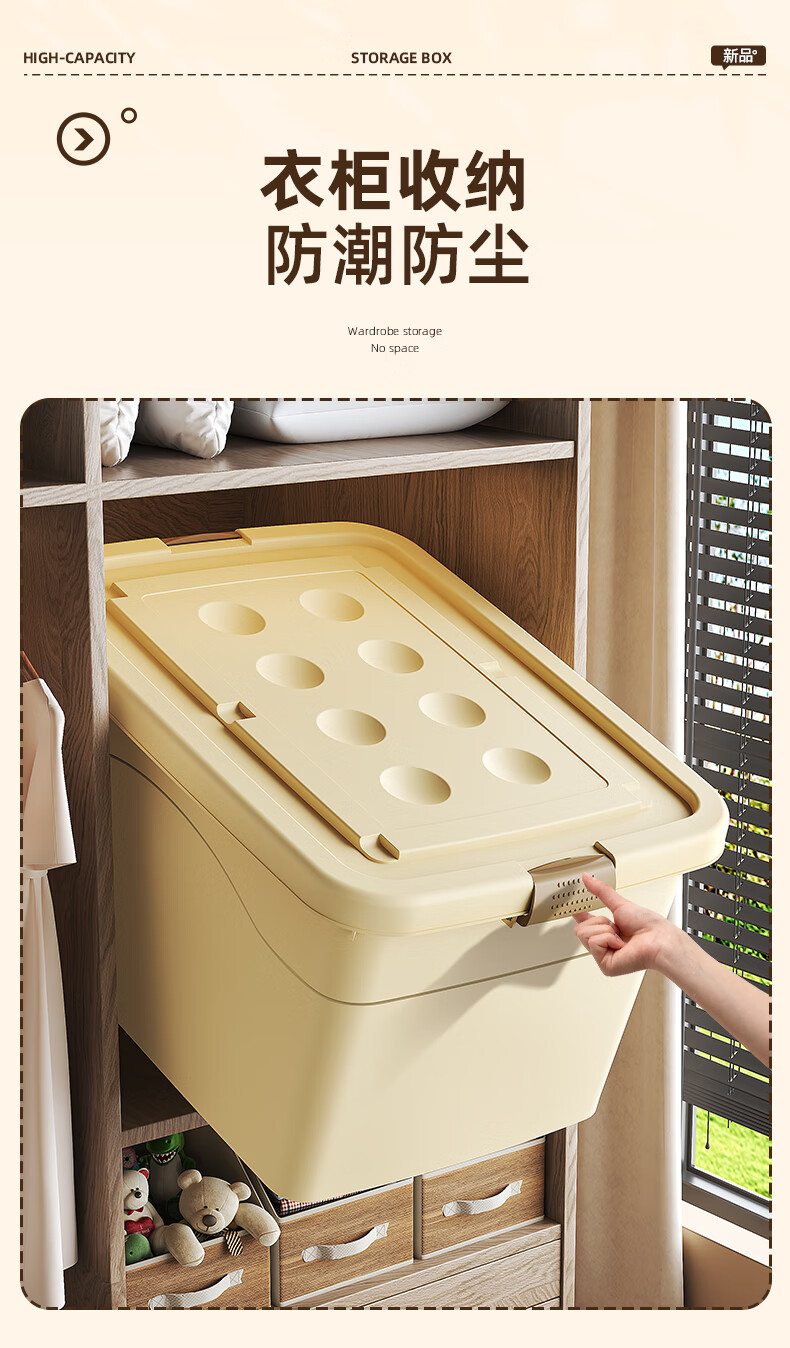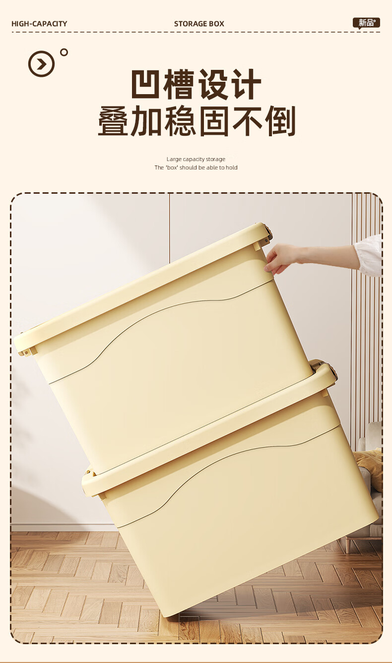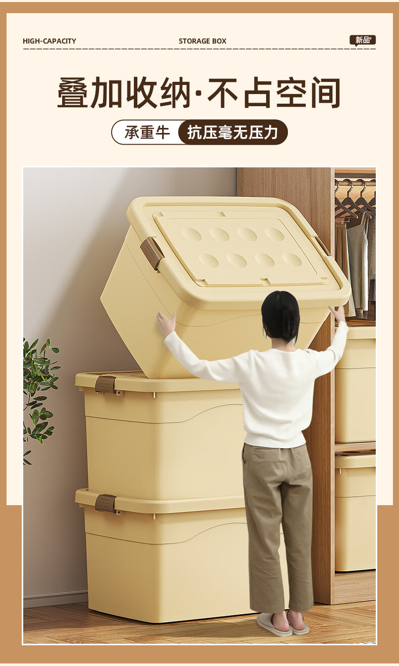 Babyview storage box extra large storage box storage box moving storage box clothing quilt toy plastic gardenia yellow/largest size 80*59*48cm 6 free pulleys